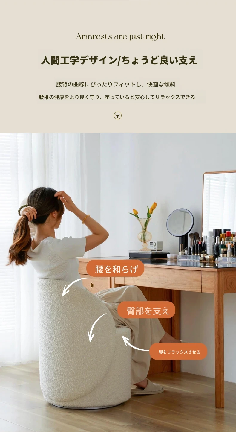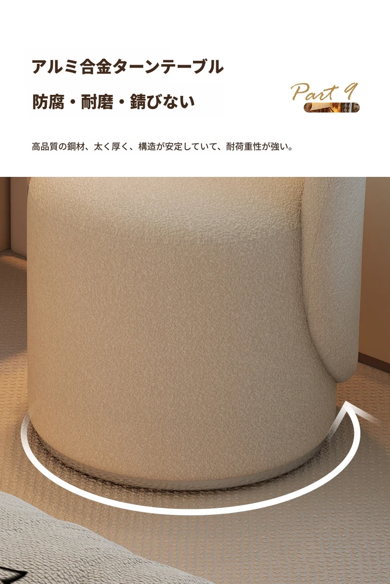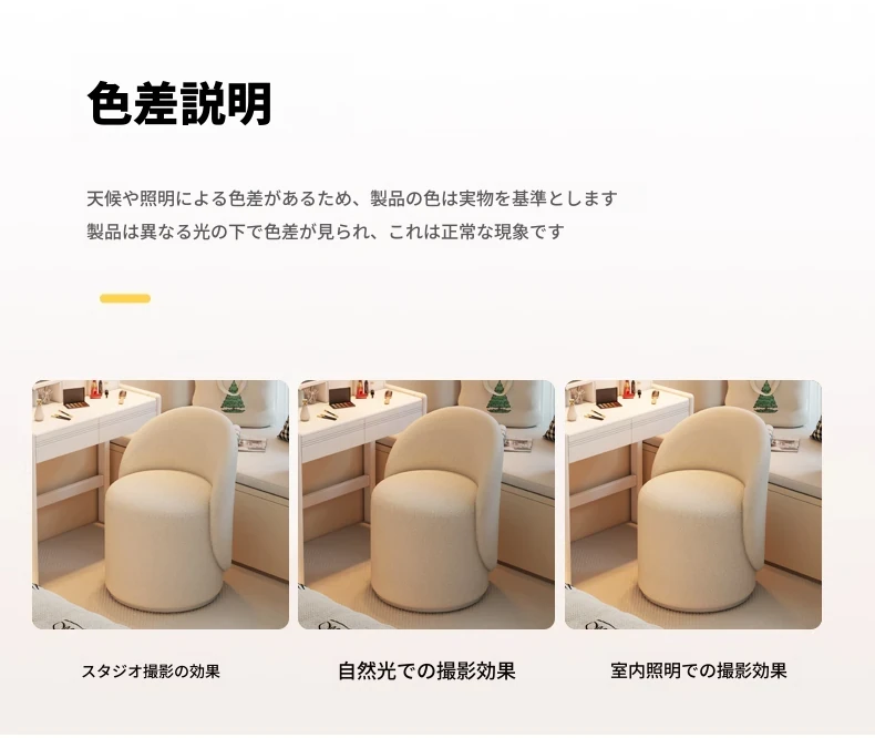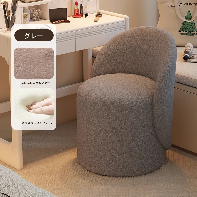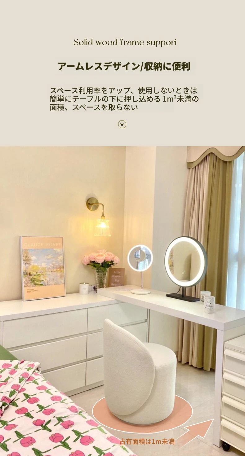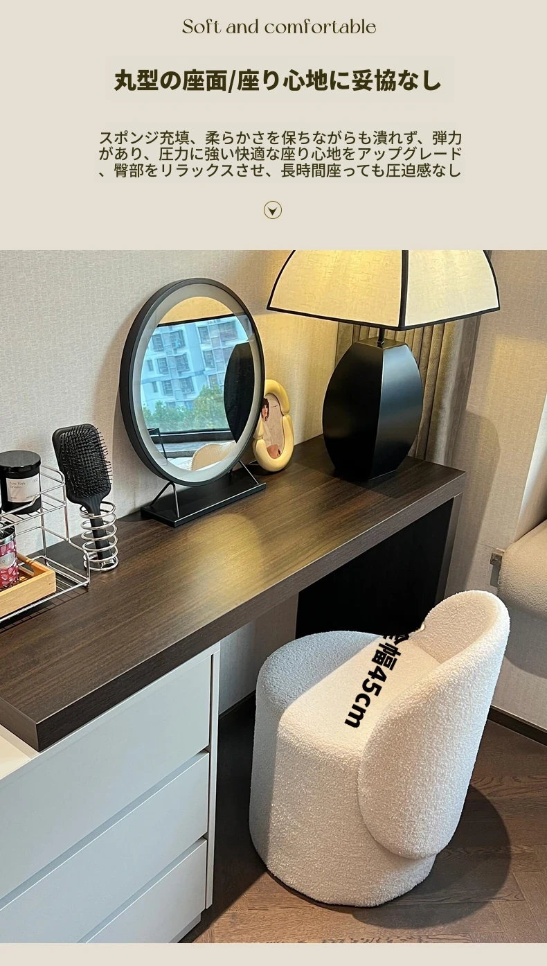 クリーム風のラグジュアリーなドレッシングスツール - 女性の寝室に最適!高級感溢れる回転式サムスツールで、メイクアップタイムをもっと特別に。あなたの美しさを引き立てるアイテムです!