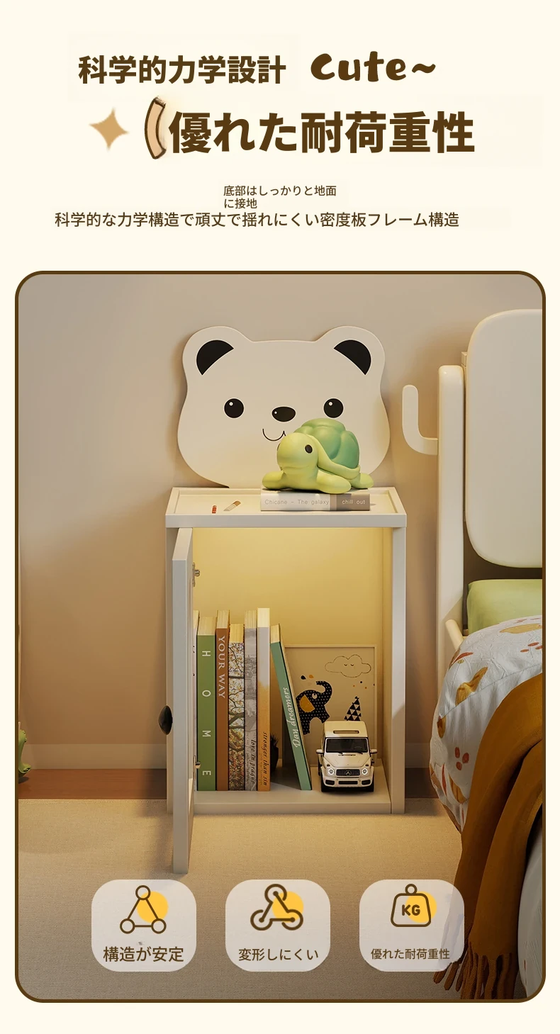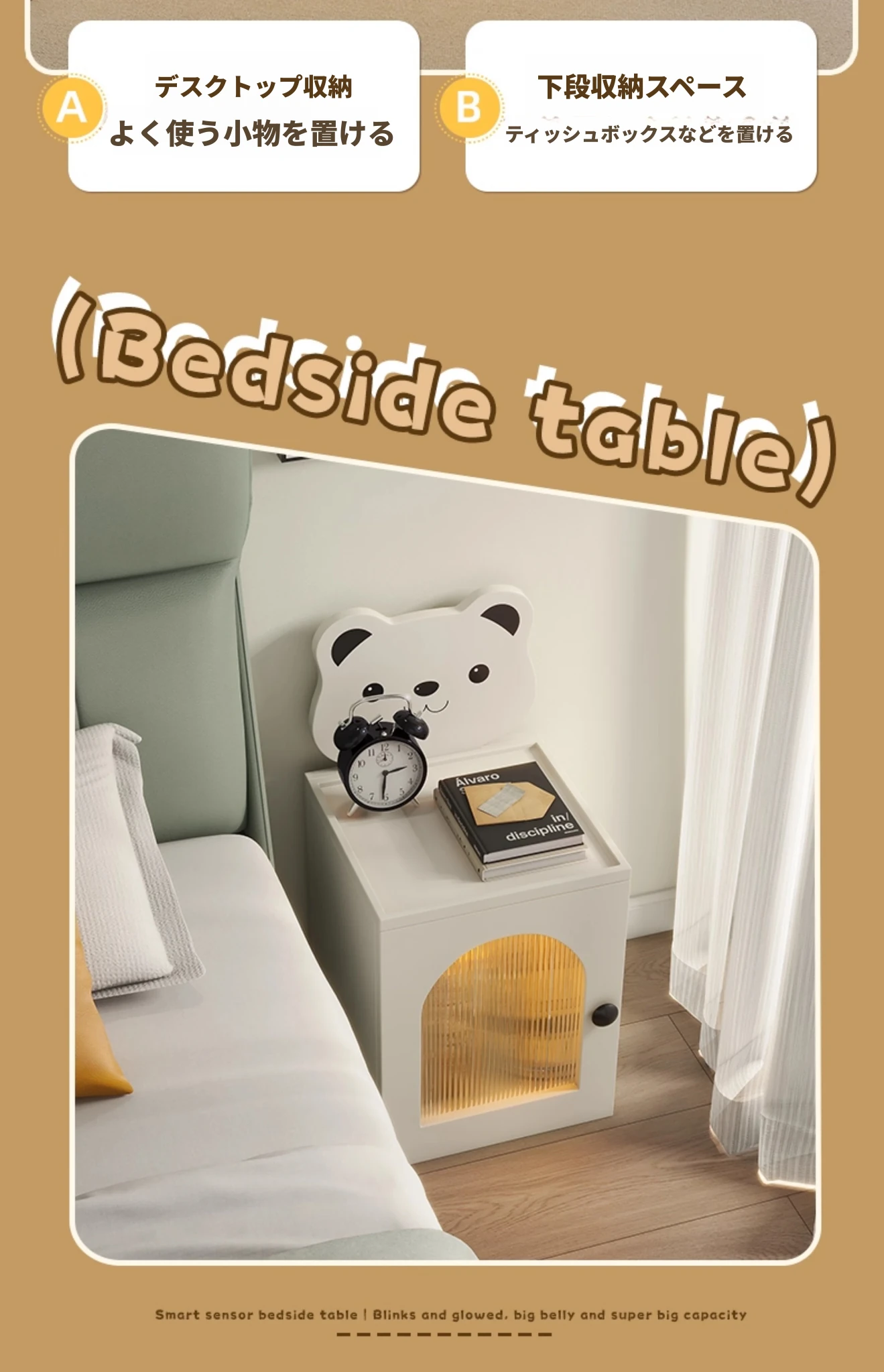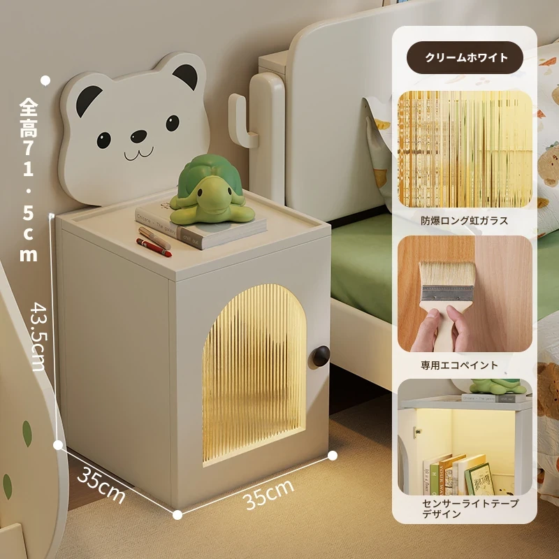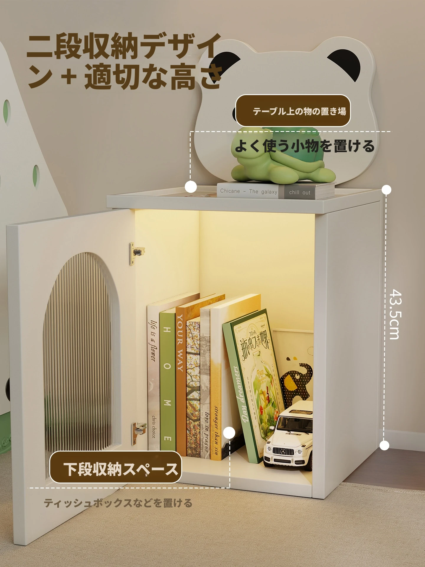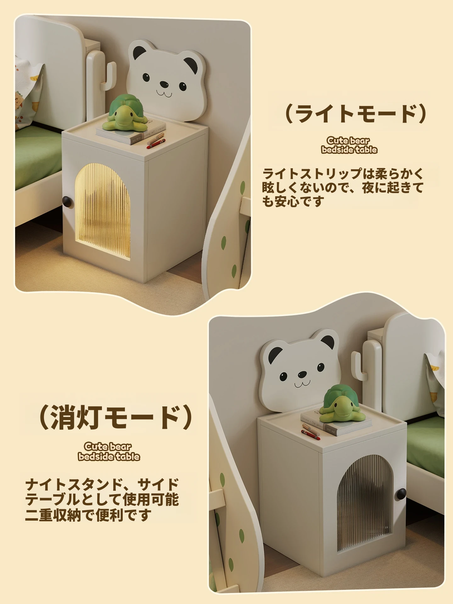 子供部屋用ライト付きナイトテーブル|クリエイティブ&シンプルデザイン|ベッドサイドにぴったりのクリーム風クマ型可愛い収納ラック|お部屋を明るく彩る!