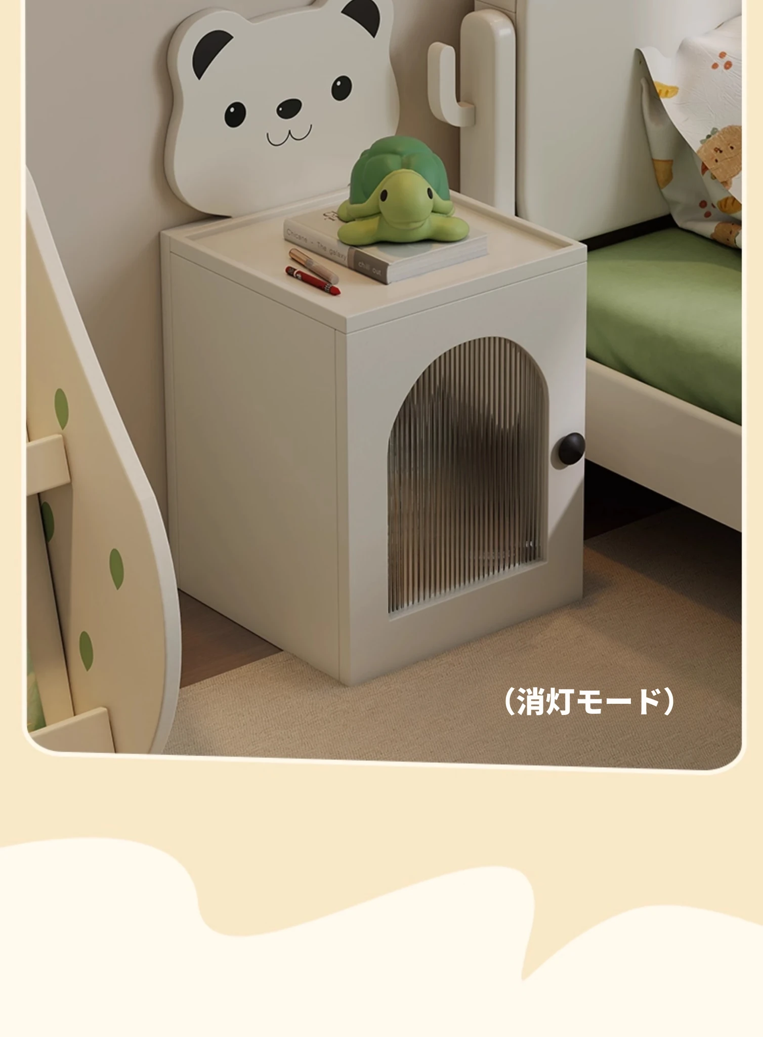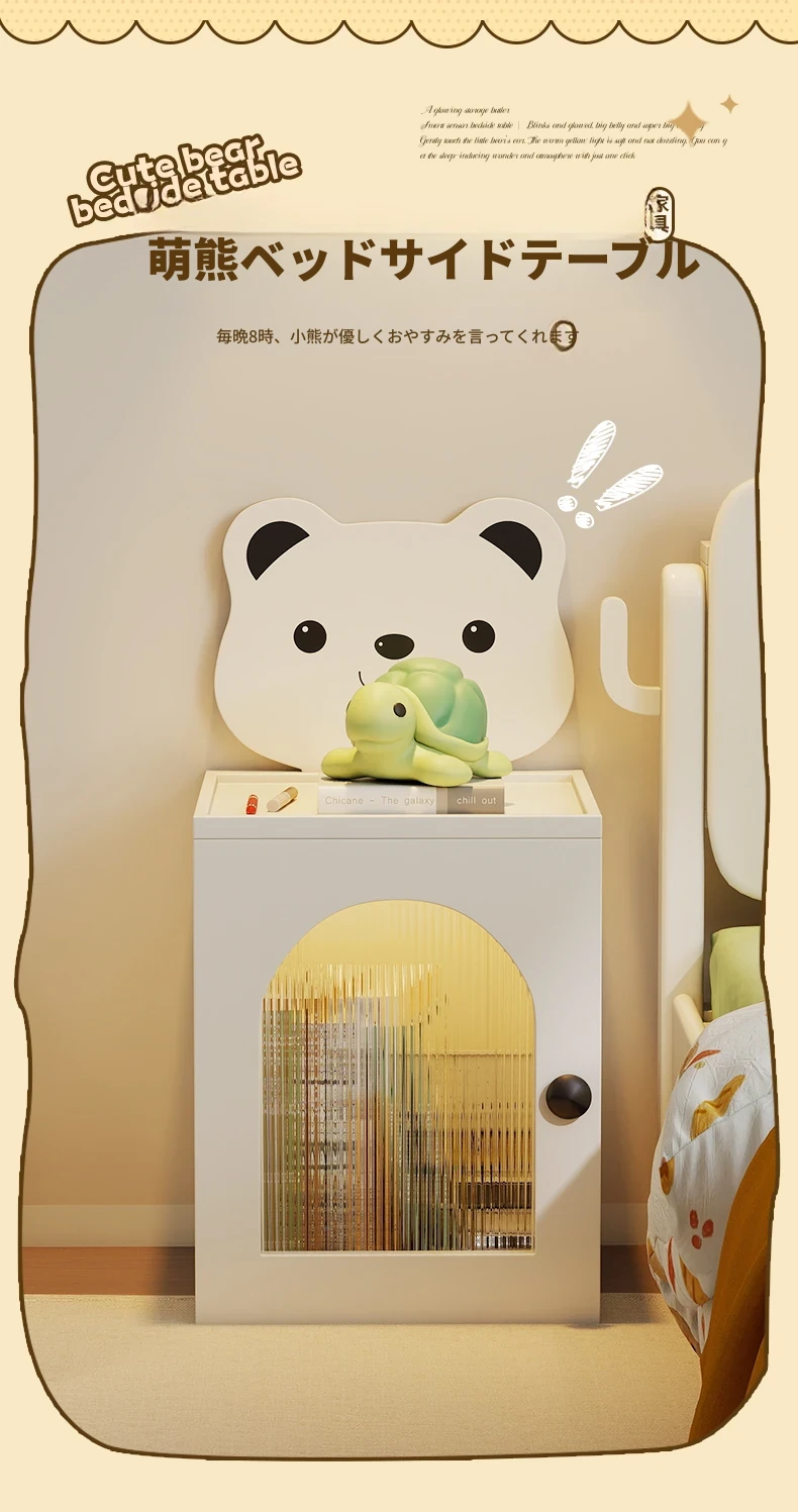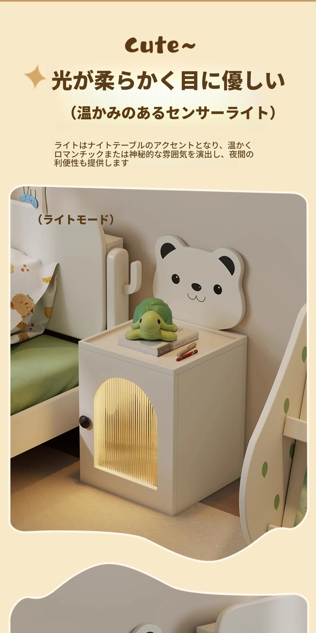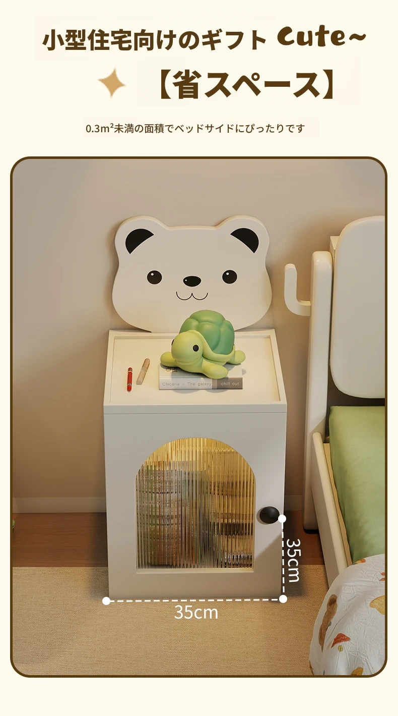 子供部屋用ライト付きナイトテーブル|クリエイティブ&シンプルデザイン|ベッドサイドにぴったりのクリーム風クマ型可愛い収納ラック|お部屋を明るく彩る!