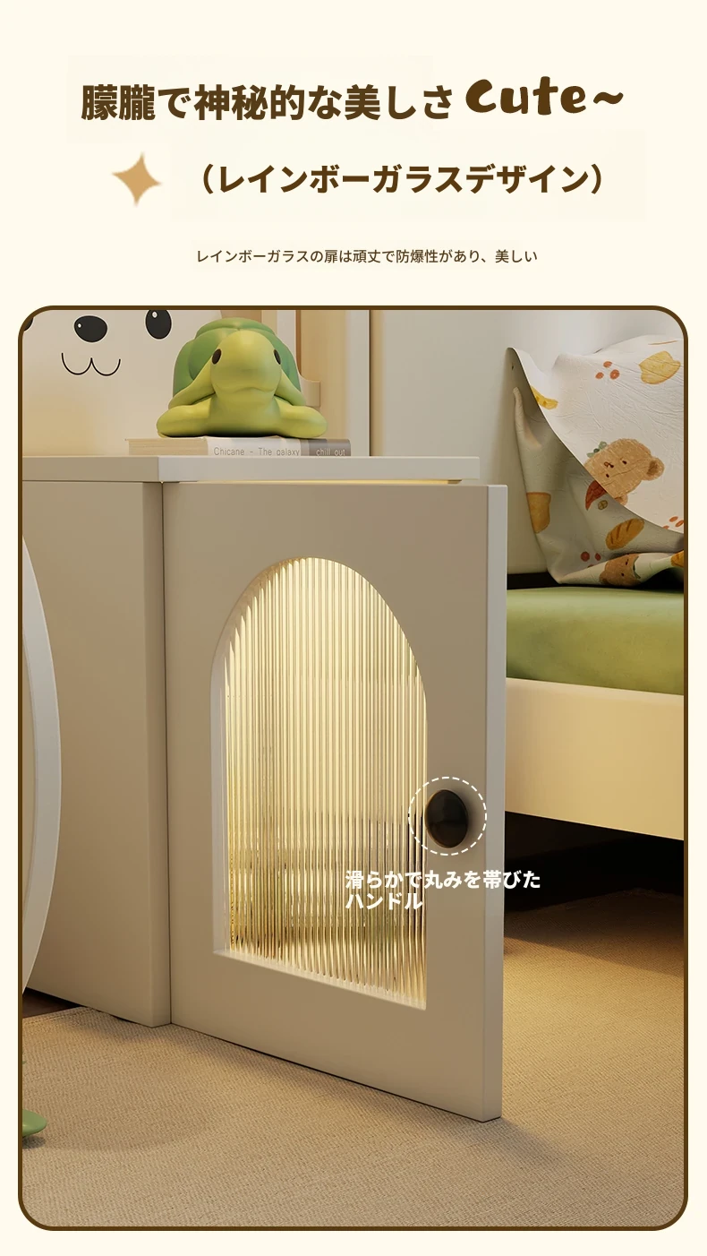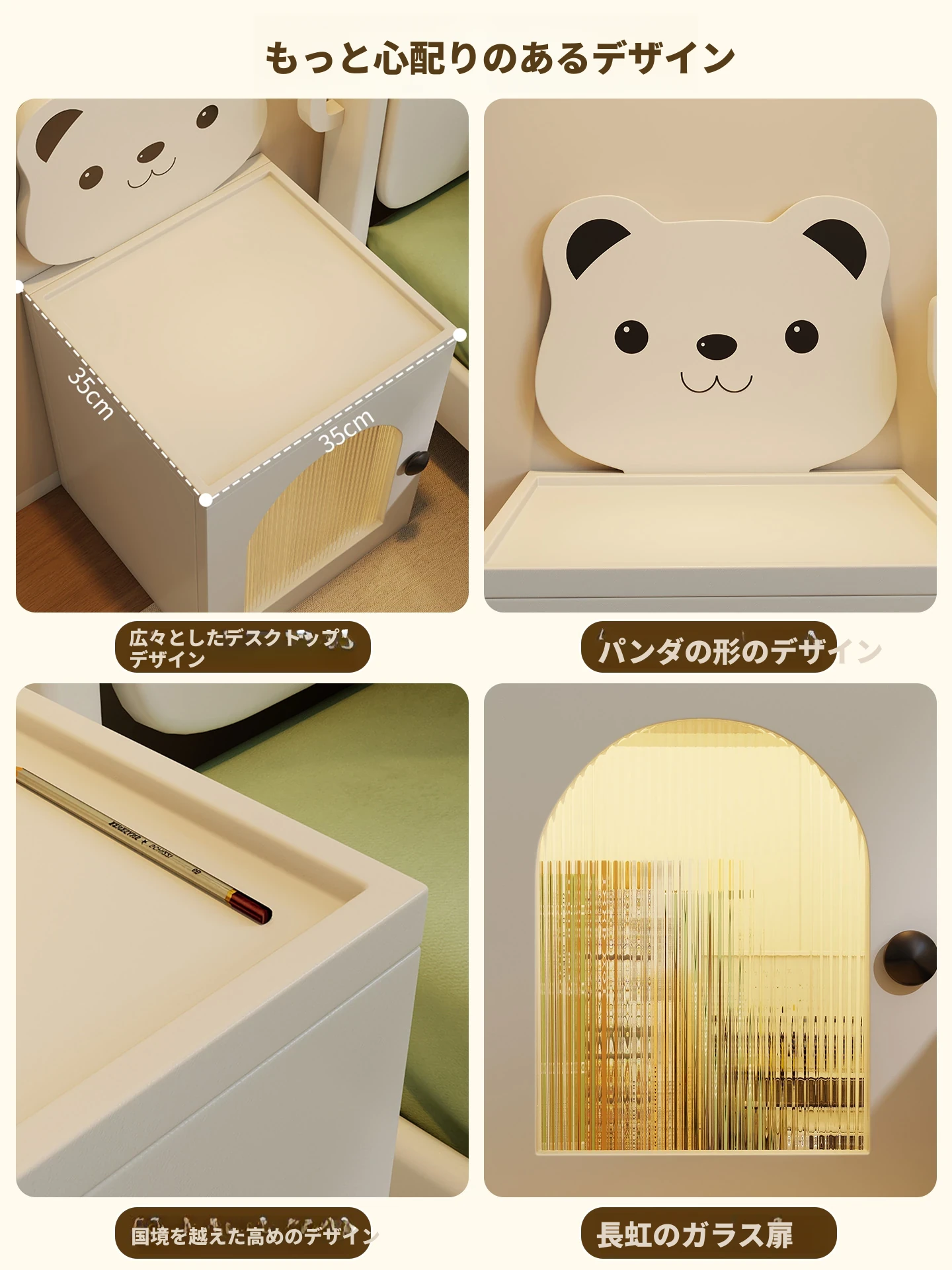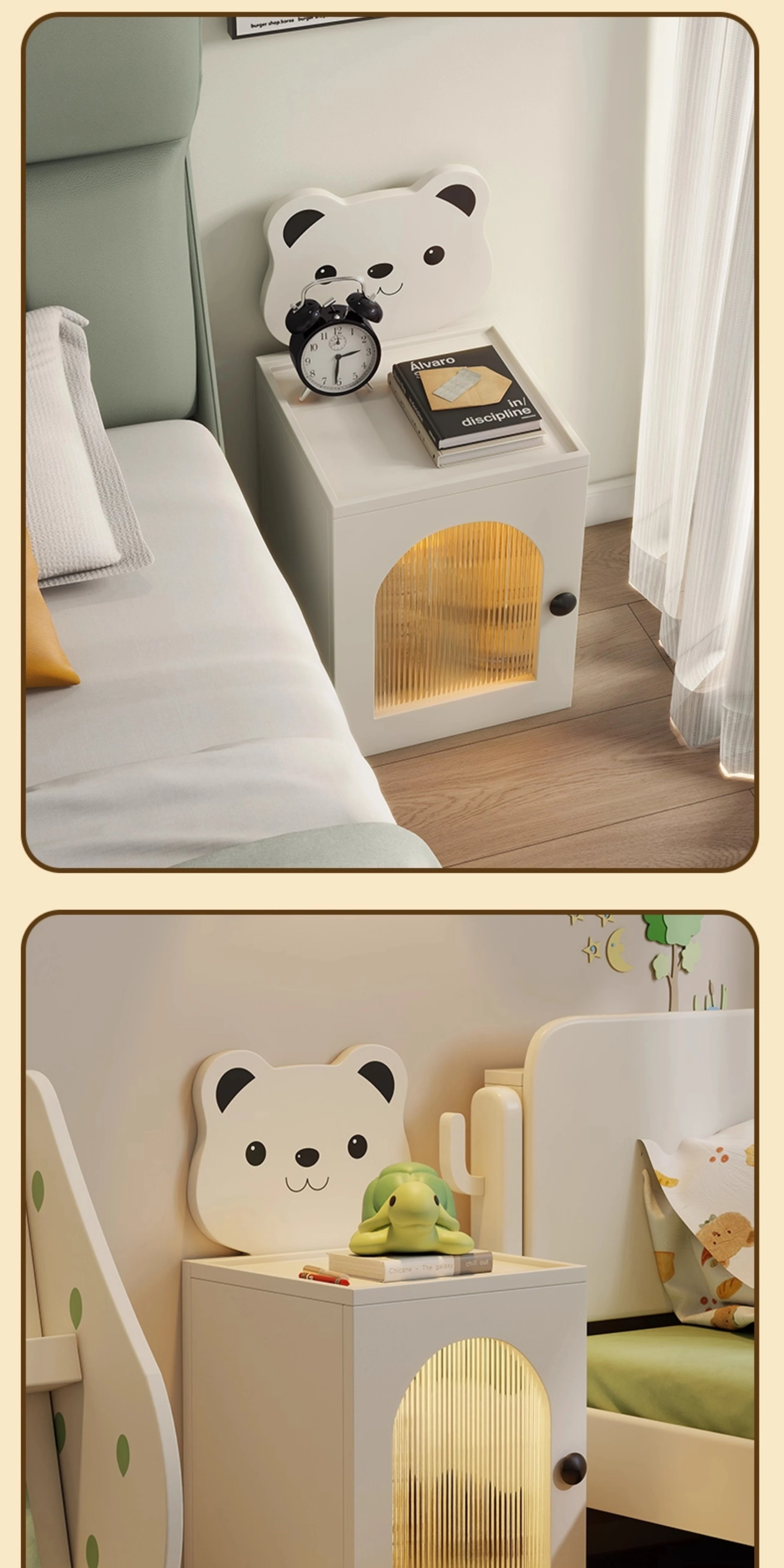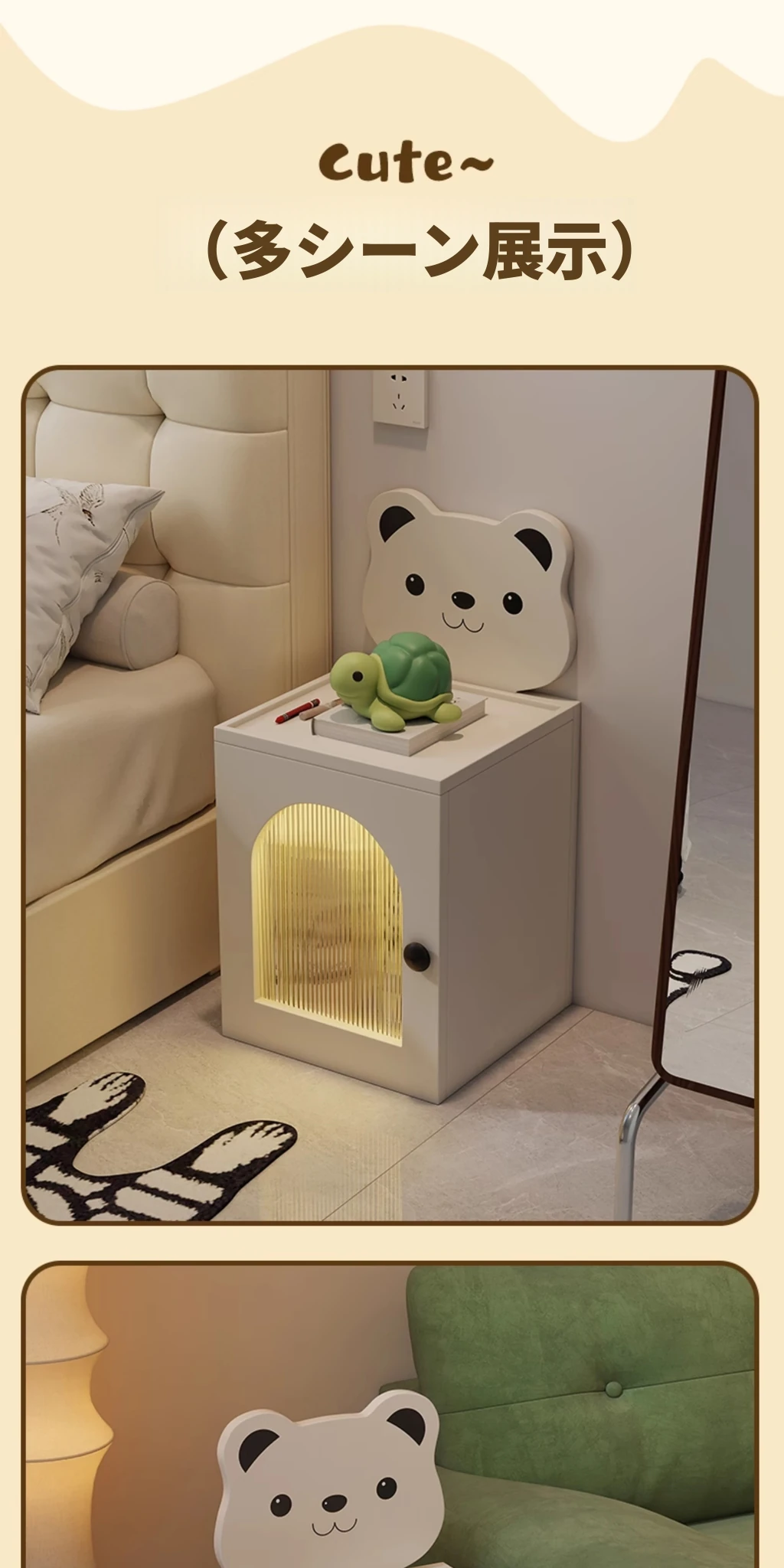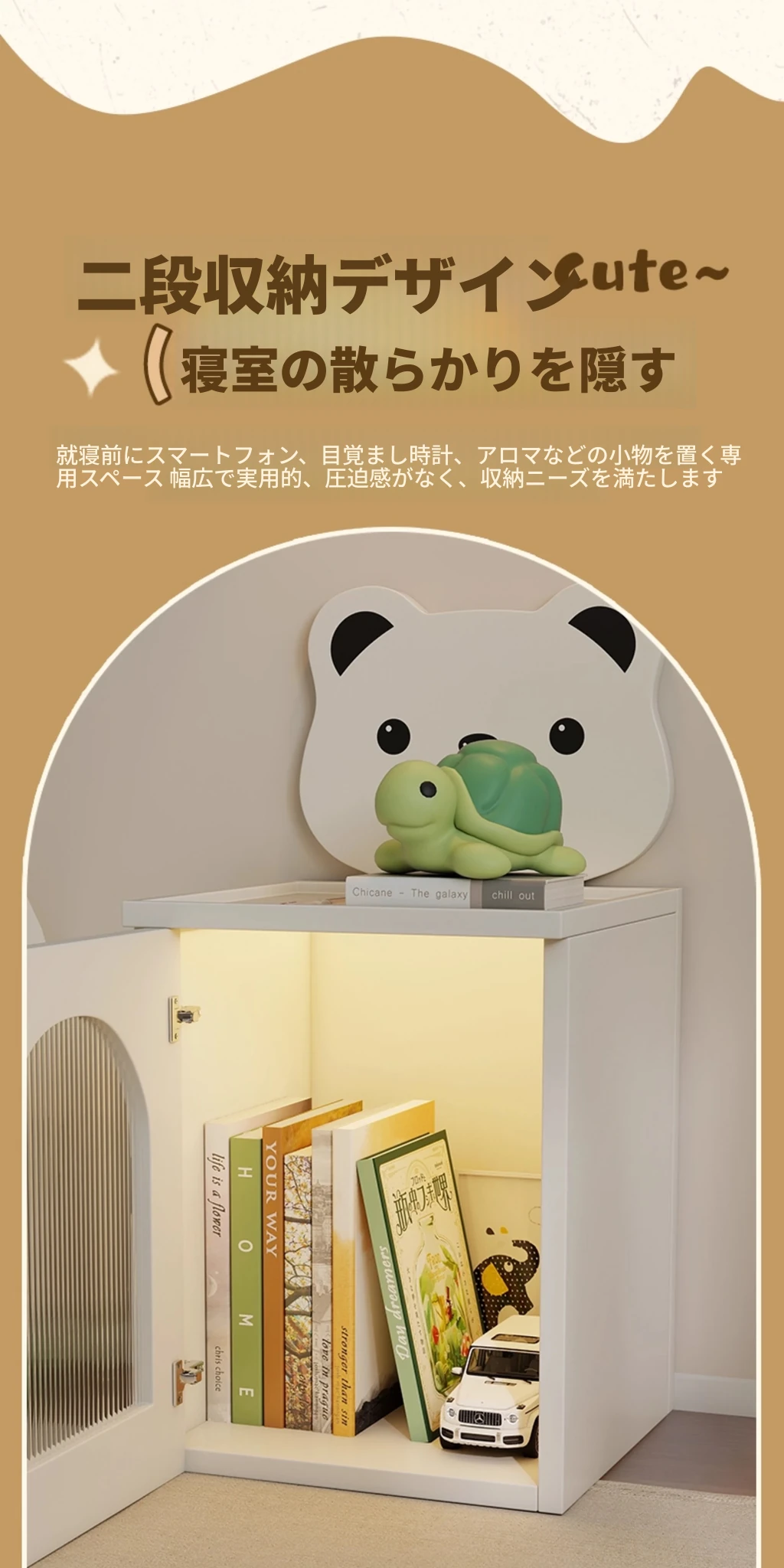 子供部屋用ライト付きナイトテーブル|クリエイティブ&シンプルデザイン|ベッドサイドにぴったりのクリーム風クマ型可愛い収納ラック|お部屋を明るく彩る!