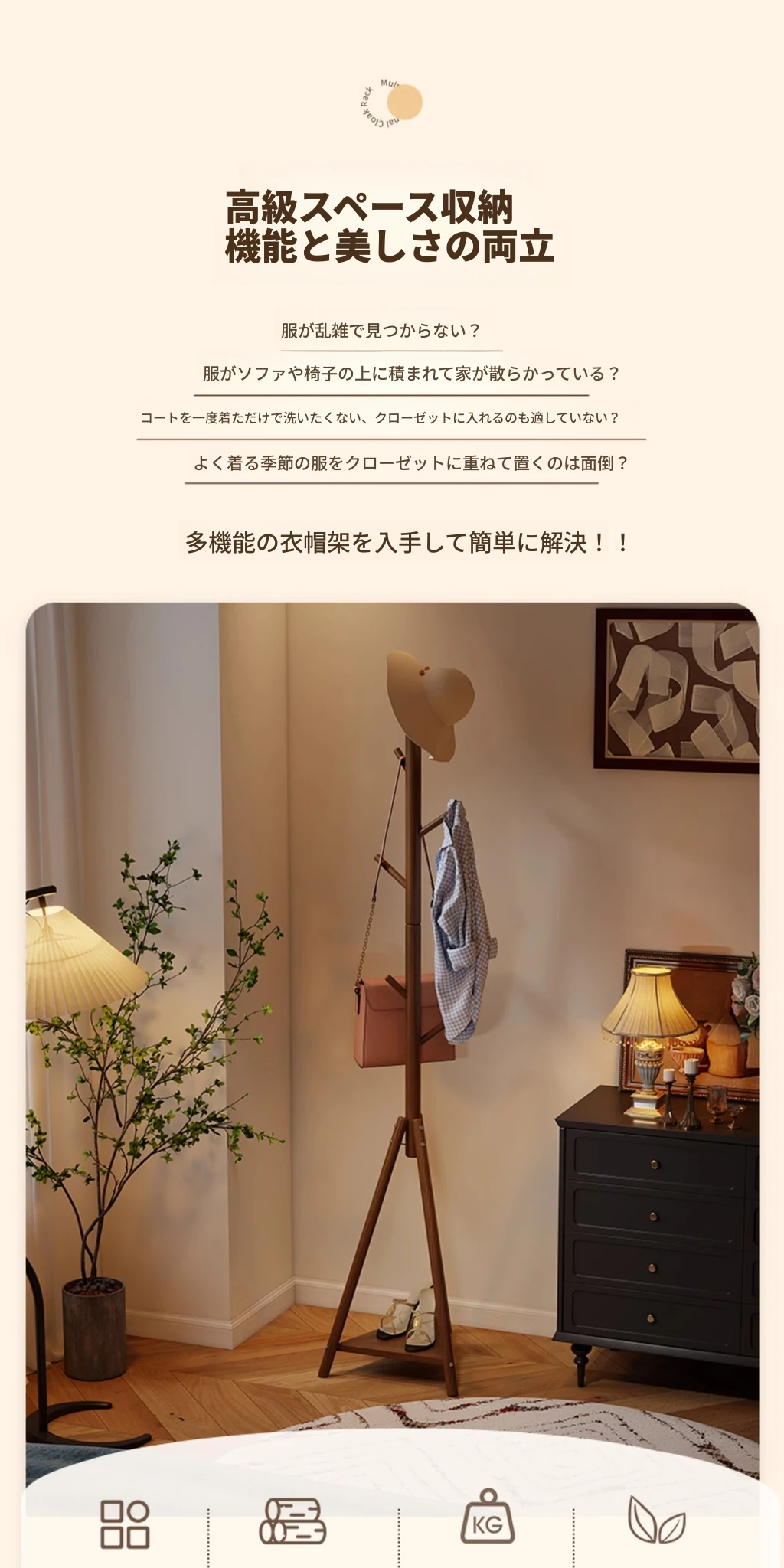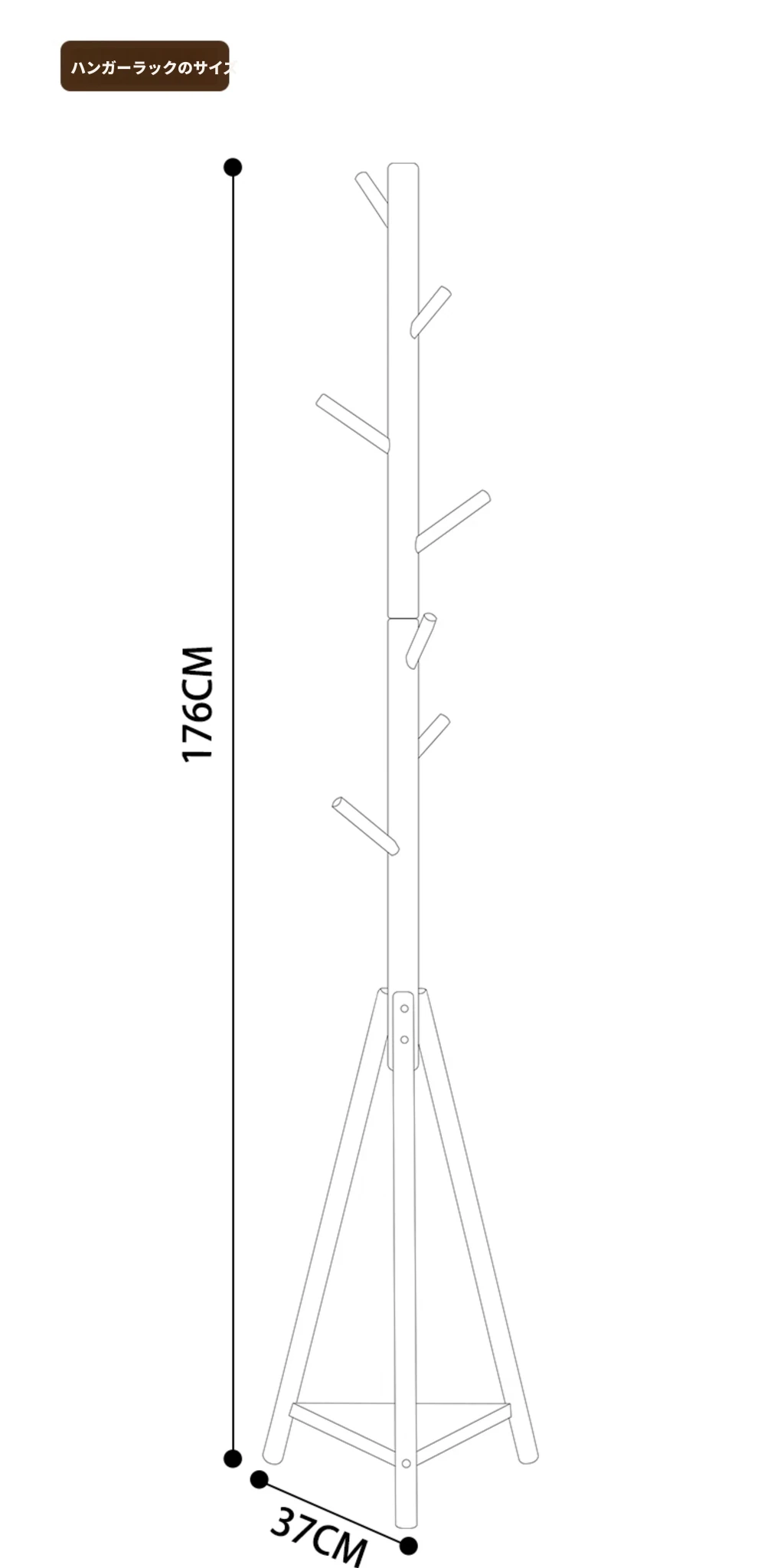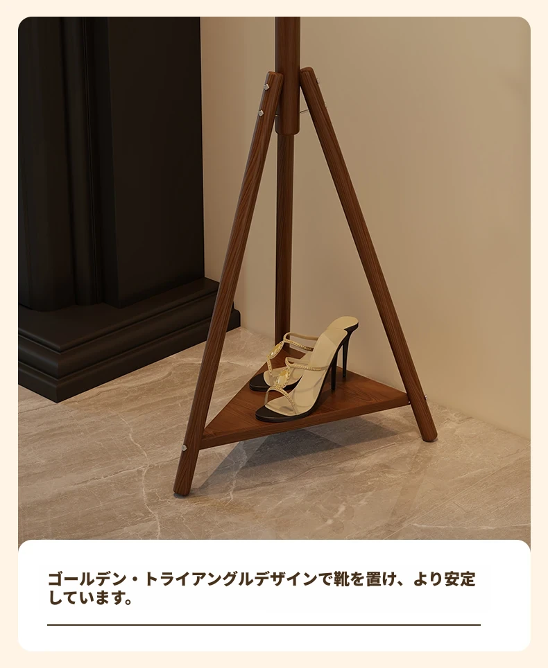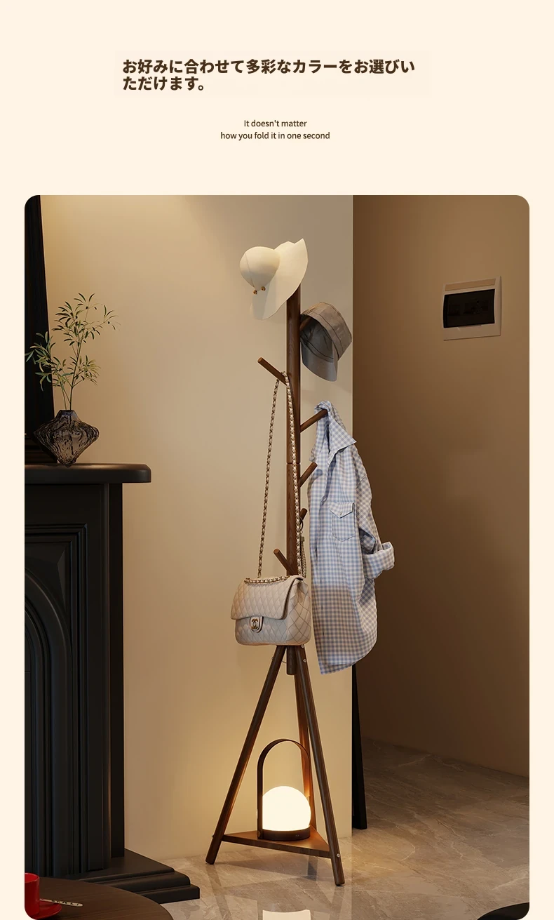 天然木材使用のスタイリッシュなフロアコートハンガー - おしゃれな枝のデザインで、寝室やリビングに最適!シンプルなスタンド式でバッグや帽子も掛けられる、家での便利な収納アイテム。