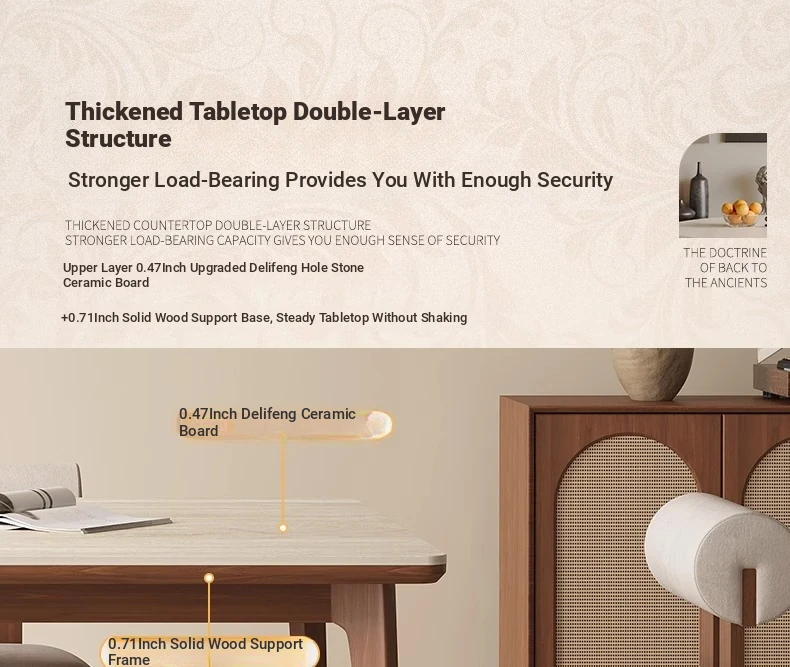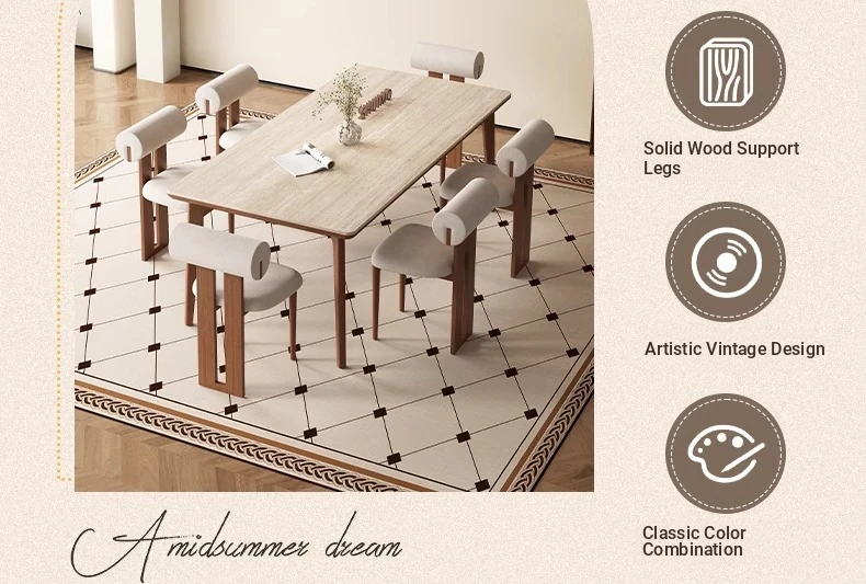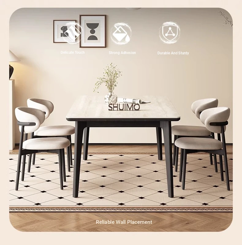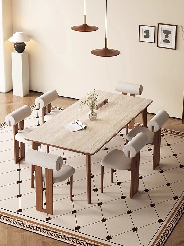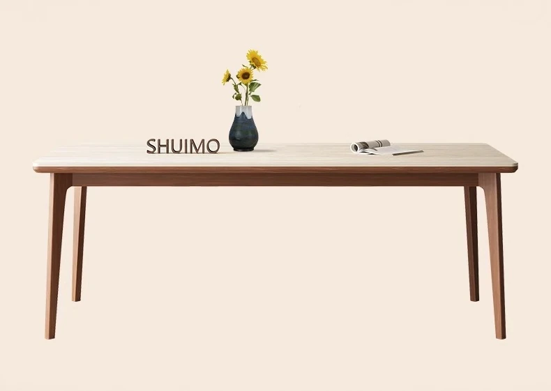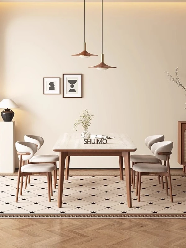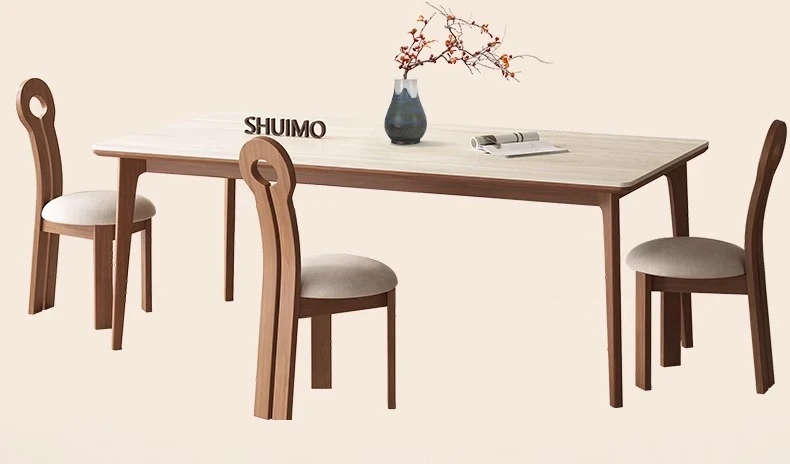 Delifeng Solid Wood Rock Plate Dining Table - Walnut Color Cream Style, Modern Minimalist High-End Dining Set for Living Room and Home Use