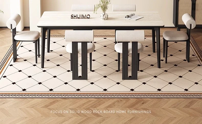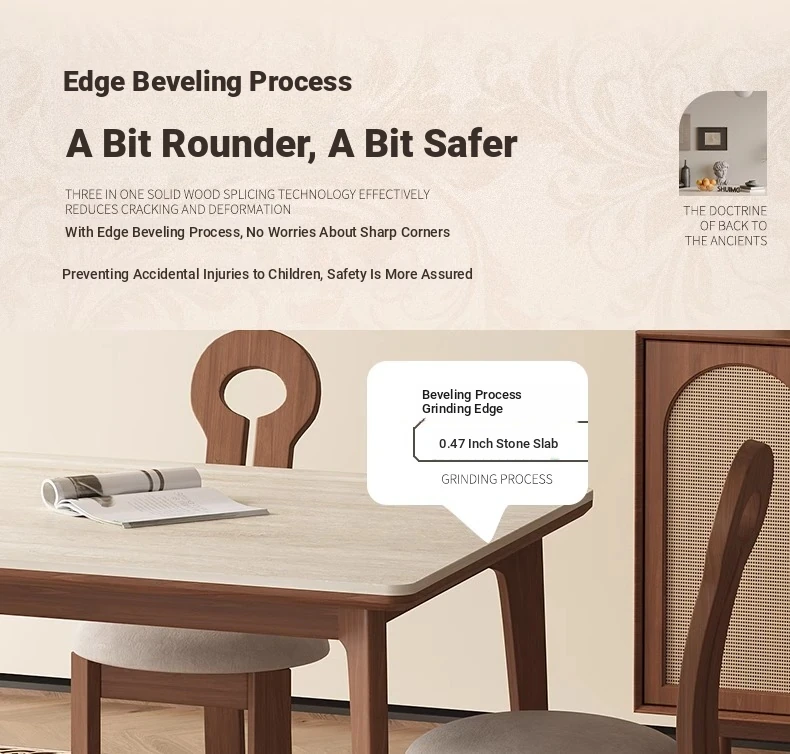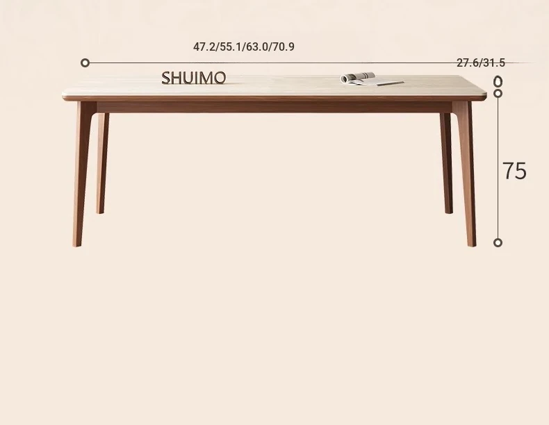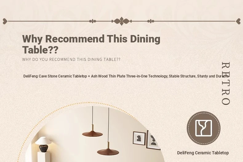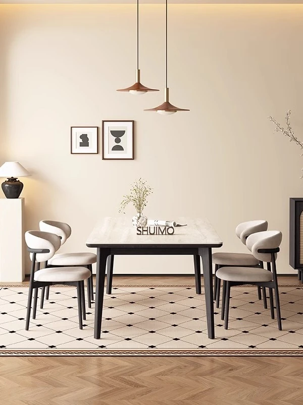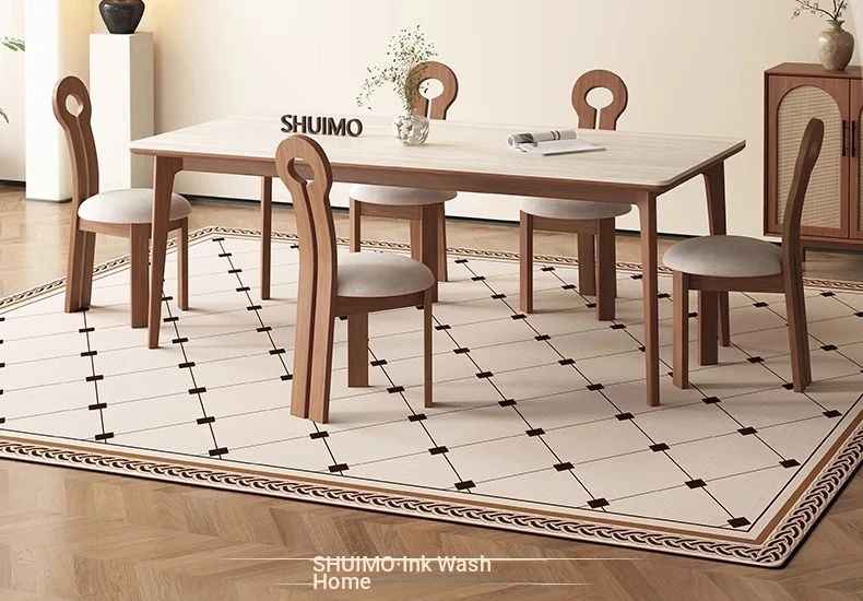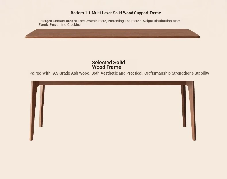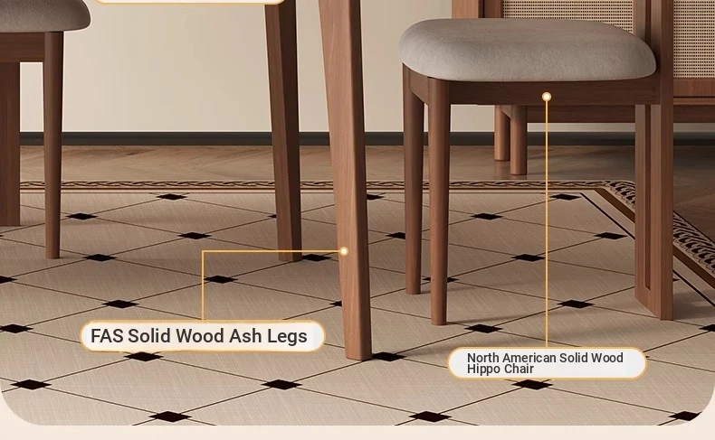 Delifeng Solid Wood Rock Plate Dining Table - Walnut Color Cream Style, Modern Minimalist High-End Dining Set for Living Room and Home Use