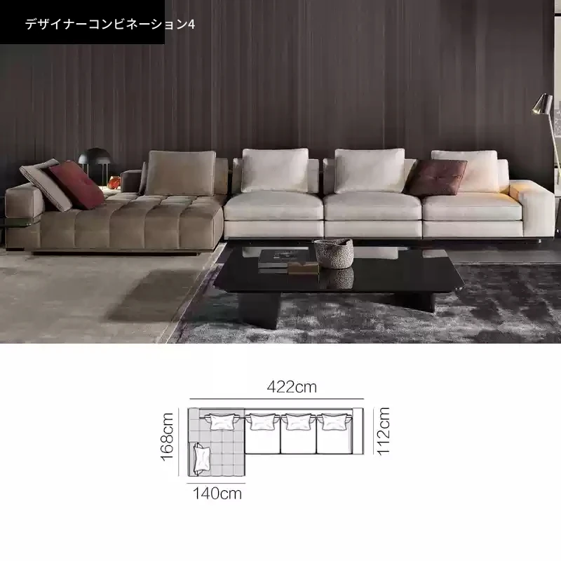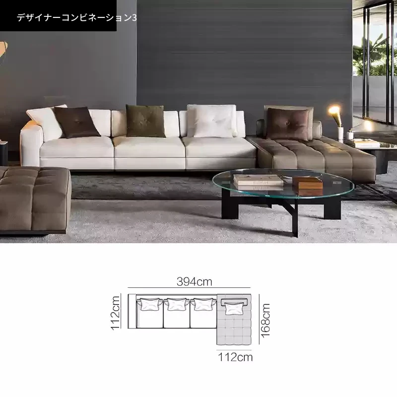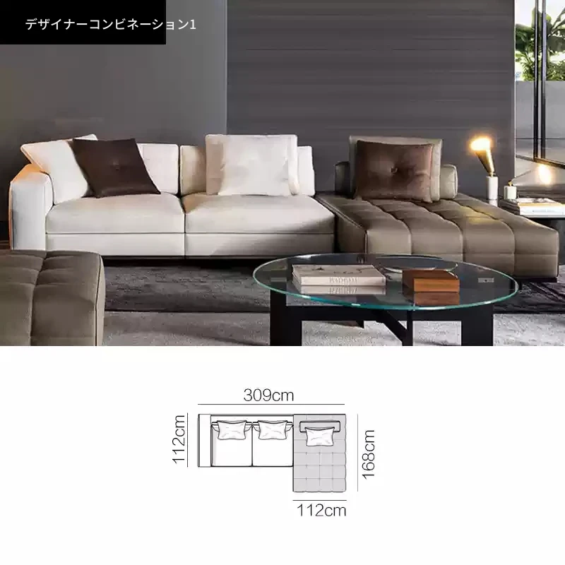 エレガントで洗練されたイタリアンミニマリズム、ローレンスデザイナーソファ - 高級直列モジュール式本革ソファで、上質な空間を演出します。