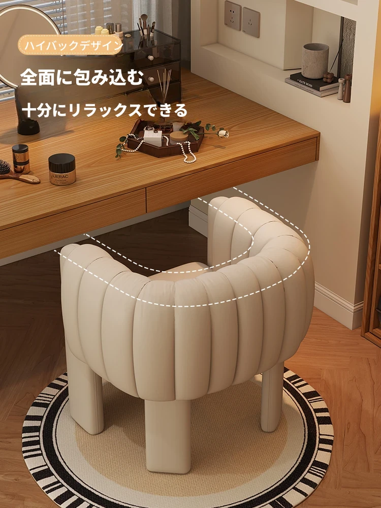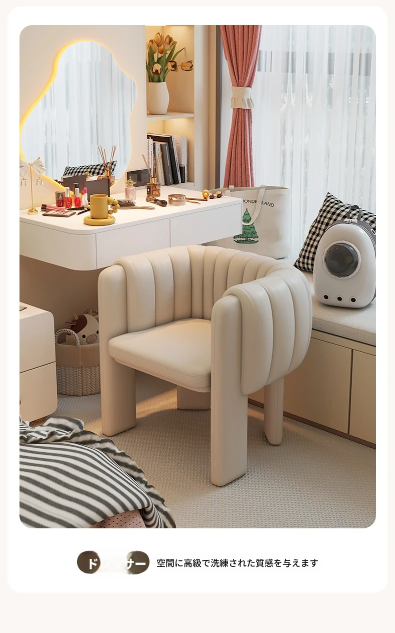 おしゃれな化粧台チェア|プリンセスデザインの高級感あふれる化粧椅子|女性の寝室にぴったりな背もたれ付きネイルチェア|美しさを引き立てる魅力的なアイテム!