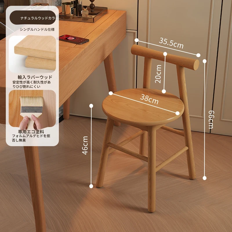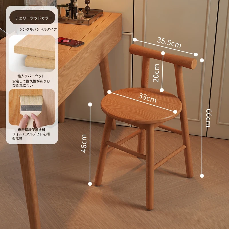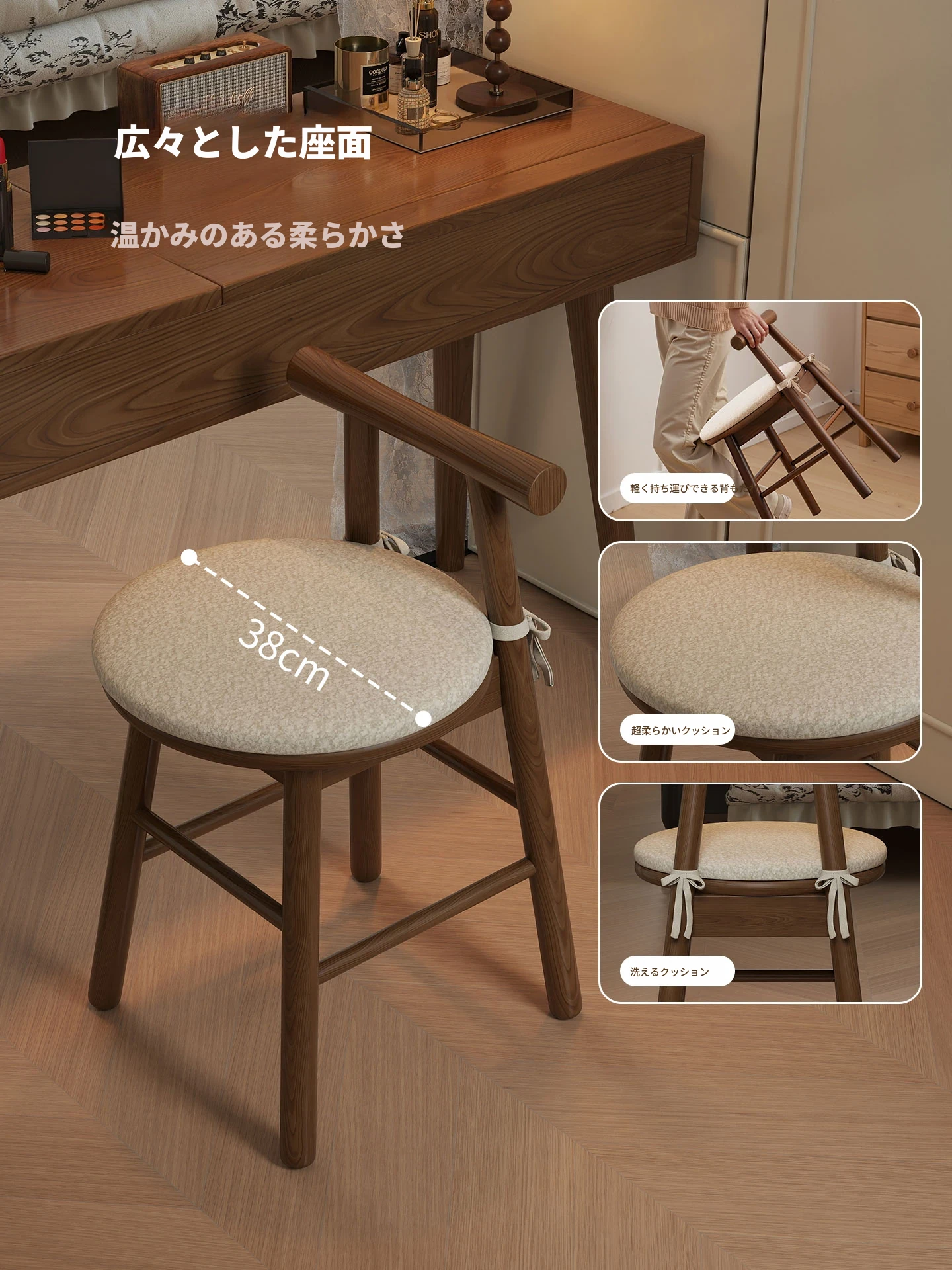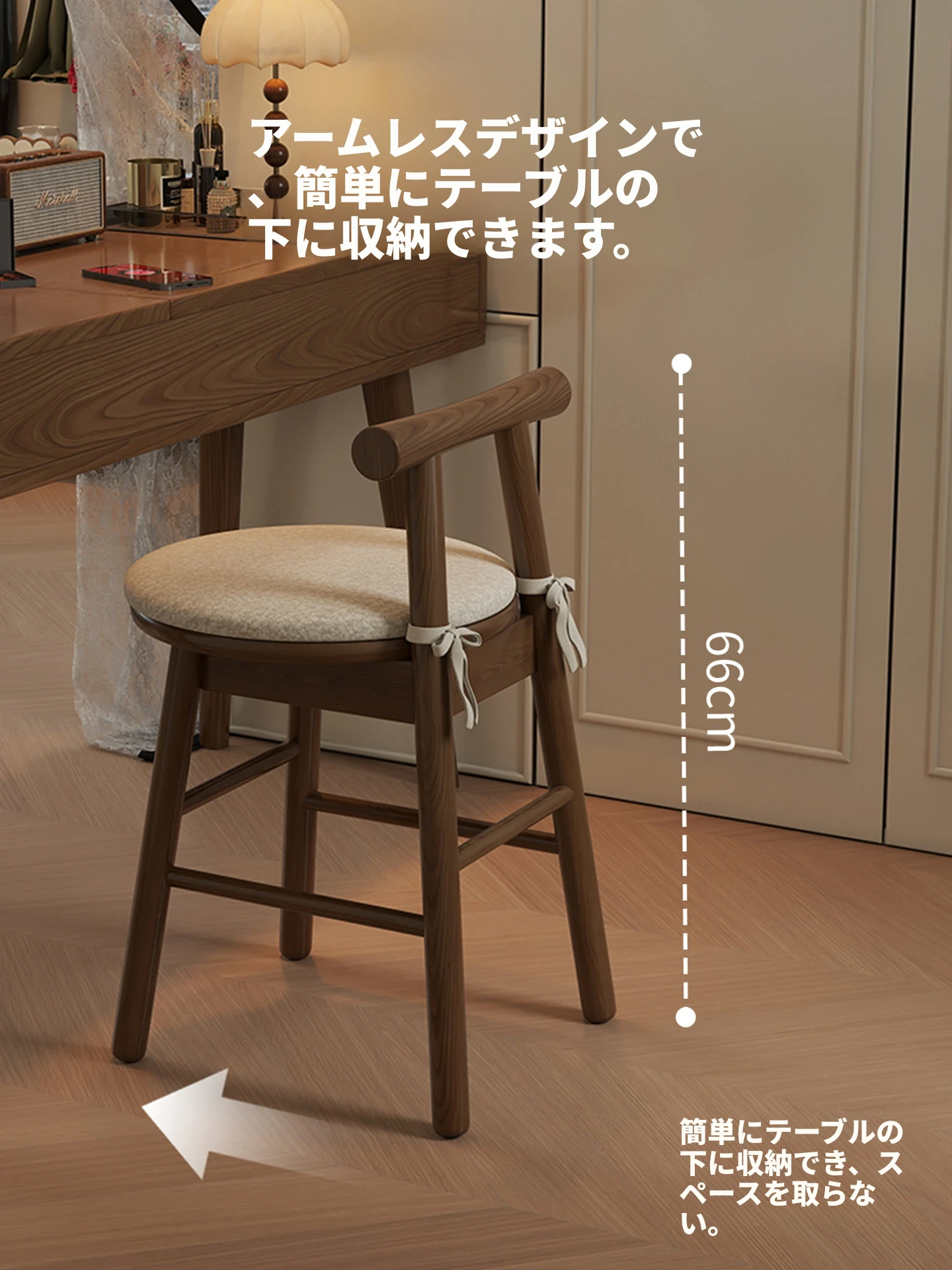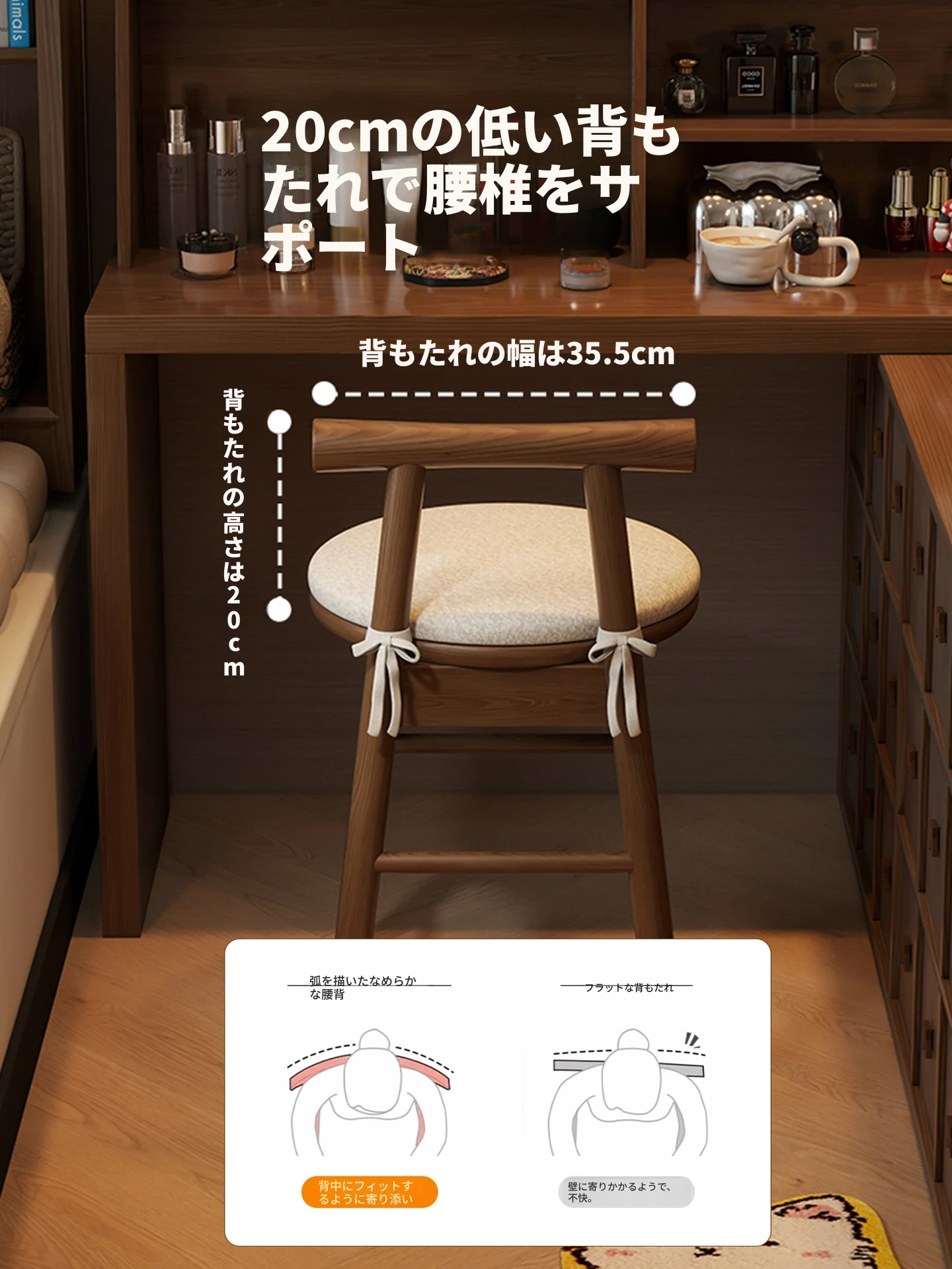 背もたれ付きの化粧椅子 - おしゃれで便利な洗える小さな椅子! 本物の木製で、衣装部屋やメイクスペースにぴったり。美しさを引き立てるバタフライデザインで、毎日のメイクアップを特別な時間に!
