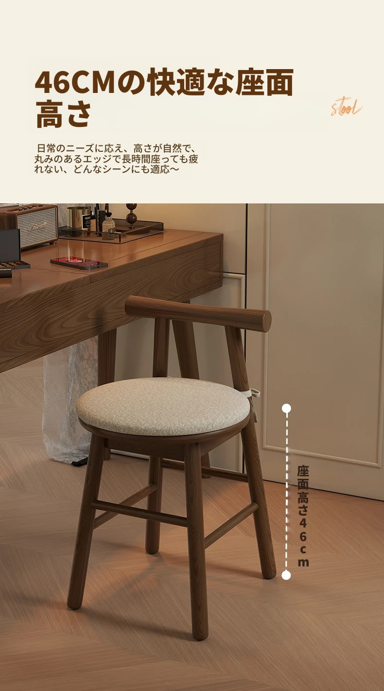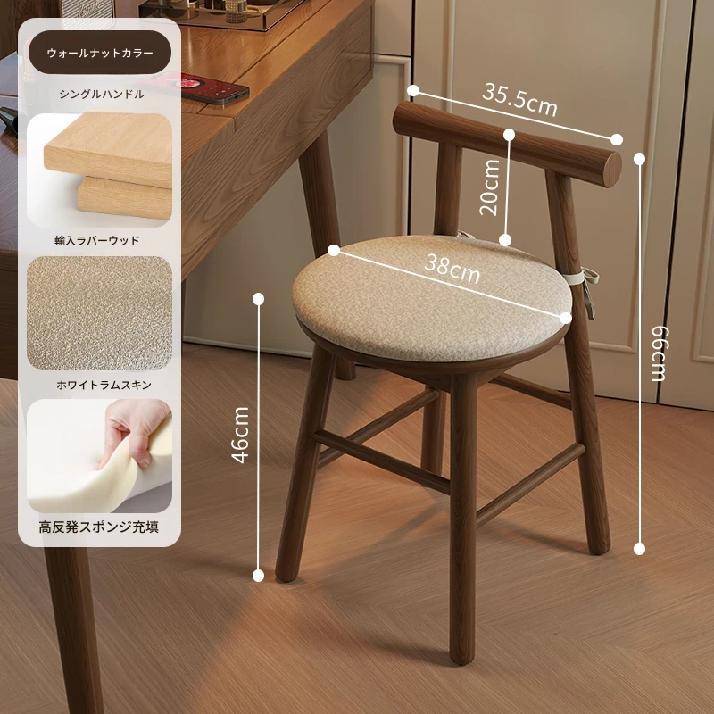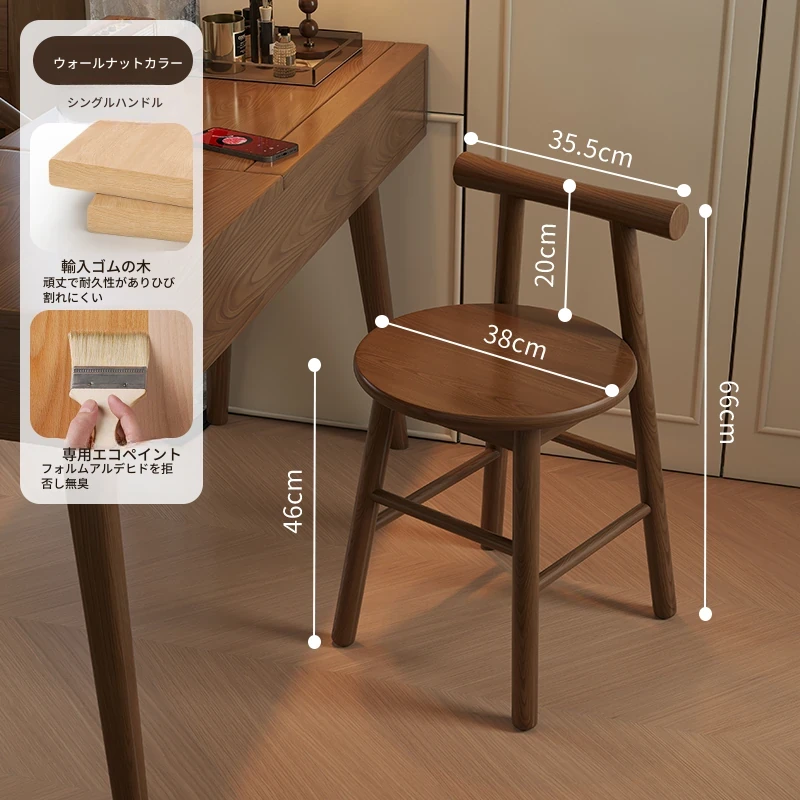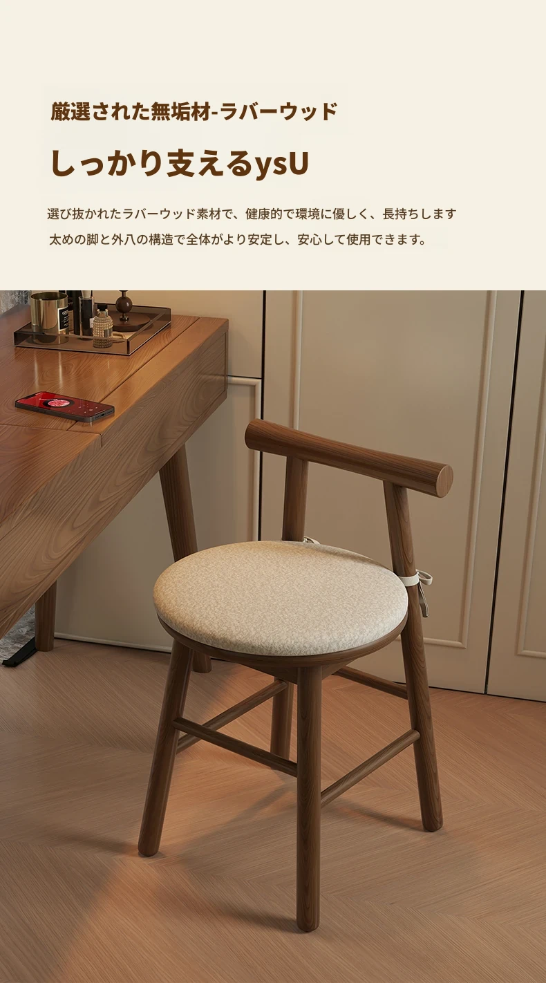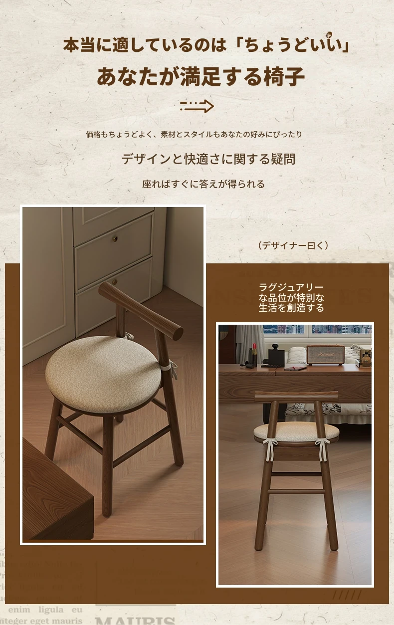 背もたれ付きの化粧椅子 - おしゃれで便利な洗える小さな椅子! 本物の木製で、衣装部屋やメイクスペースにぴったり。美しさを引き立てるバタフライデザインで、毎日のメイクアップを特別な時間に!