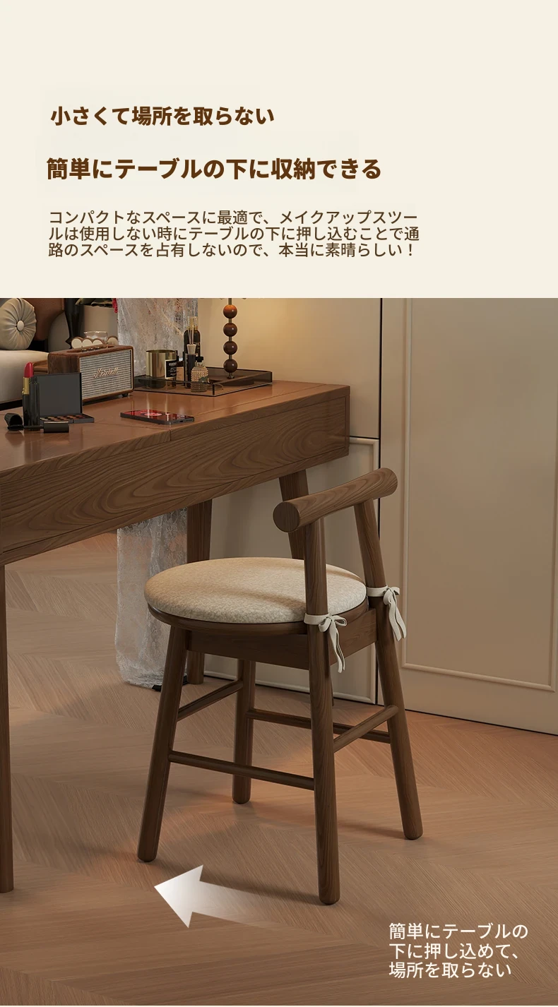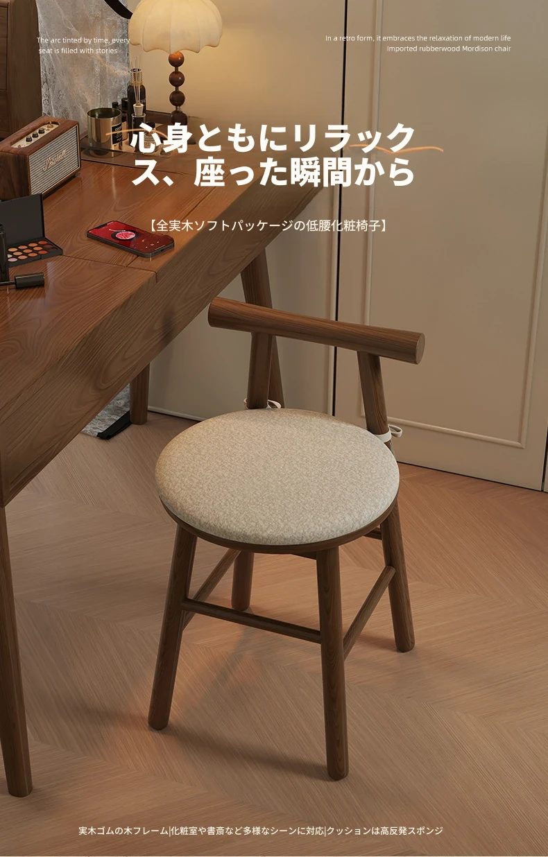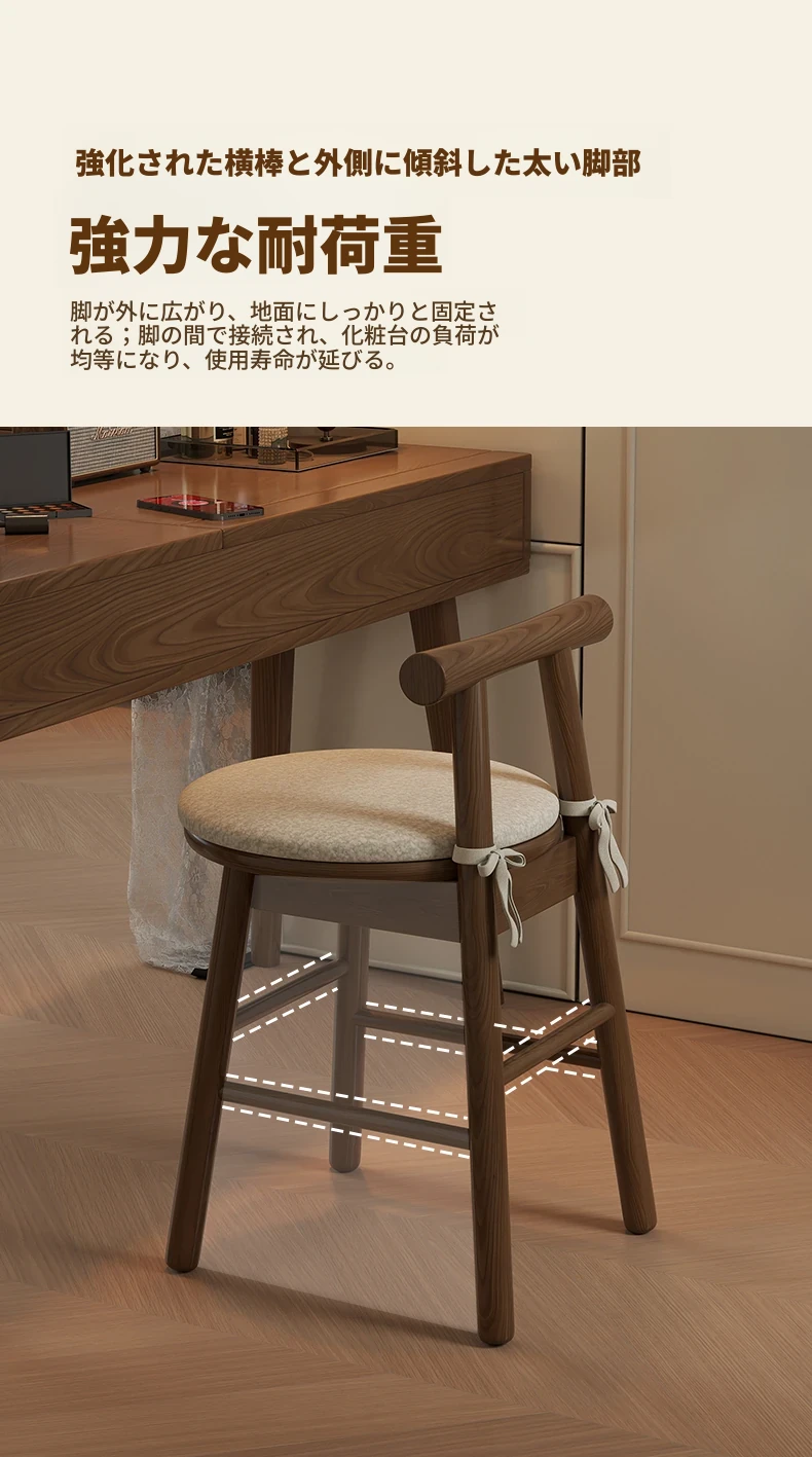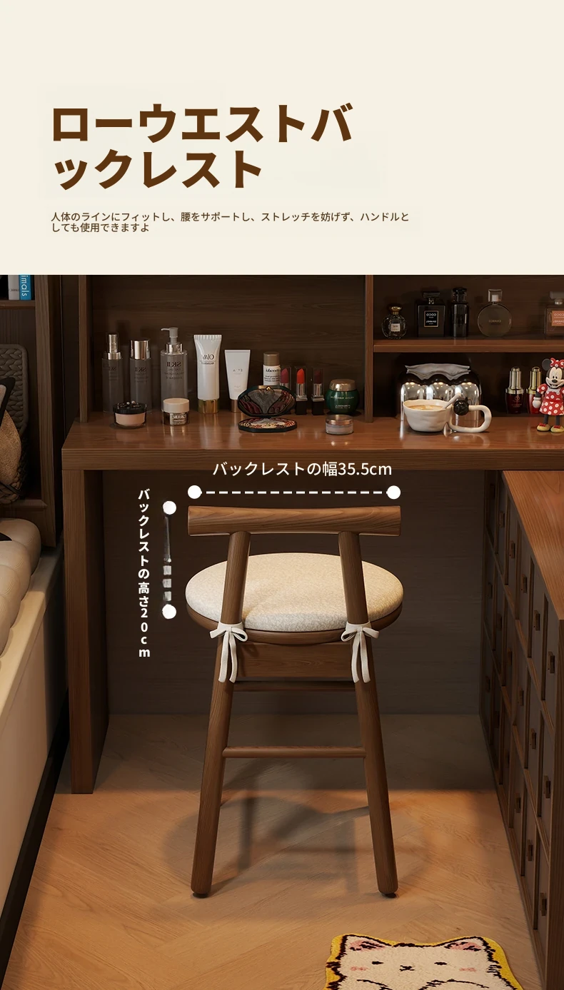 背もたれ付きの化粧椅子 - おしゃれで便利な洗える小さな椅子! 本物の木製で、衣装部屋やメイクスペースにぴったり。美しさを引き立てるバタフライデザインで、毎日のメイクアップを特別な時間に!