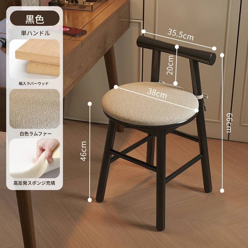 【バタフライドレッシングチェア】無垢材-ブラック色