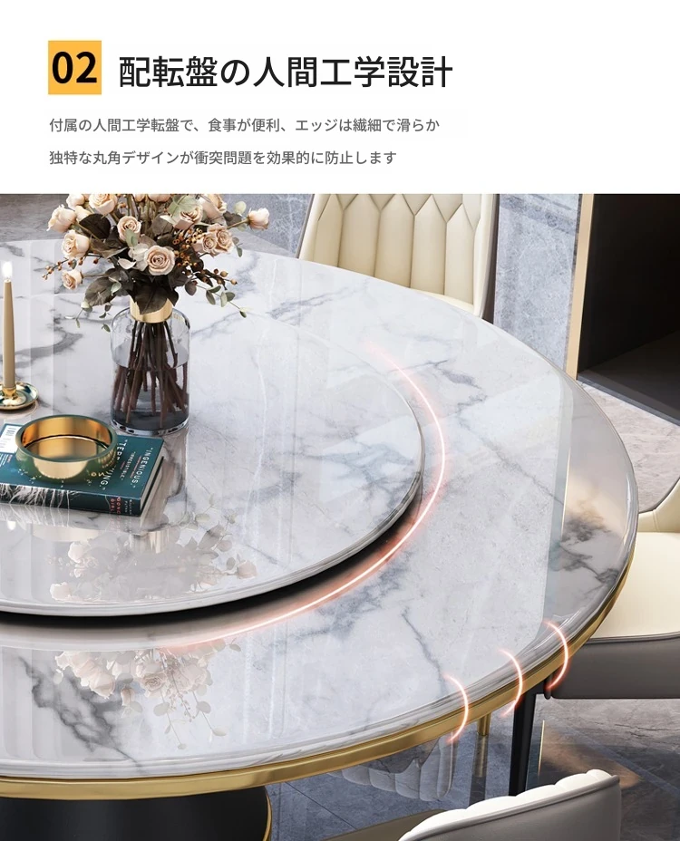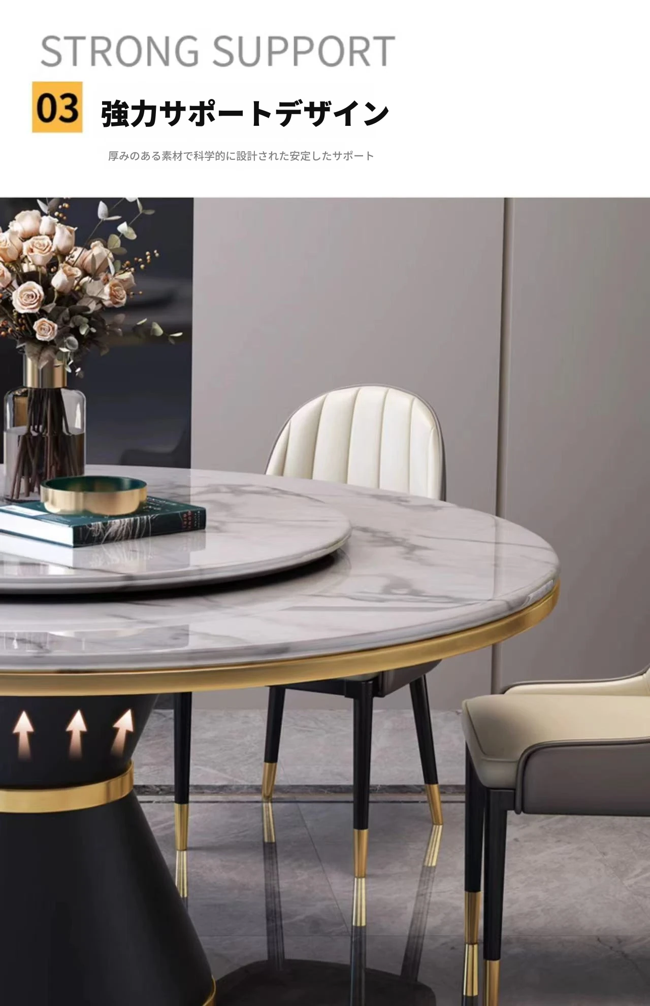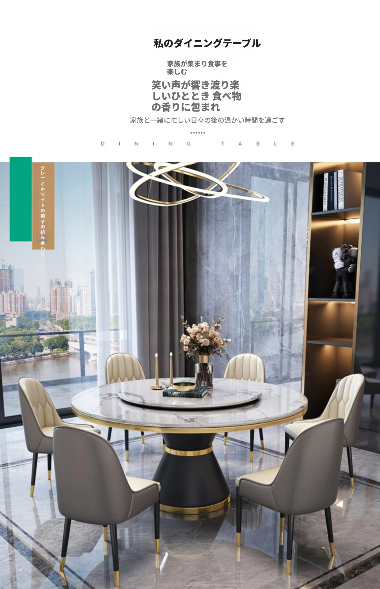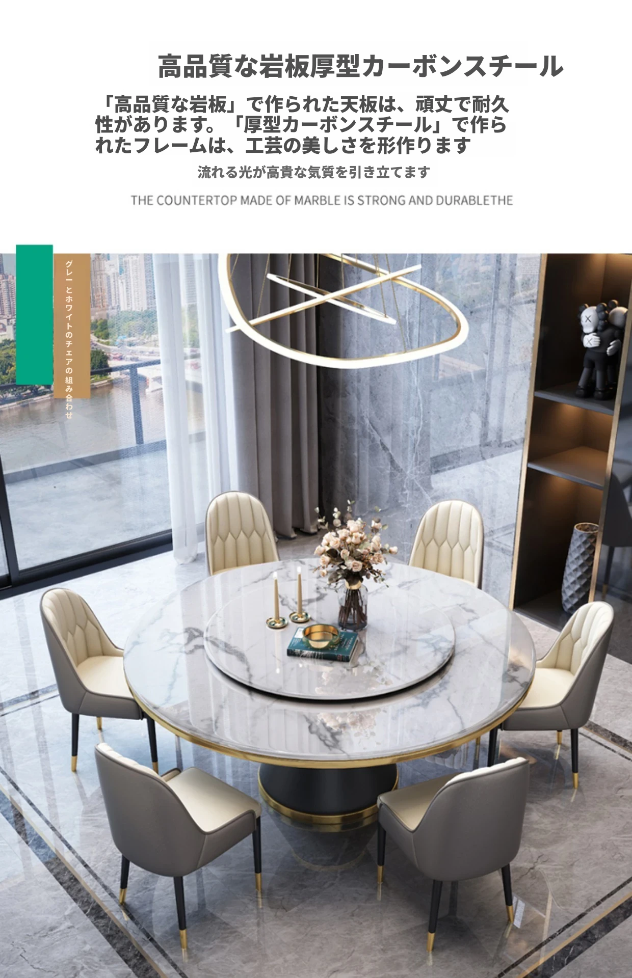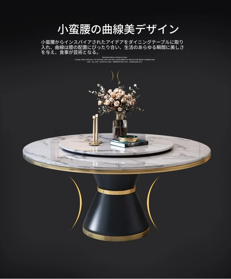 回転式マーブル円形ダイニングテーブル - 小スペース向け、家族や友人との楽しい食事に最適!便利な回転機能付き、スタイリッシュなデザインでお部屋を華やかに彩ります。