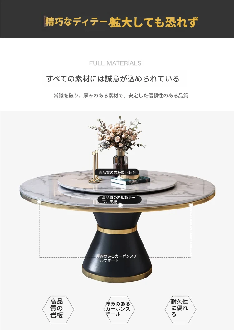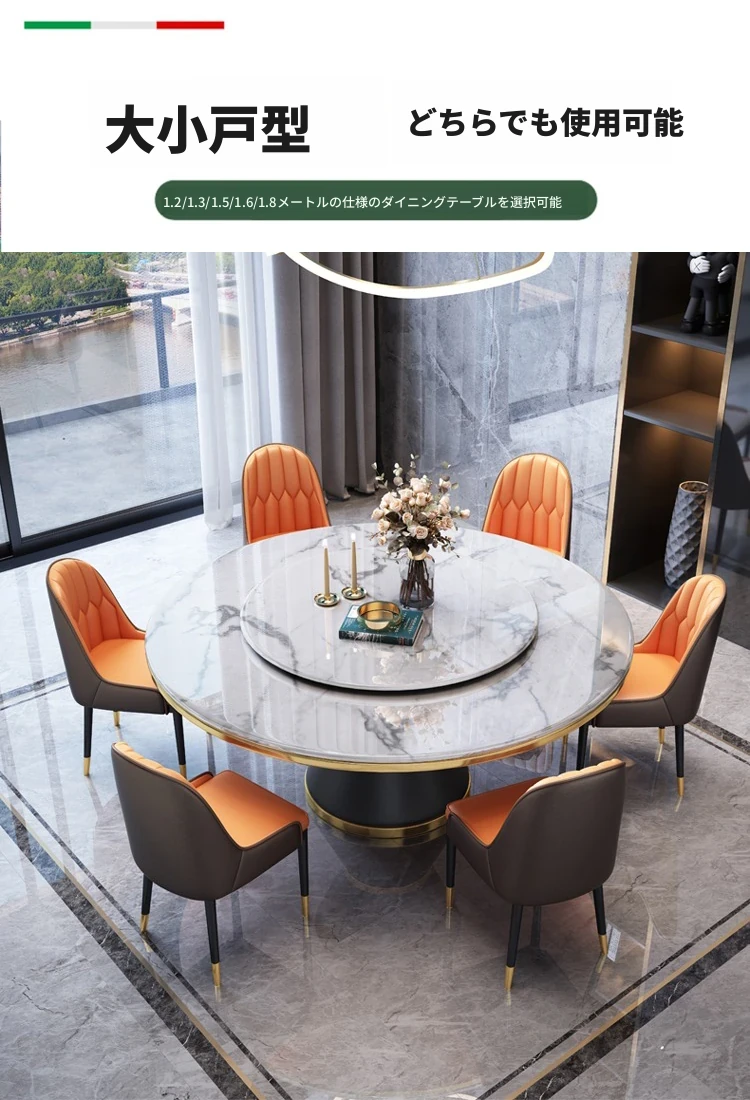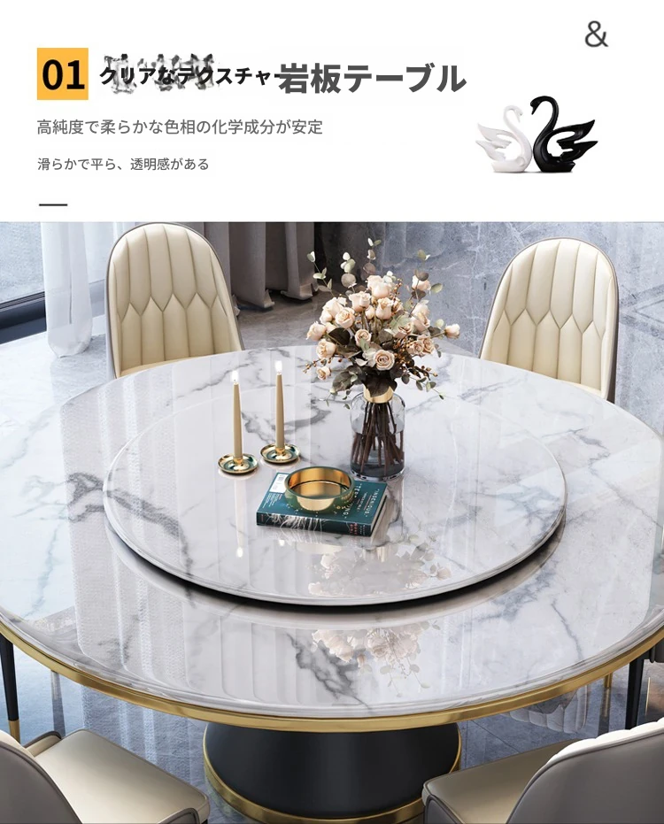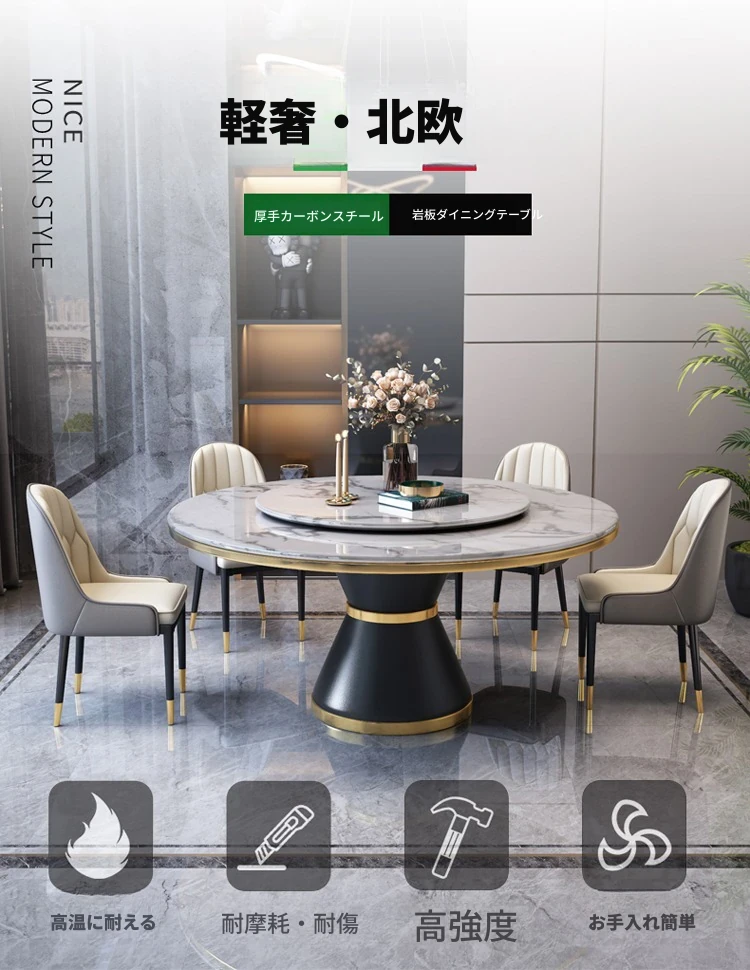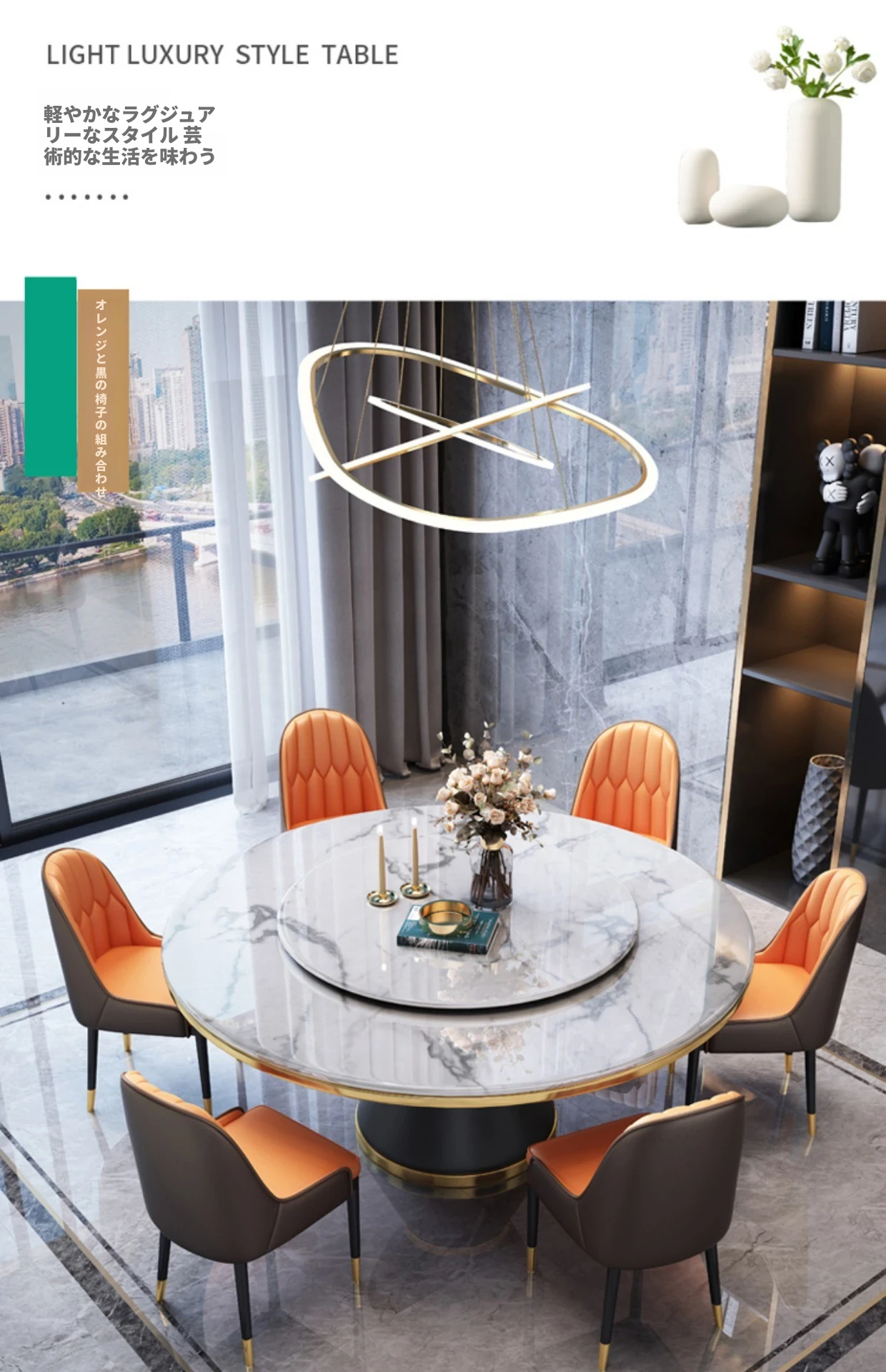 回転式マーブル円形ダイニングテーブル - 小スペース向け、家族や友人との楽しい食事に最適!便利な回転機能付き、スタイリッシュなデザインでお部屋を華やかに彩ります。
