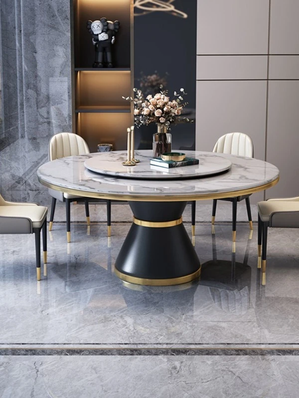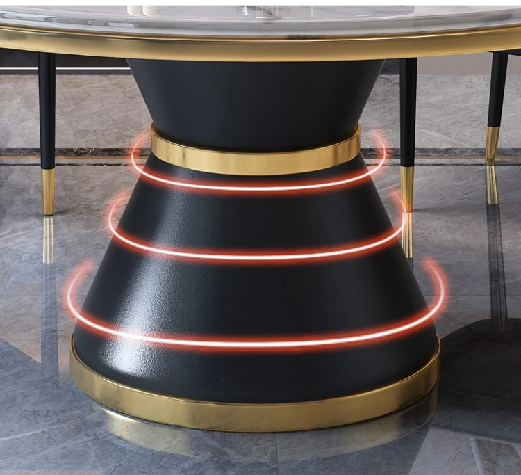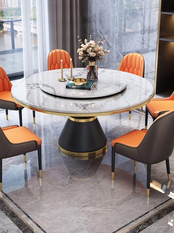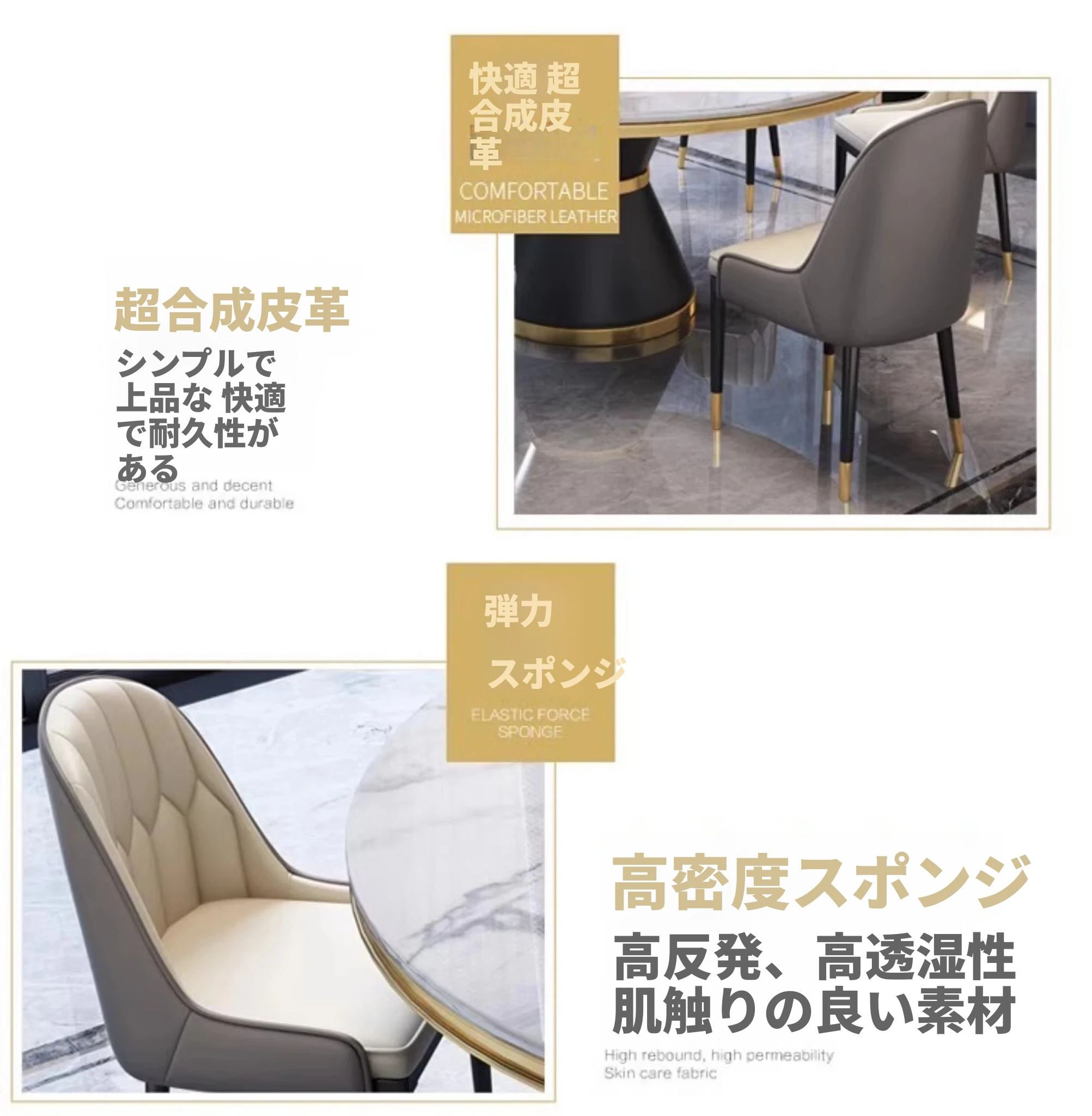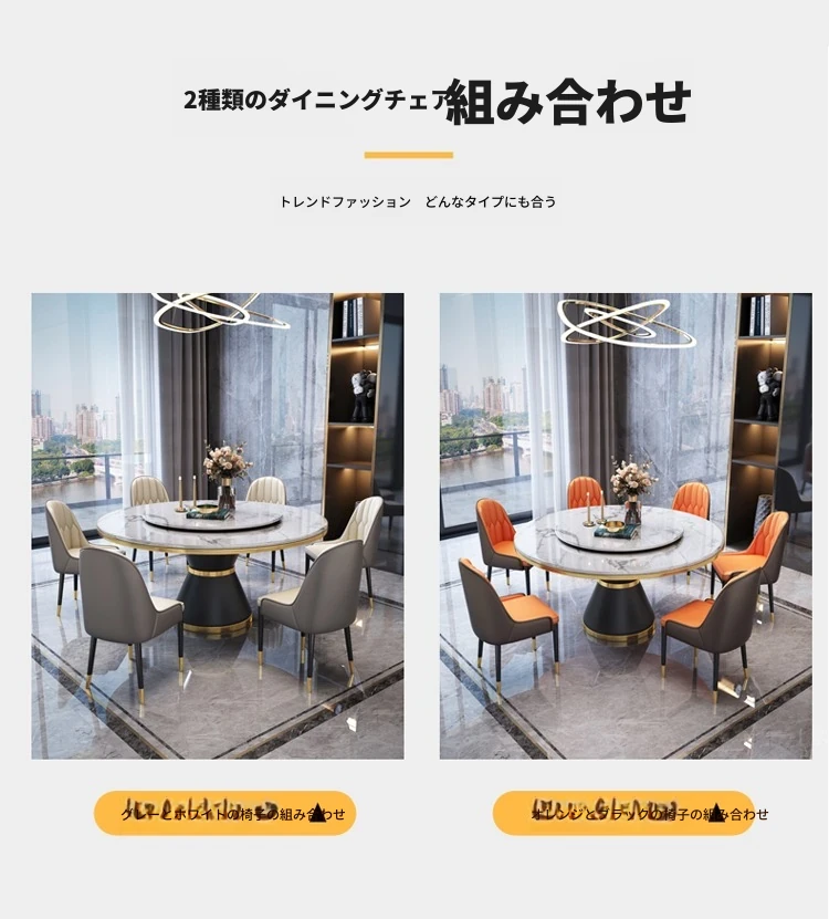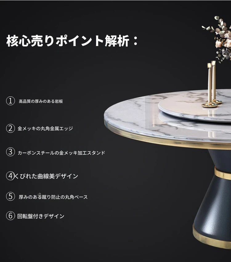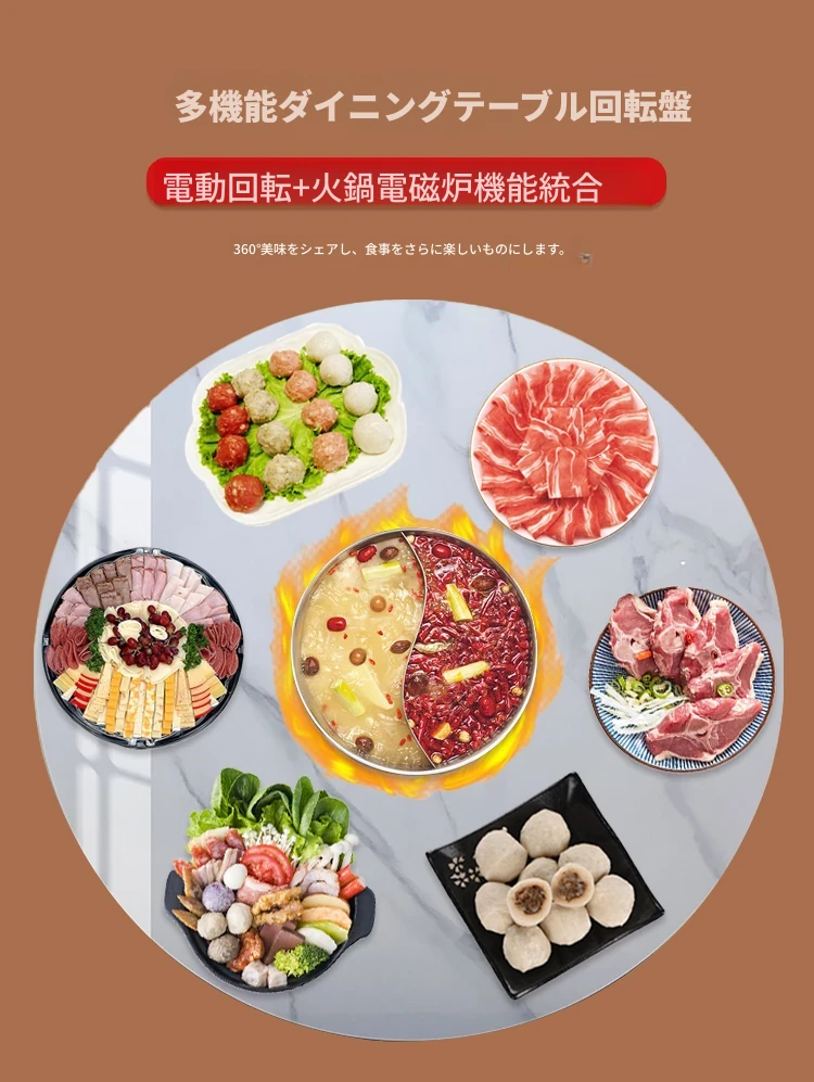 回転式マーブル円形ダイニングテーブル - 小スペース向け、家族や友人との楽しい食事に最適!便利な回転機能付き、スタイリッシュなデザインでお部屋を華やかに彩ります。