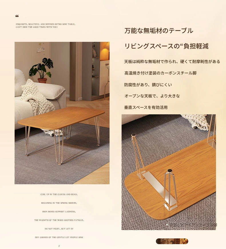 高級感あふれる純正無垢材のリビング用小型テーブル。シンプルな和風デザインで、限られたスペースにもぴったり!おしゃれで機能的な座卓で、くつろぎのひとときを。