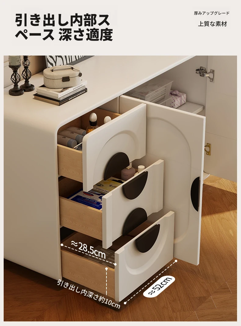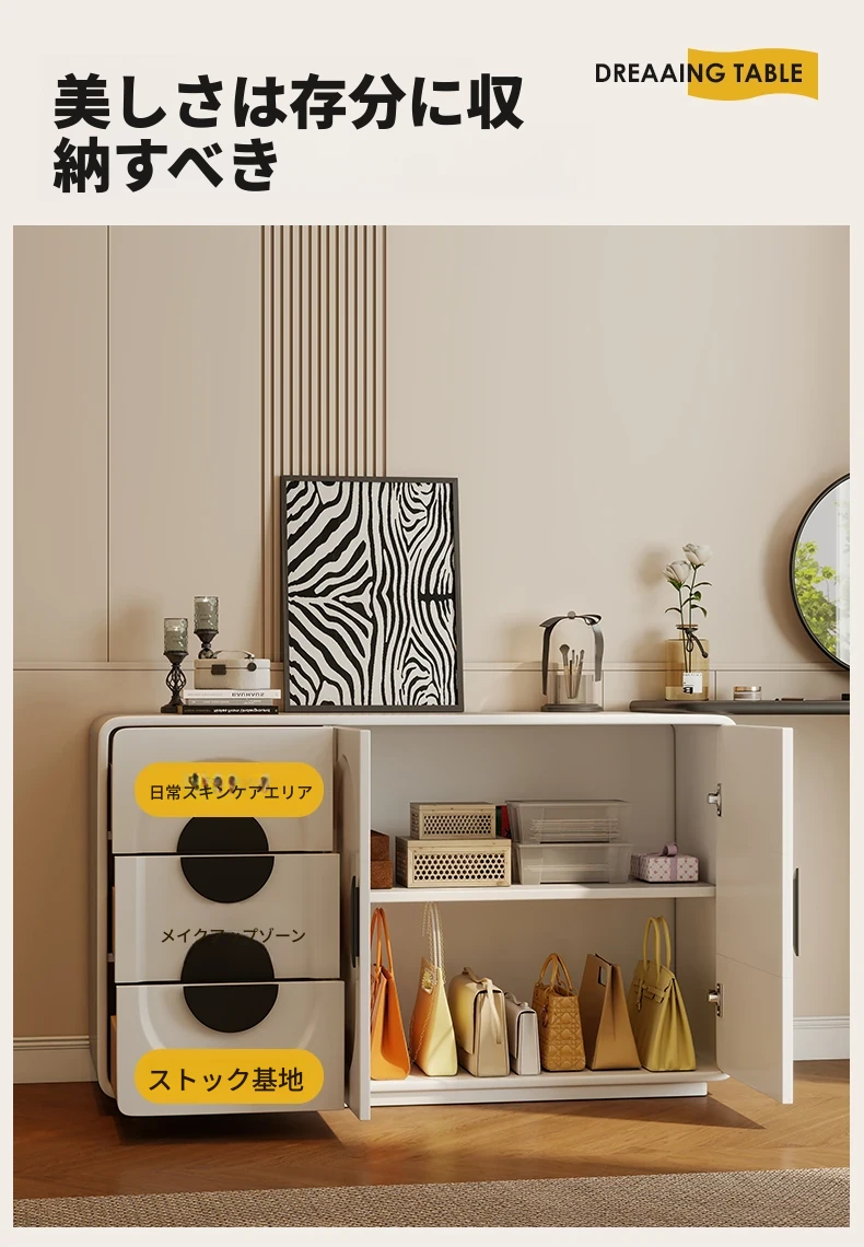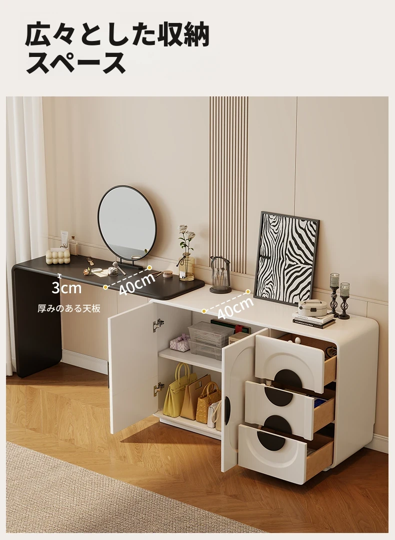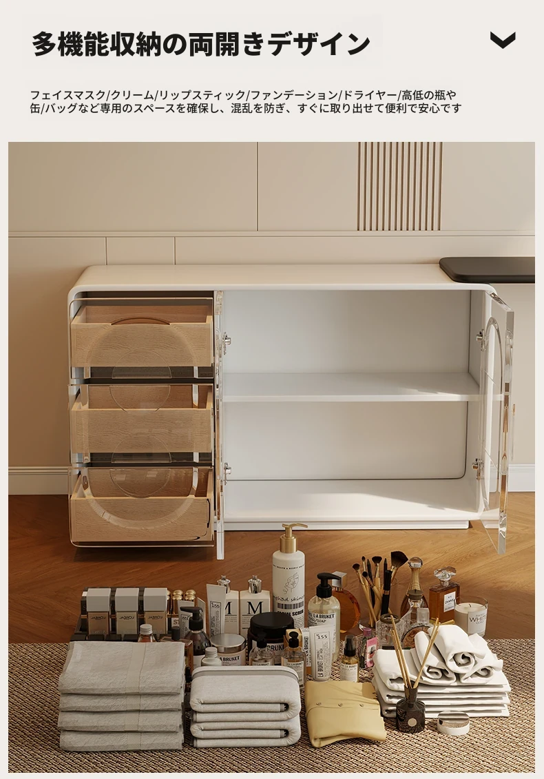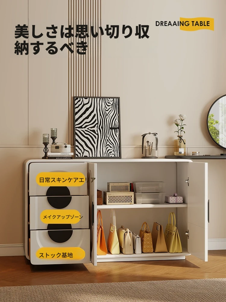 高級感溢れる軽奢主寝室用ドレッサー兼収納キャビネット!モダンでシンプルなデザインのベッドサイドテーブル、新作化粧台と引き出し付きでお部屋をスタイリッシュに演出します。