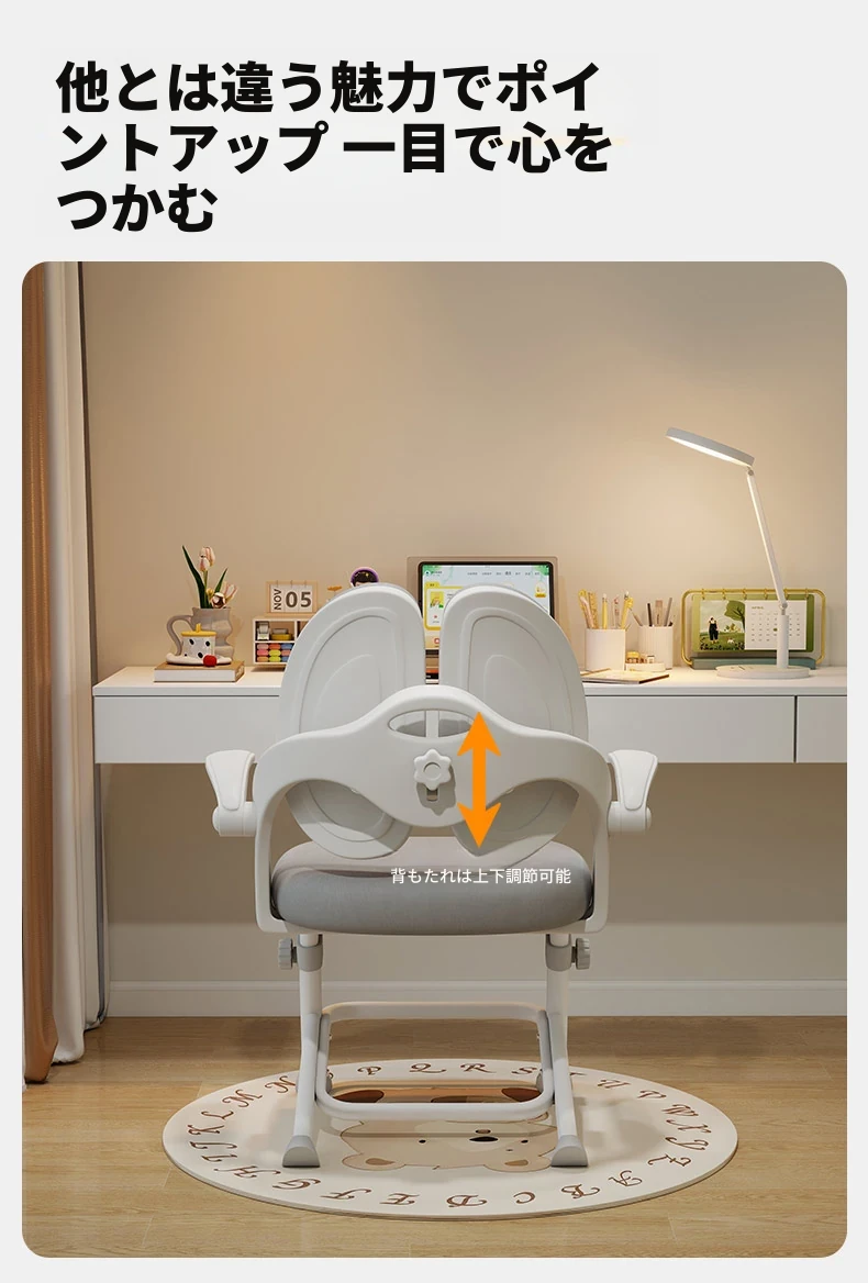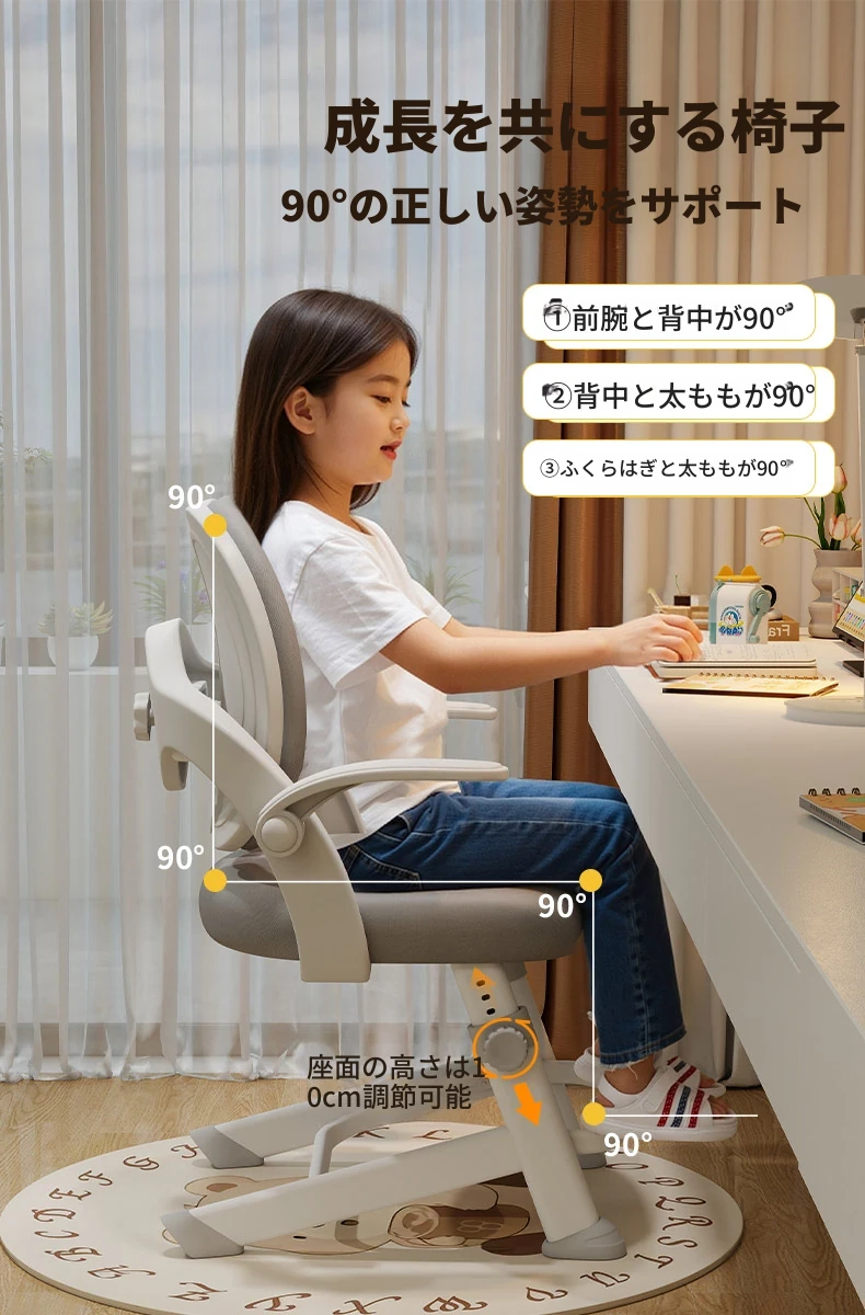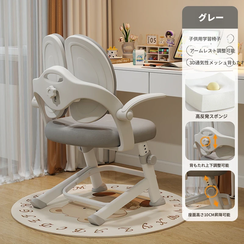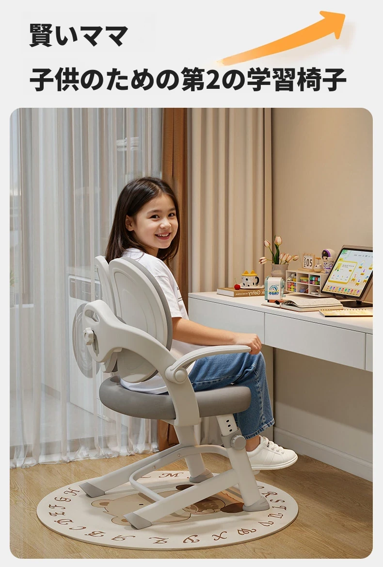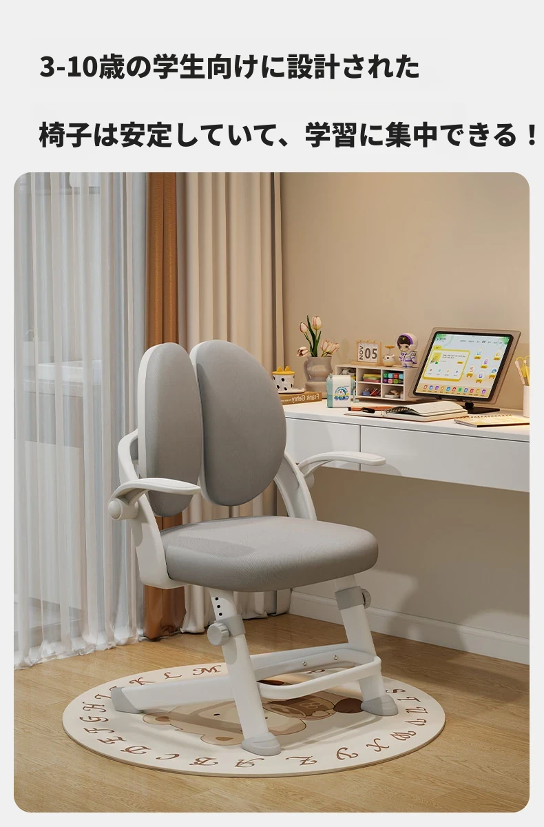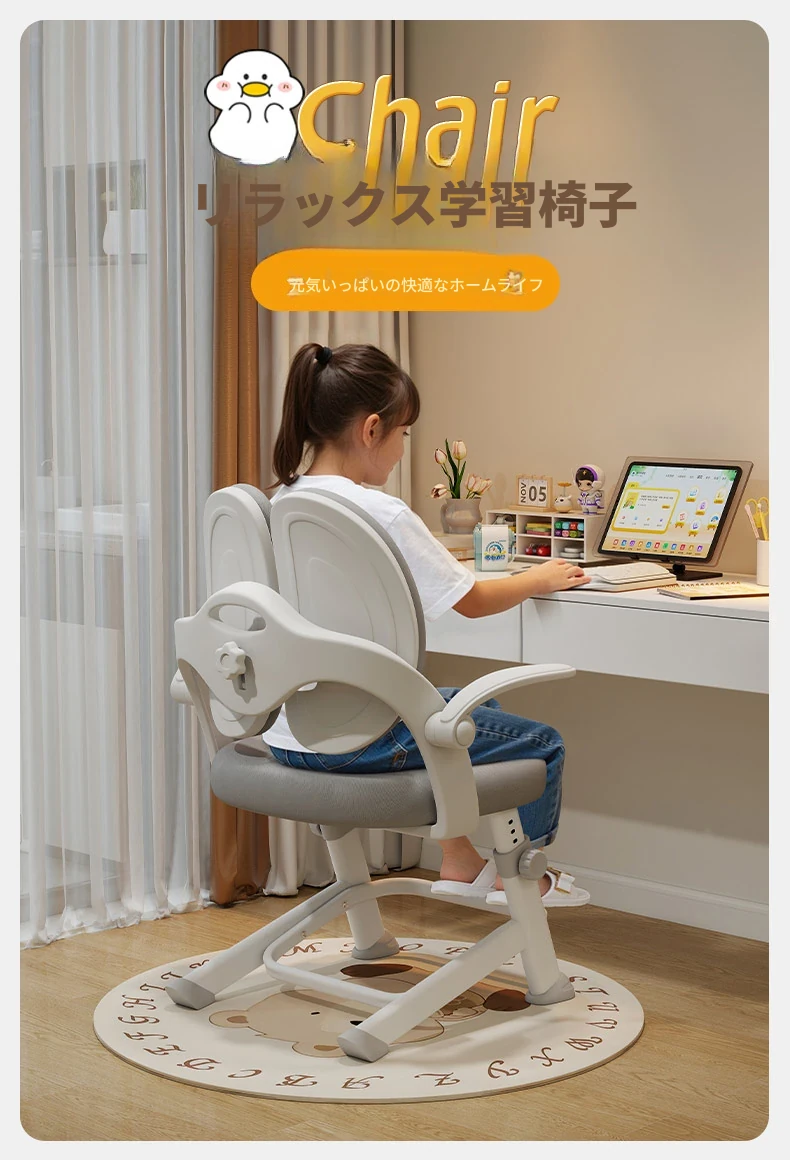 子供専用学習椅子 - 正しい姿勢をサポートする昇降式デスクチェア!小学生の快適な勉強を実現する、家庭用の書きやすさ抜群のチェアです。