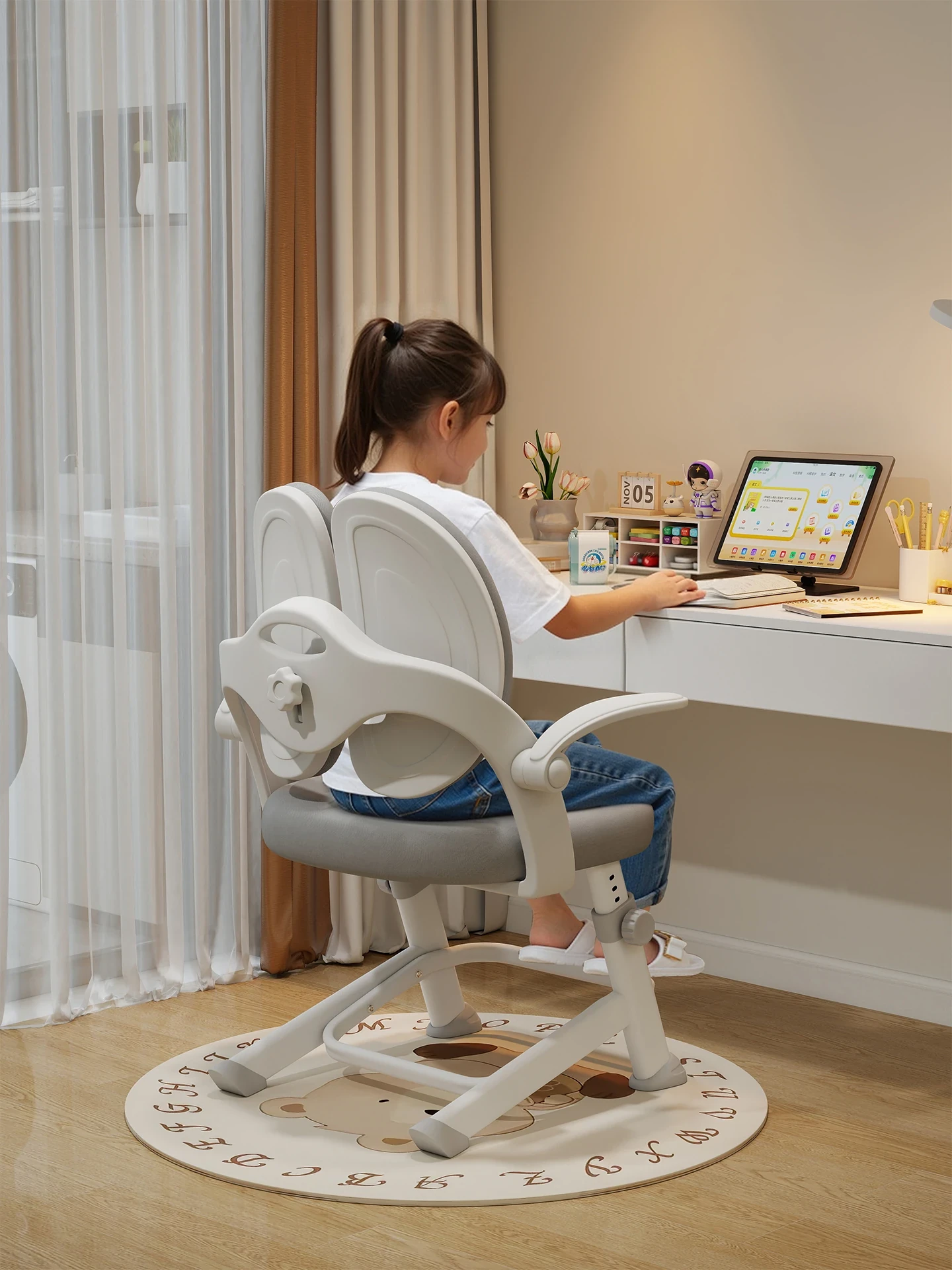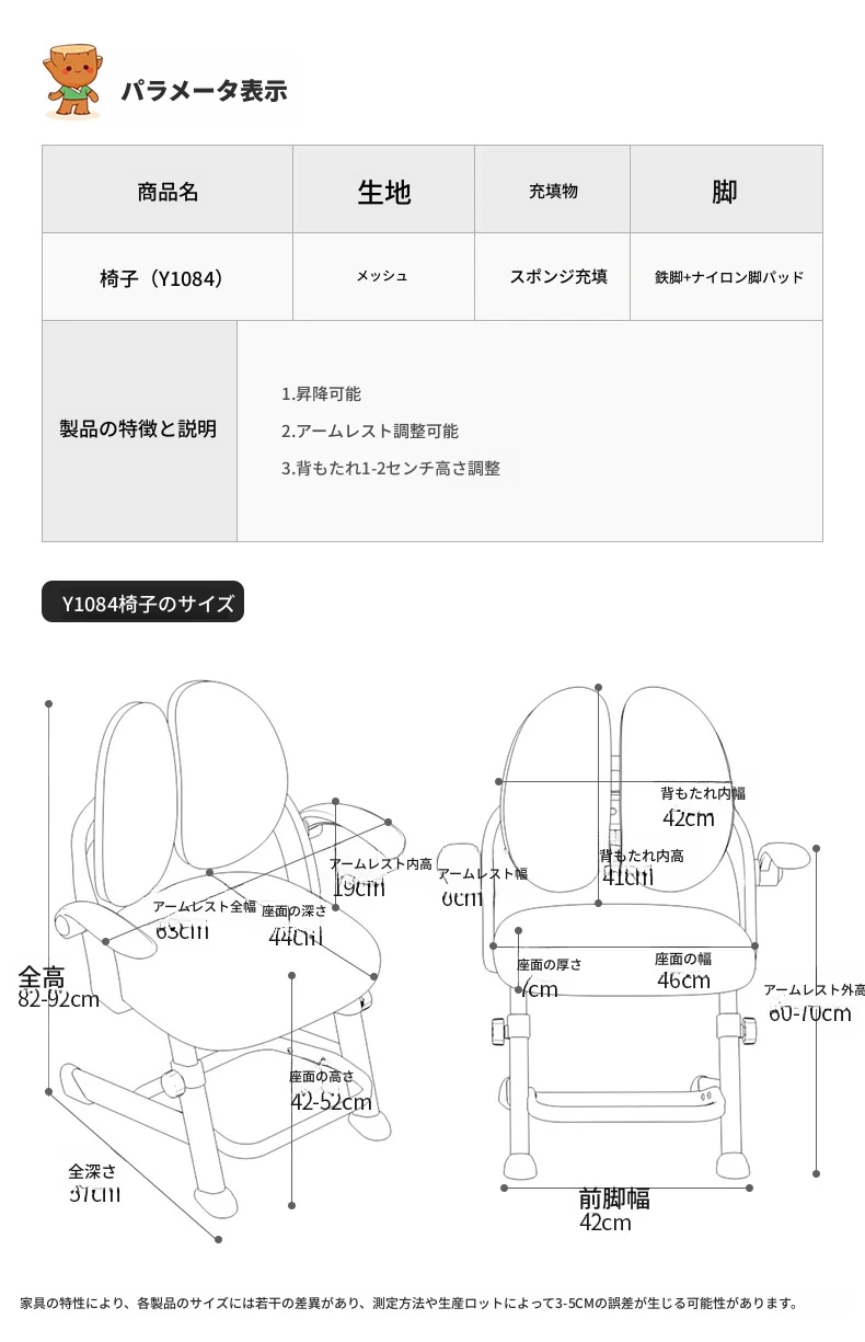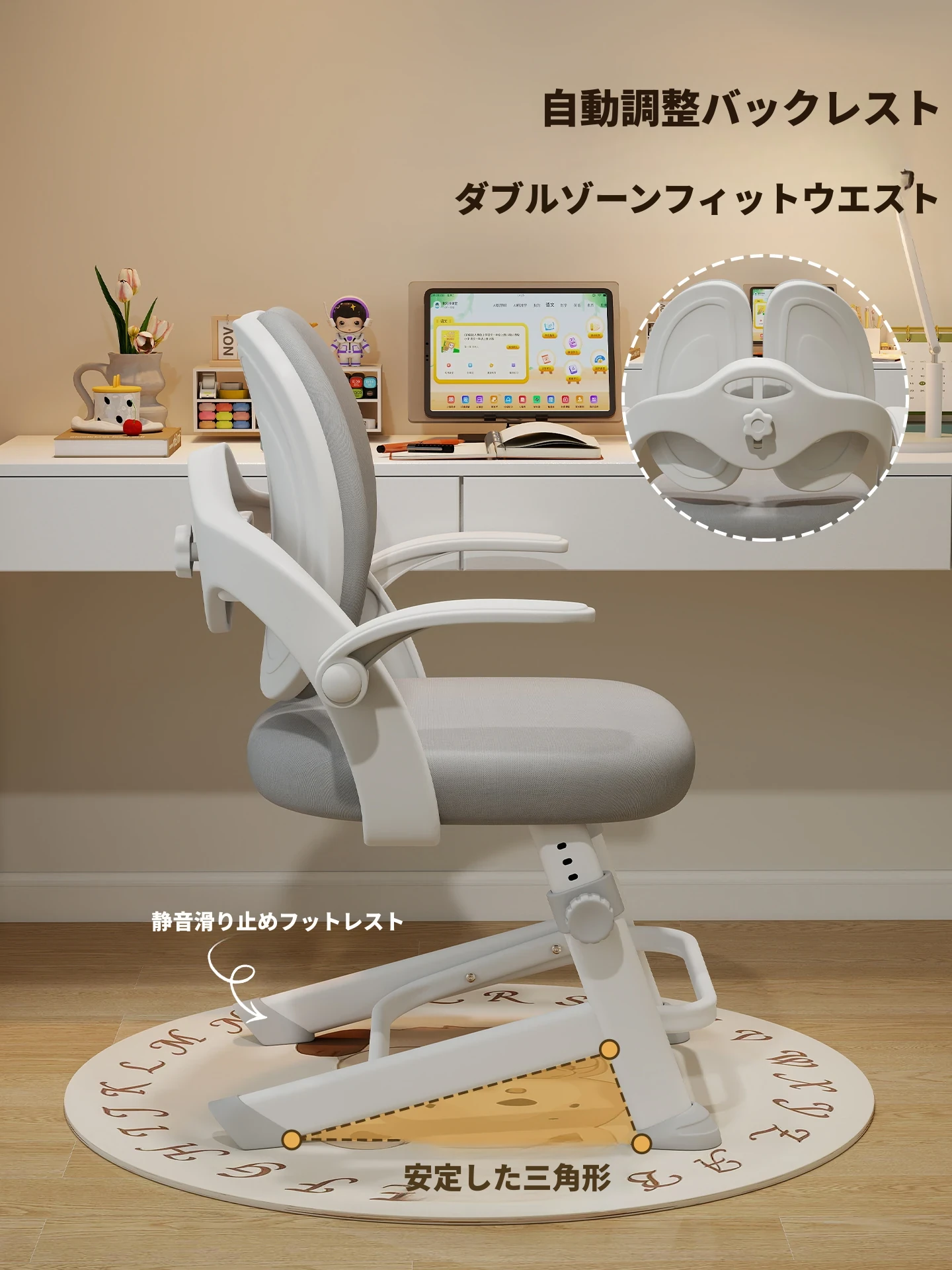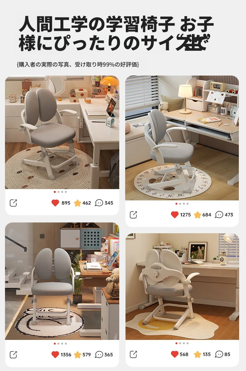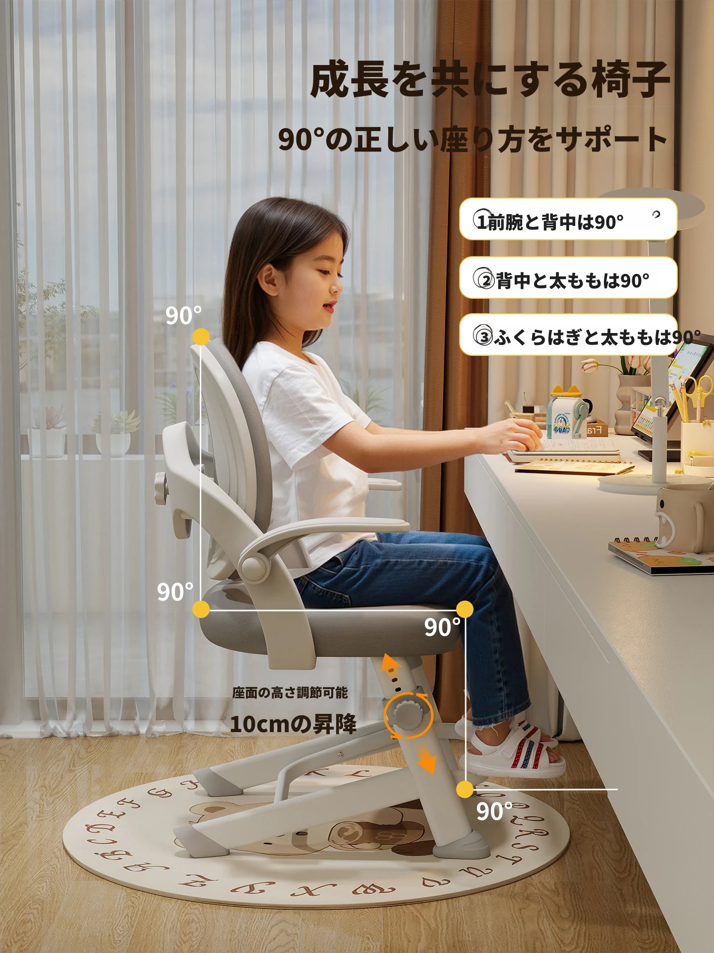 子供専用学習椅子 - 正しい姿勢をサポートする昇降式デスクチェア!小学生の快適な勉強を実現する、家庭用の書きやすさ抜群のチェアです。