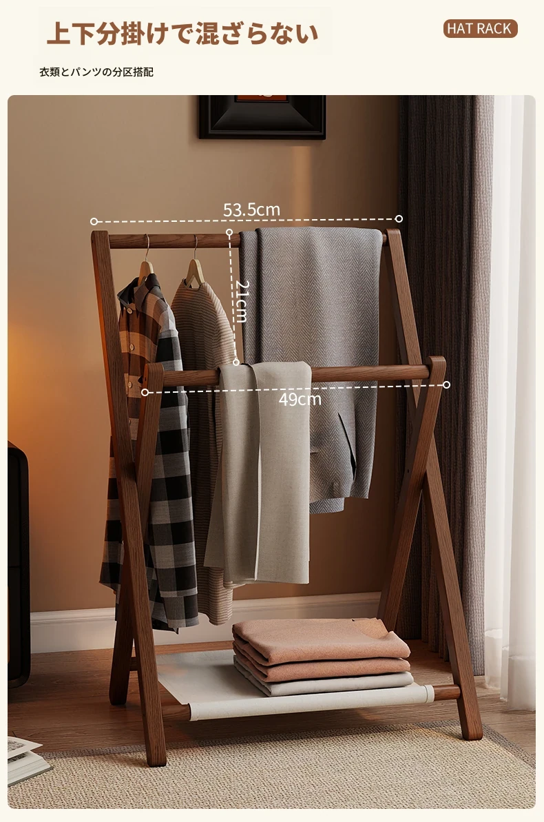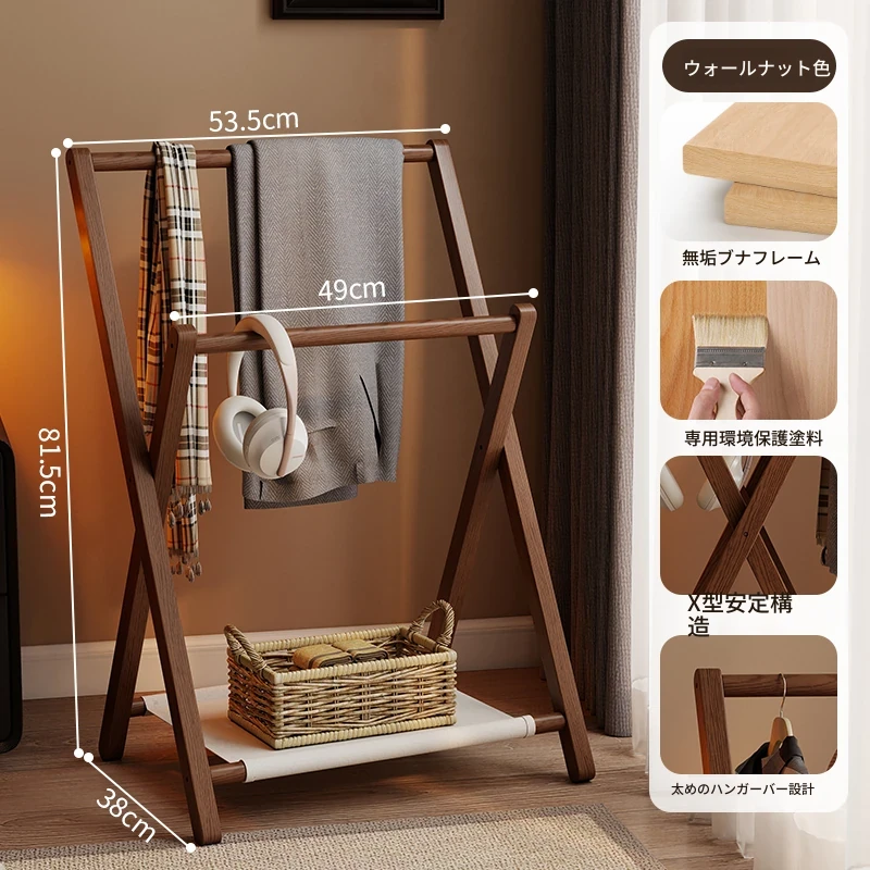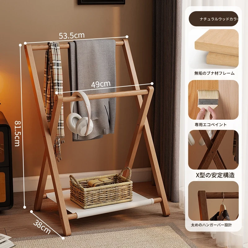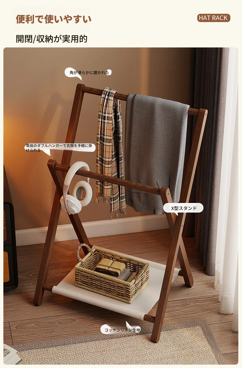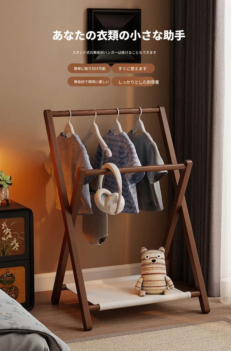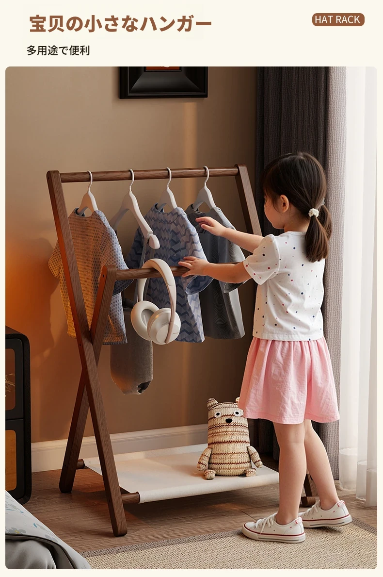 子供用折りたたみ式木製ハンガーラック - 小さなお部屋にぴったりなベビーハンガー!おしゃれで実用的、幼稚園やお家の収納に最適。お子様のお洋服をスッキリ収納して、楽しいお部屋作りをサポートします!