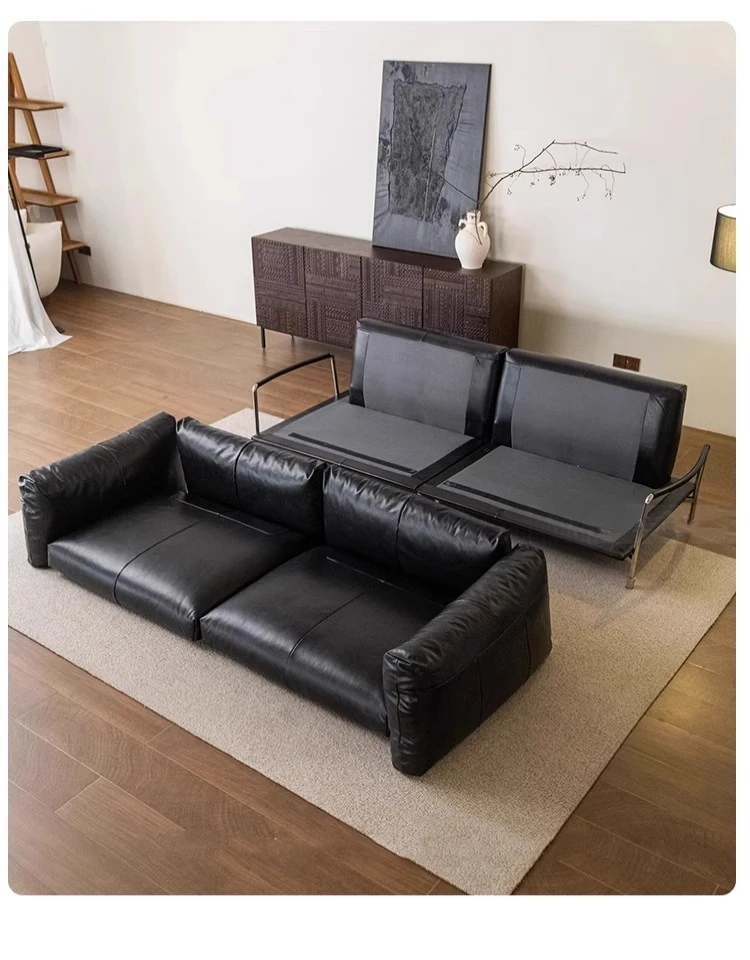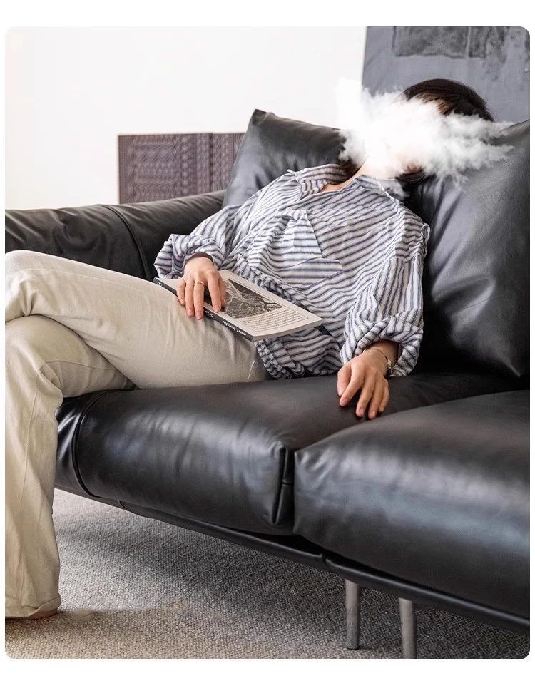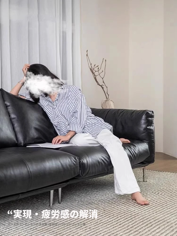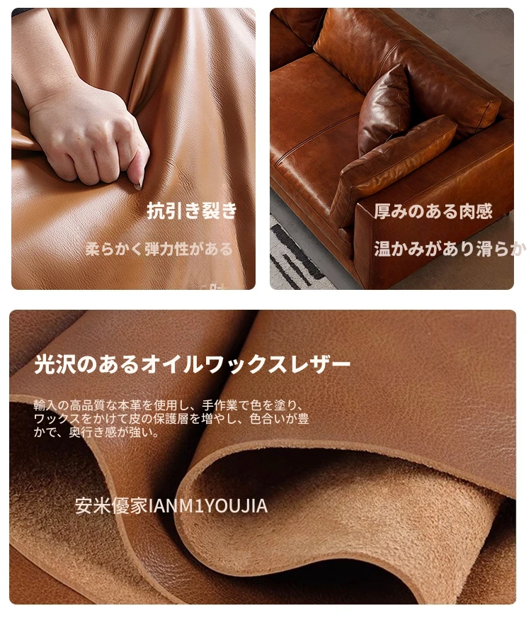 フランスのレトロスタイル バウハウスオイルワックス真皮ソファ 中古風で小型リビングルームにも最適なハマーソファ!エレガントなデザインで、居心地の良い空間を演出します。