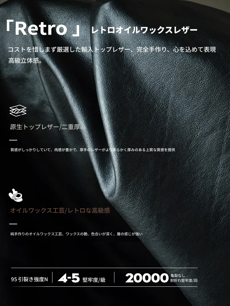 A+グレード【レトロ光沢オイルワックスキャットグラブレザー】無臭 耐傷耐磨