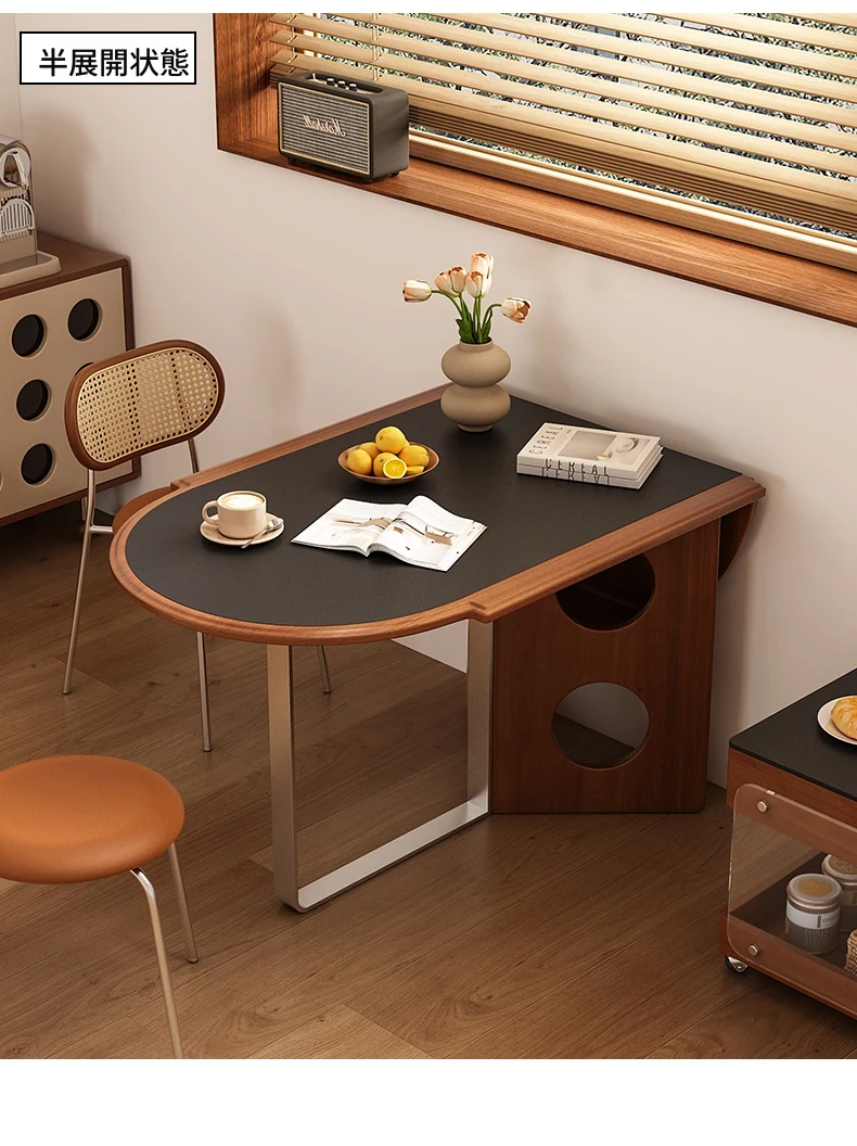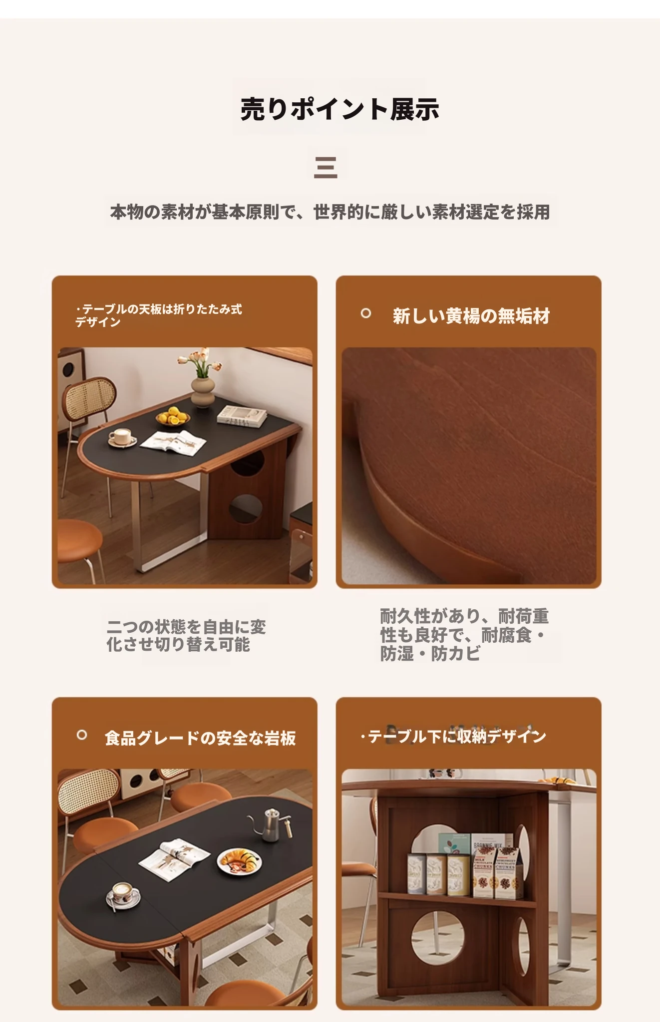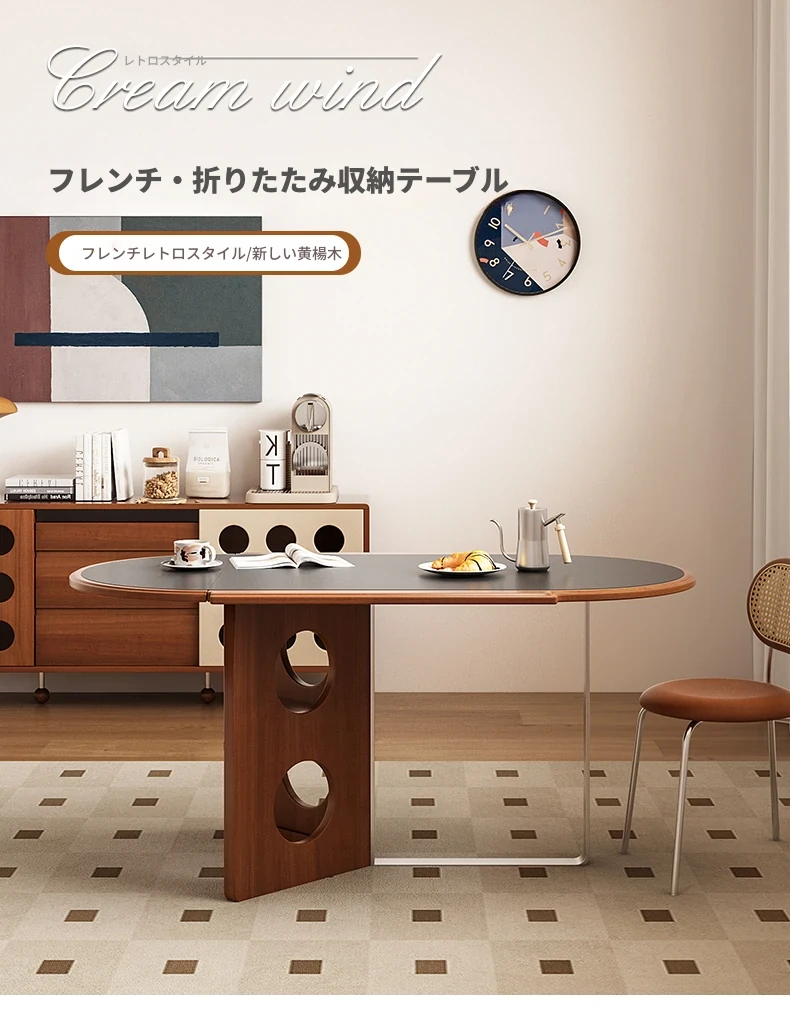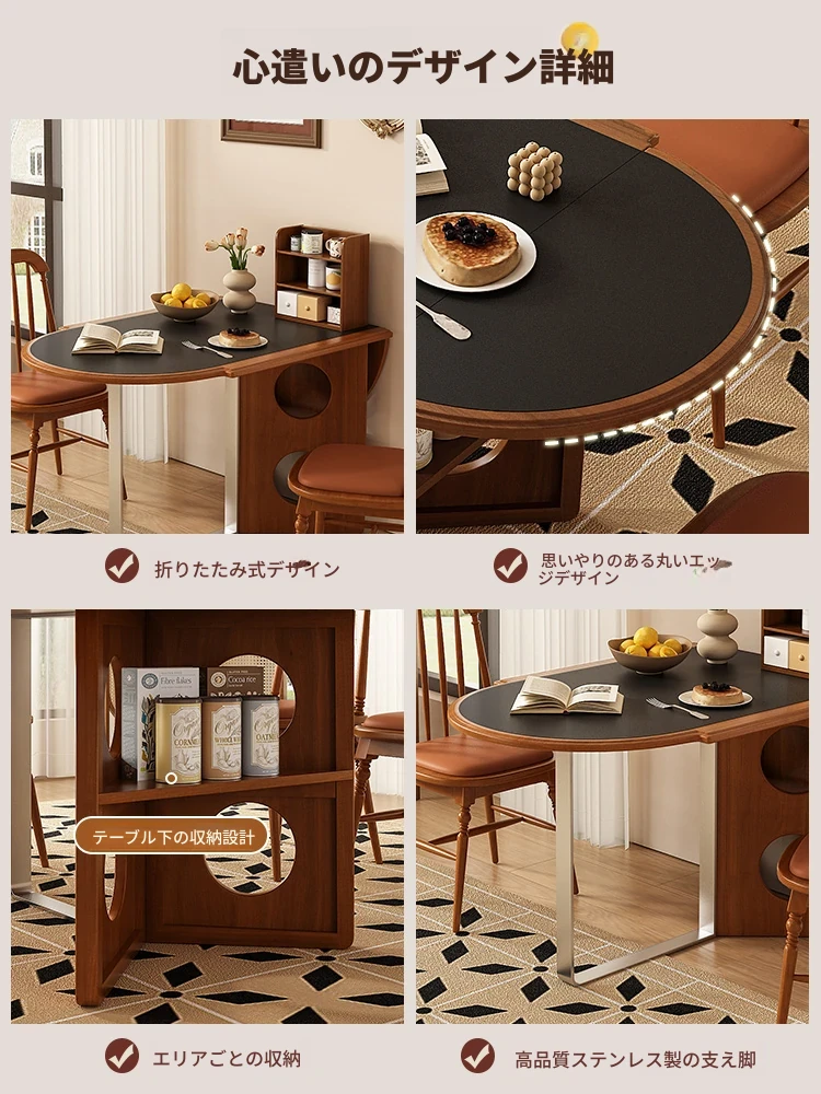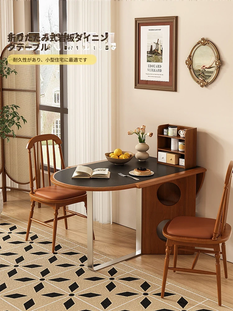 フレンチビンテージ折りたたみ岩板テーブル 小型ブラックテーブル 中古伸縮式無垢材ダイニングテーブルセット おしゃれでコンパクトな空間にぴったり!