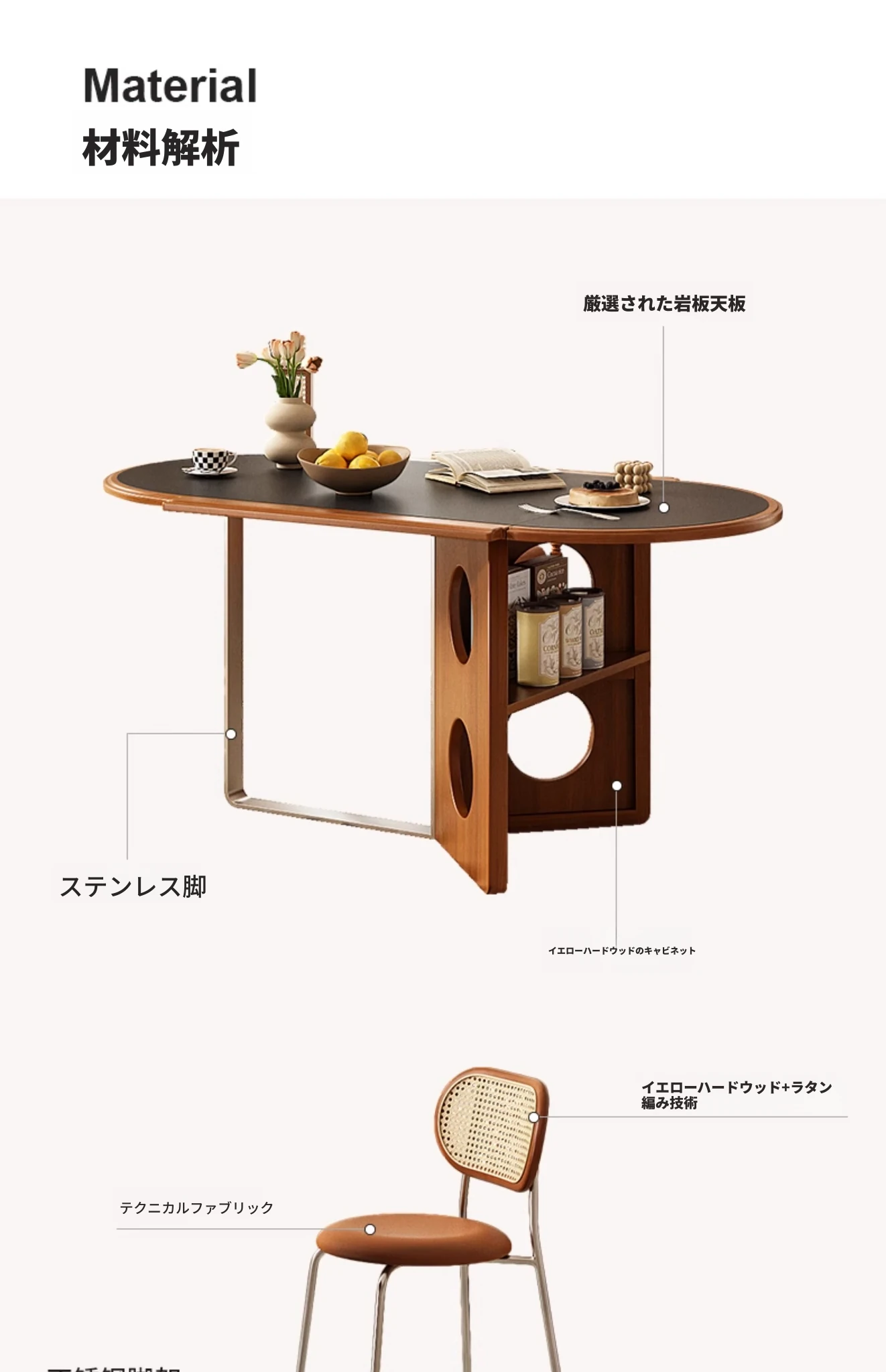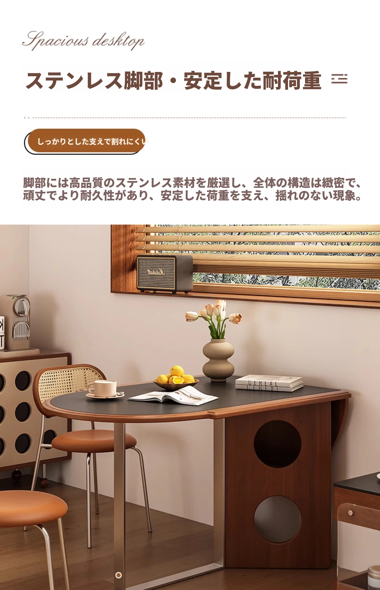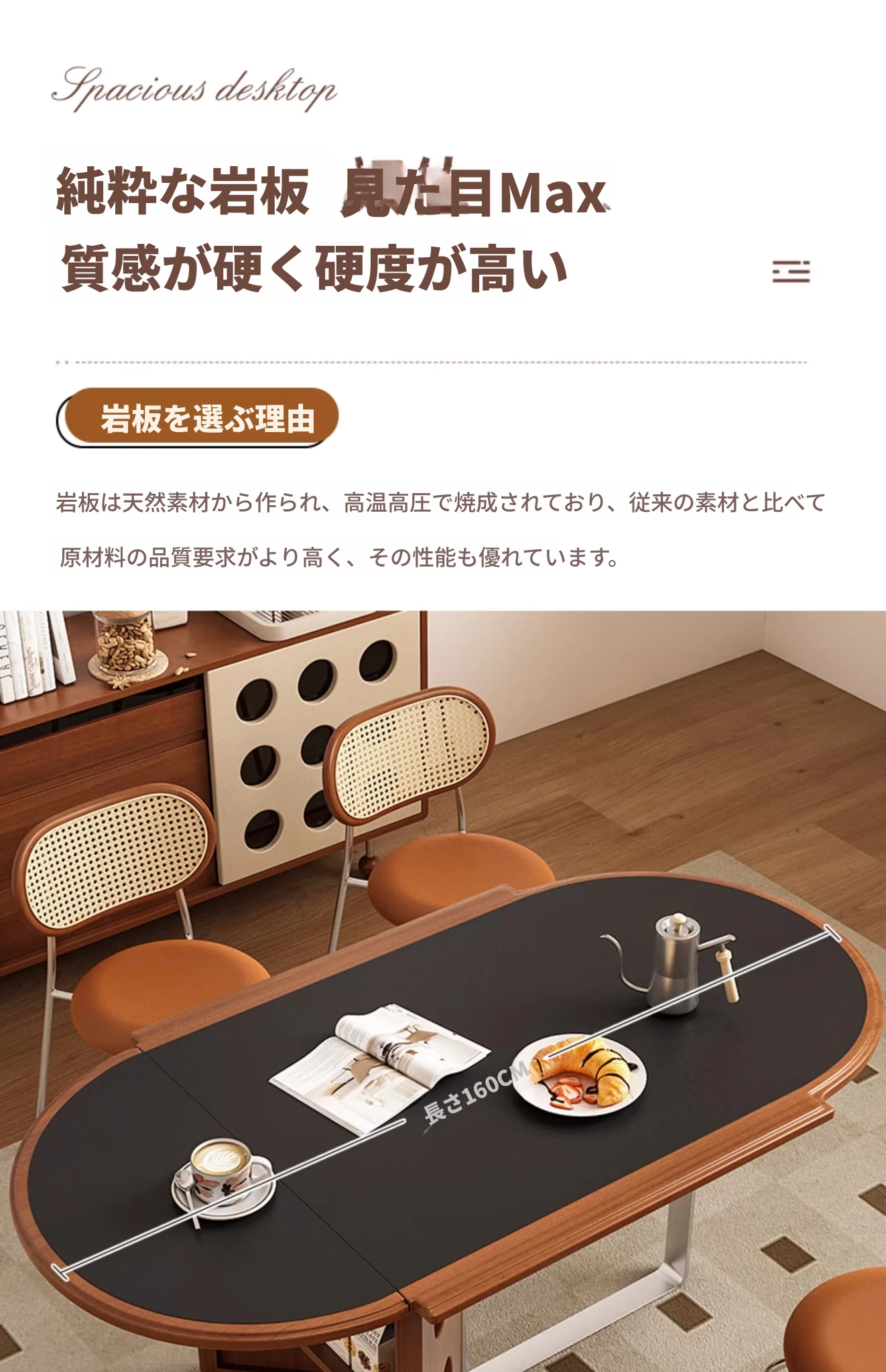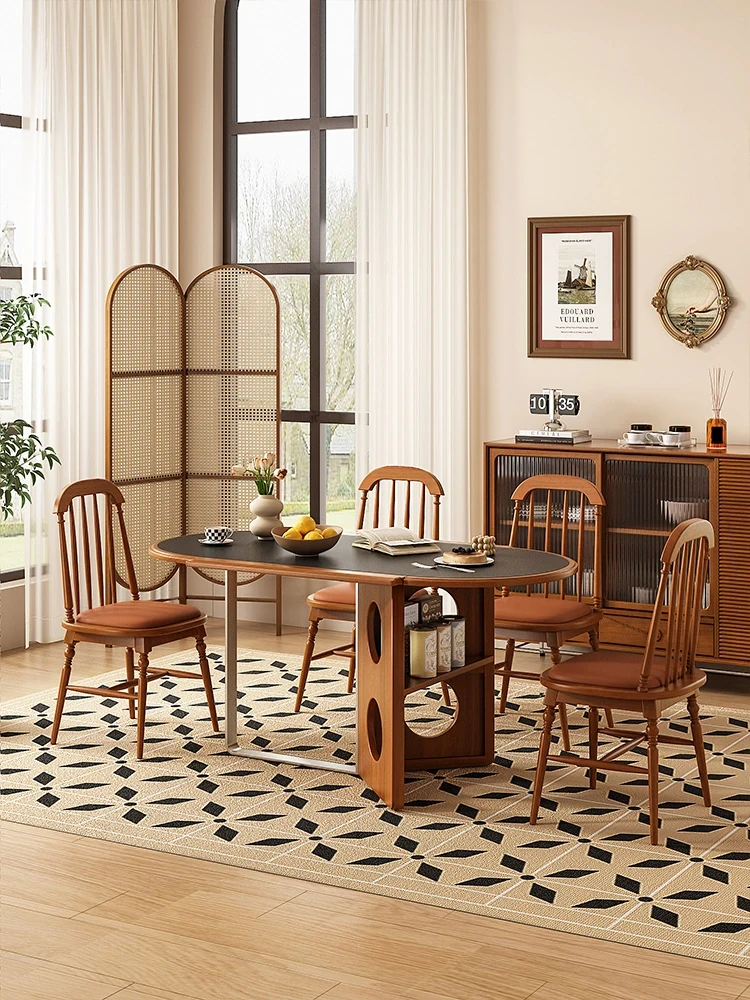 フレンチビンテージ折りたたみ岩板テーブル 小型ブラックテーブル 中古伸縮式無垢材ダイニングテーブルセット おしゃれでコンパクトな空間にぴったり!