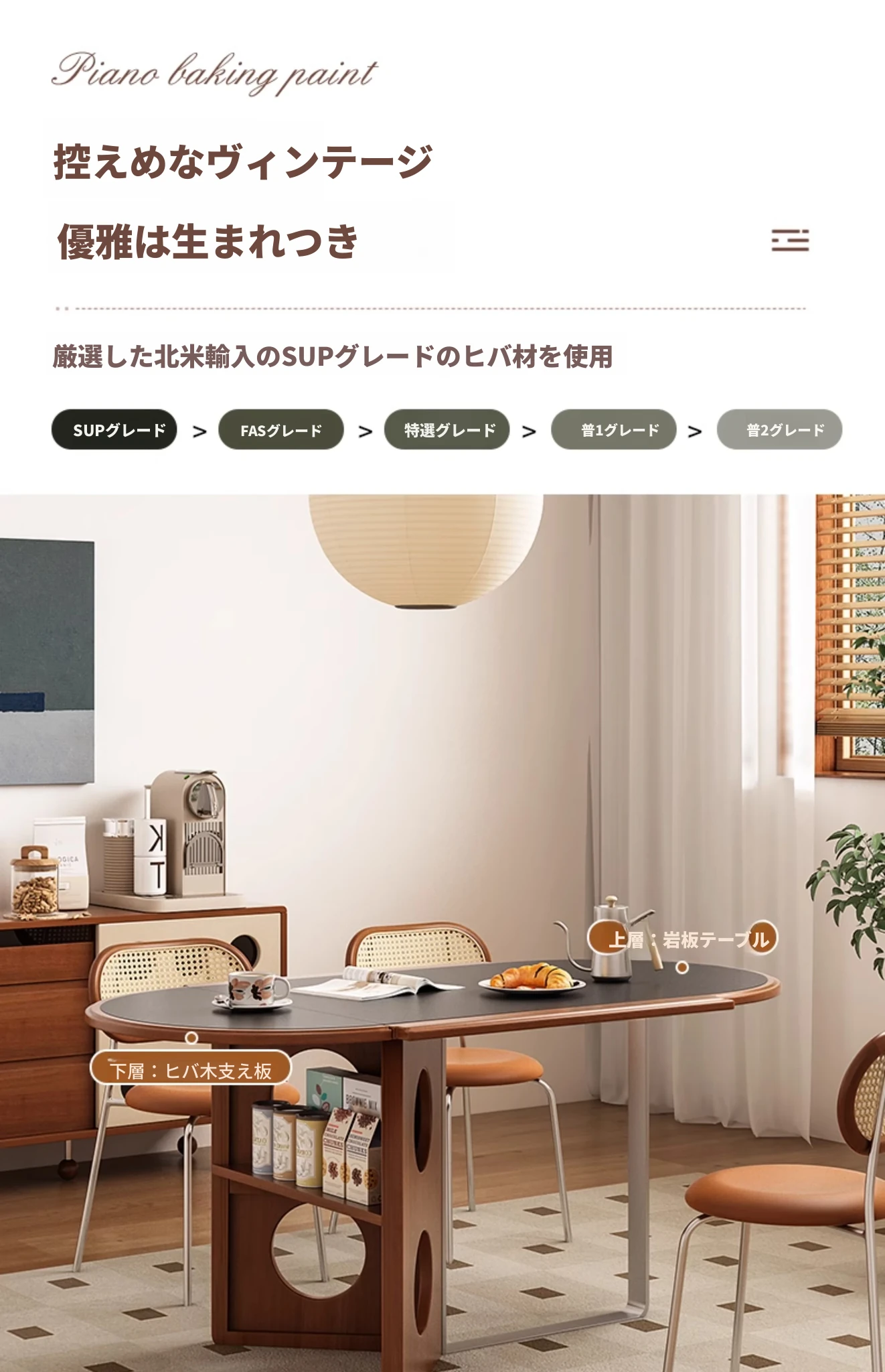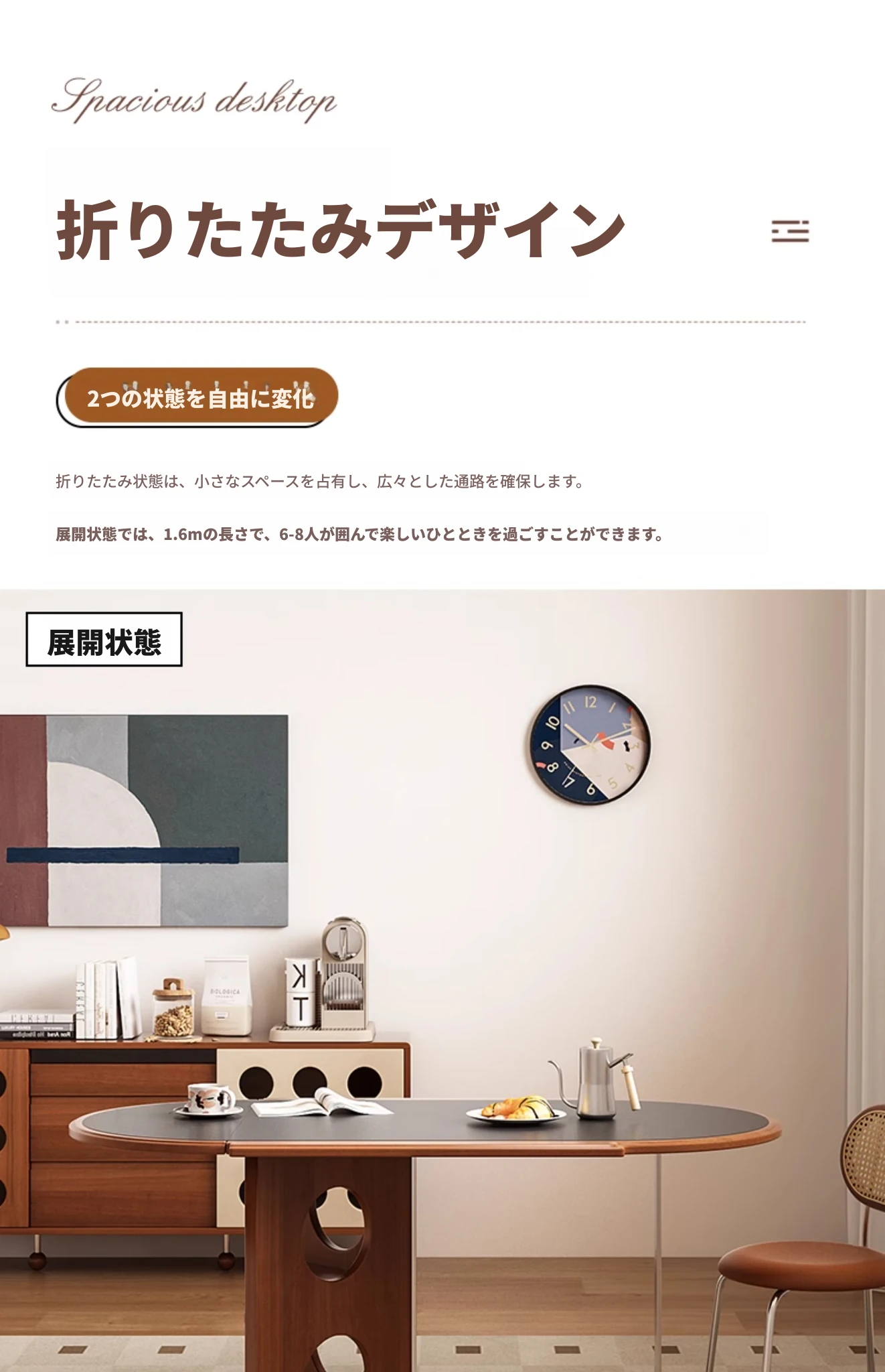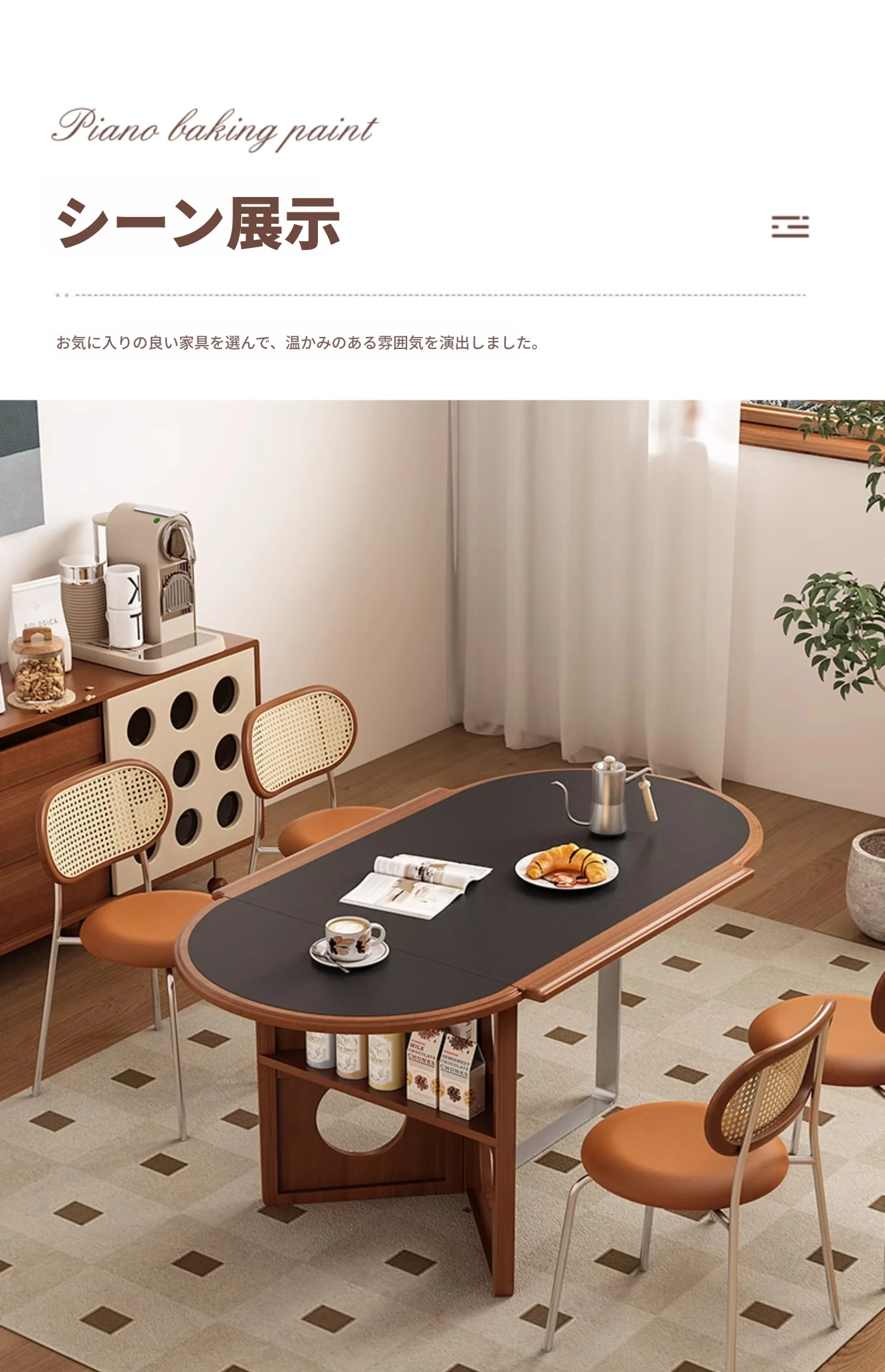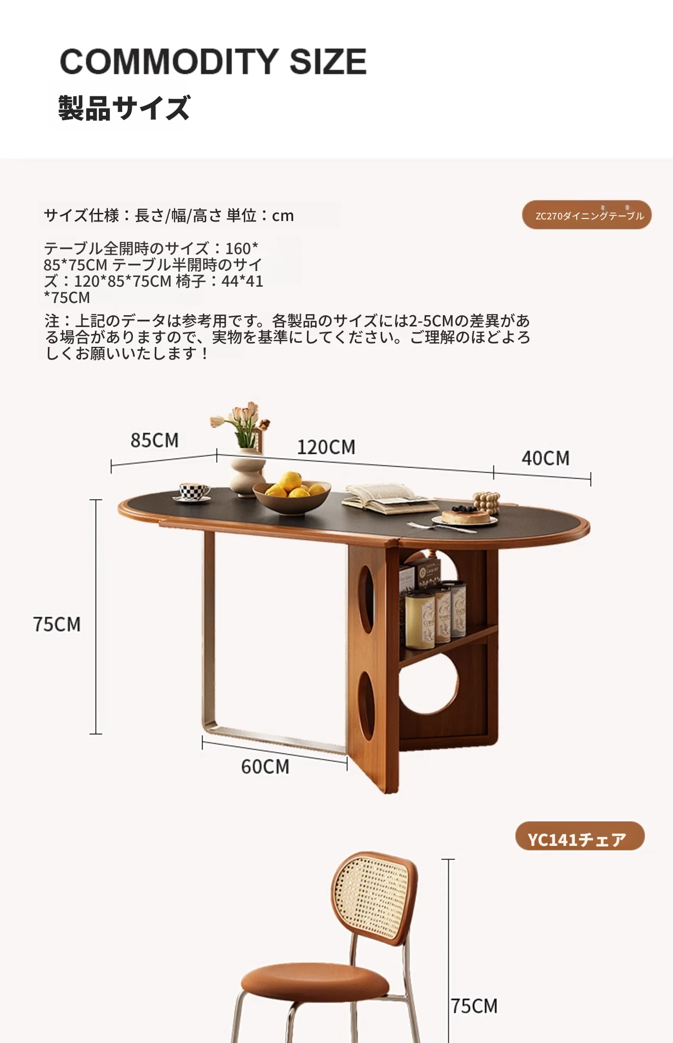 フレンチビンテージ折りたたみ岩板テーブル 小型ブラックテーブル 中古伸縮式無垢材ダイニングテーブルセット おしゃれでコンパクトな空間にぴったり!