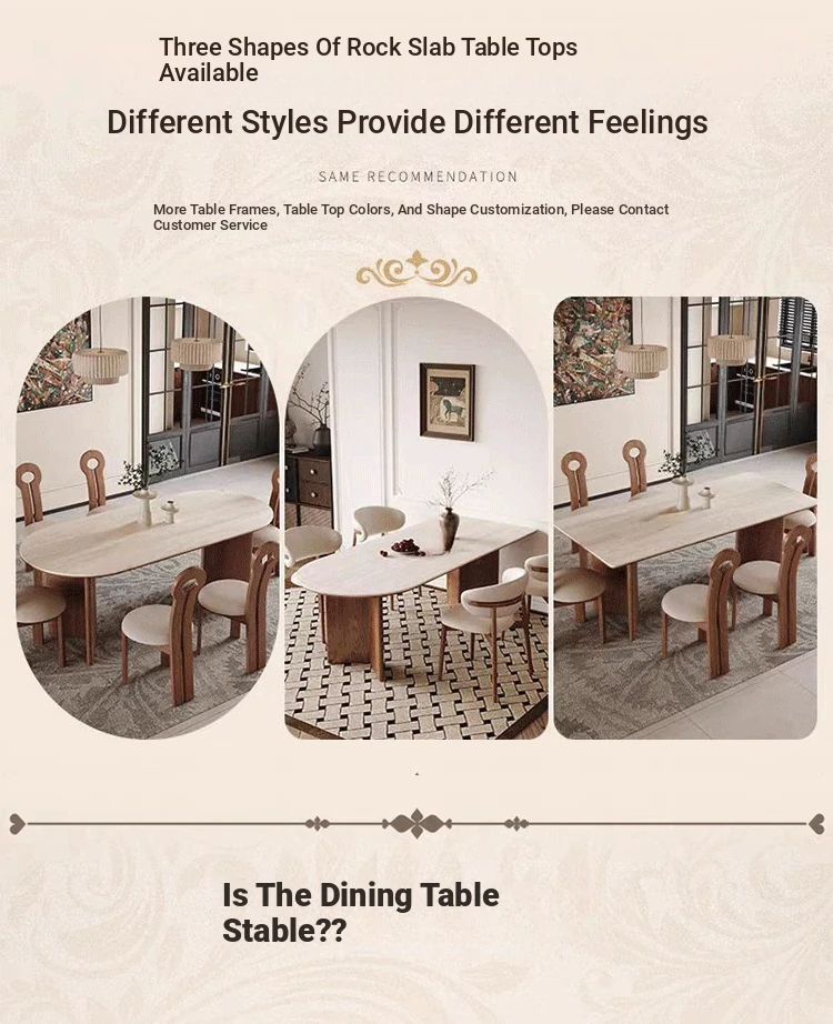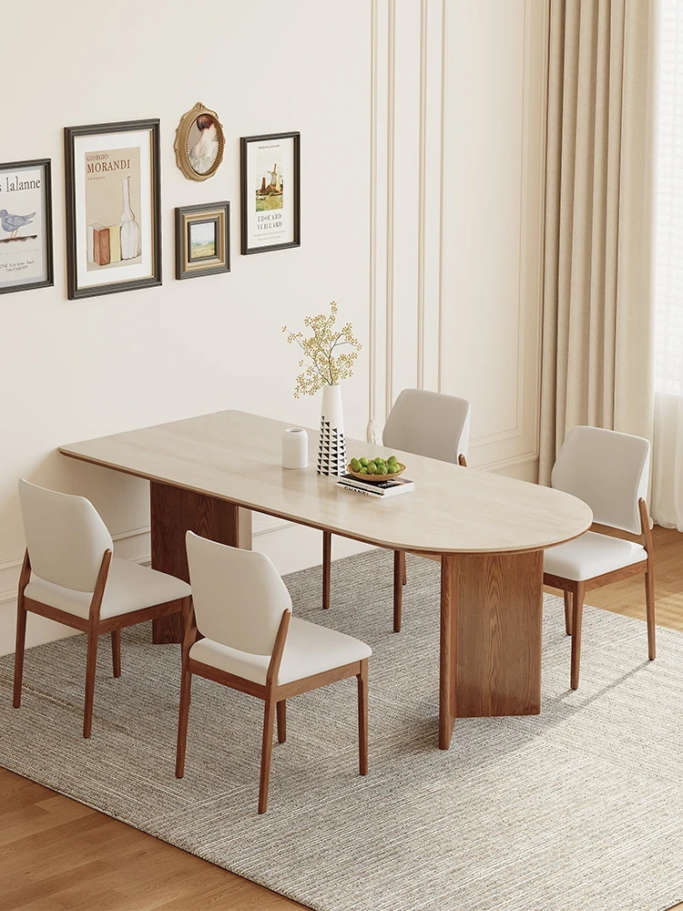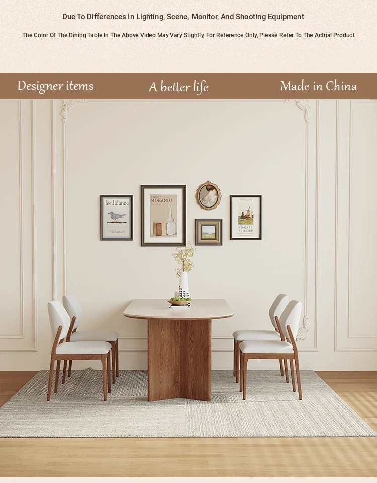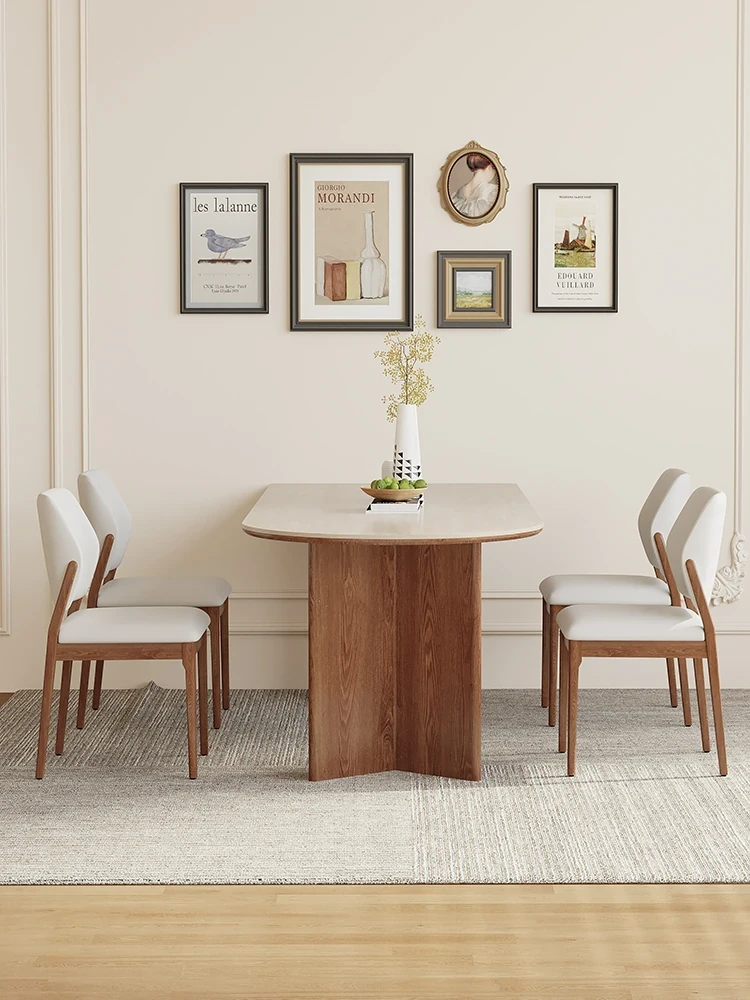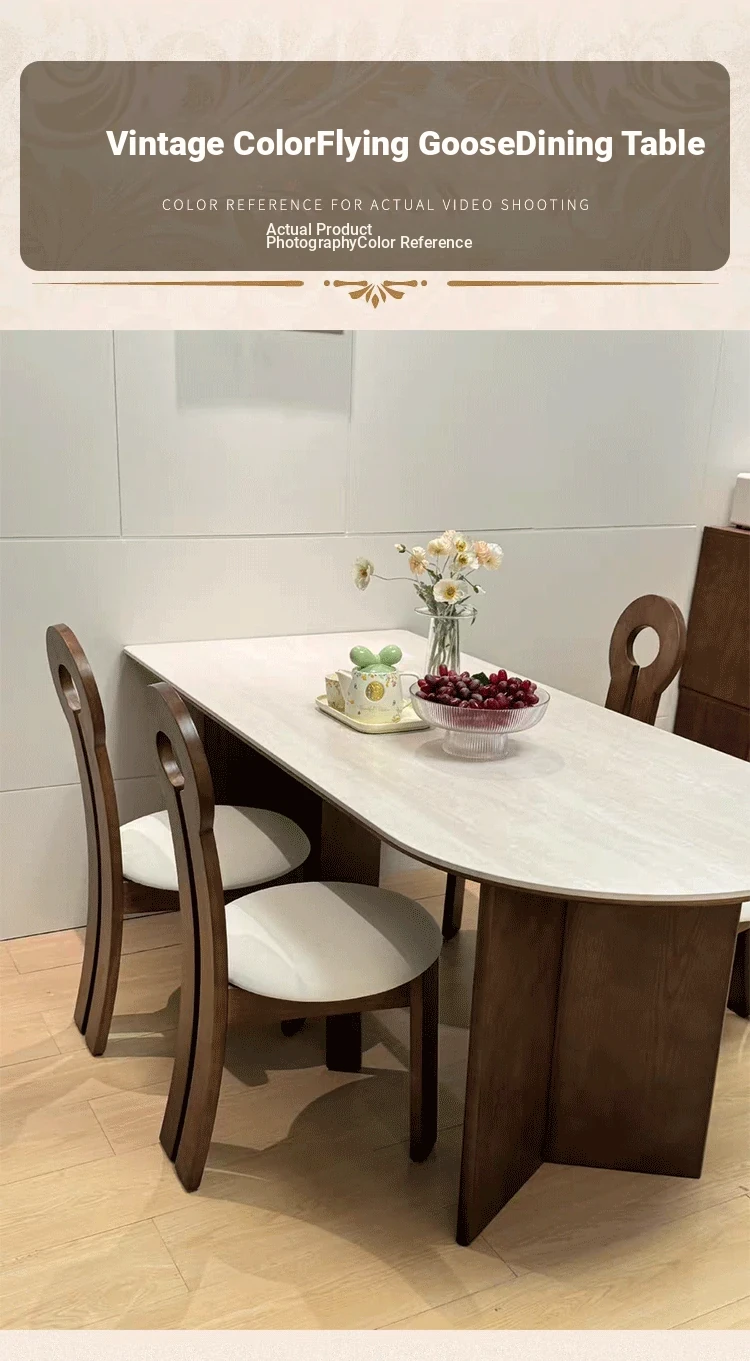 French Vintage Solid Wood Dining Table with Creamy Retro Style - Elegant and High-Quality Dining Experience for Your Home, Perfect for Peninsula Dining Spaces