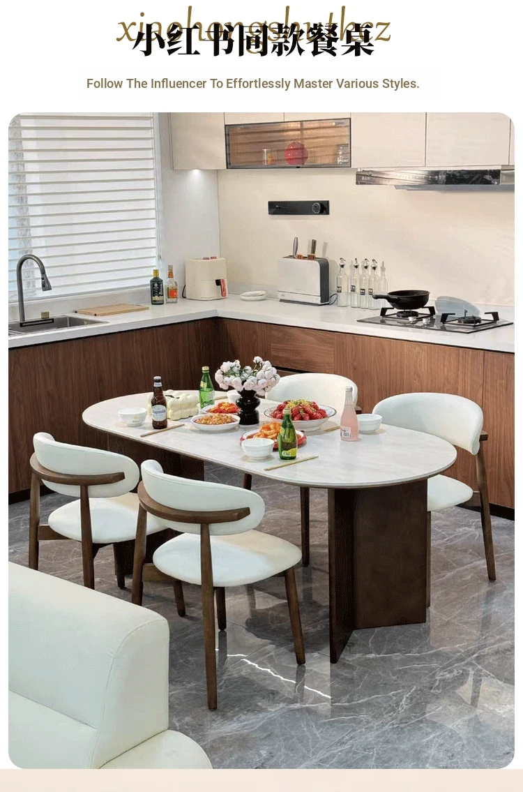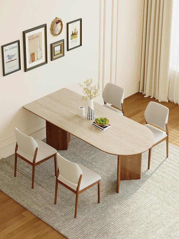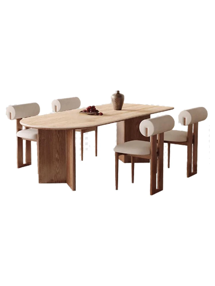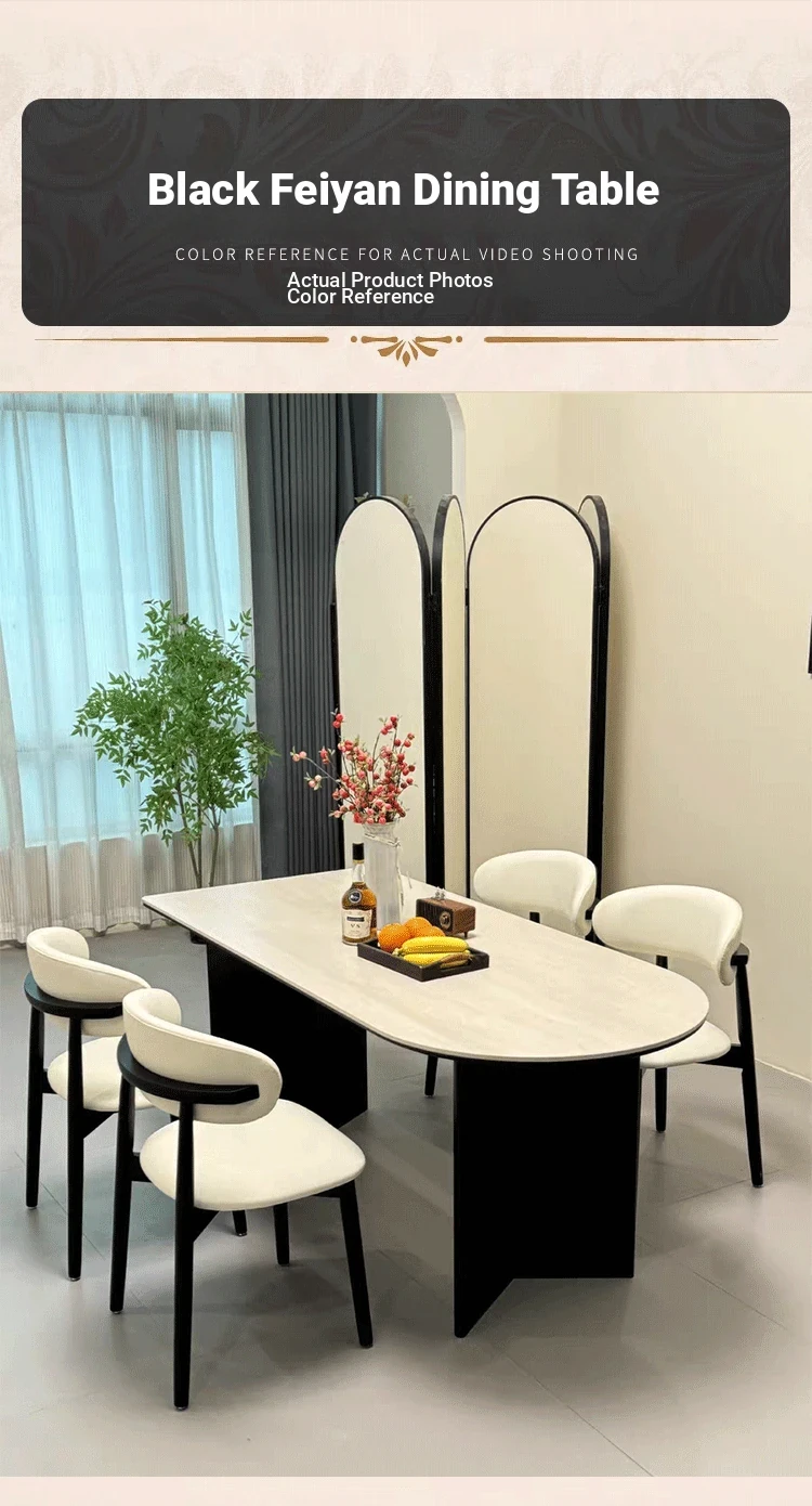 French Vintage Solid Wood Dining Table with Creamy Retro Style - Elegant and High-Quality Dining Experience for Your Home, Perfect for Peninsula Dining Spaces