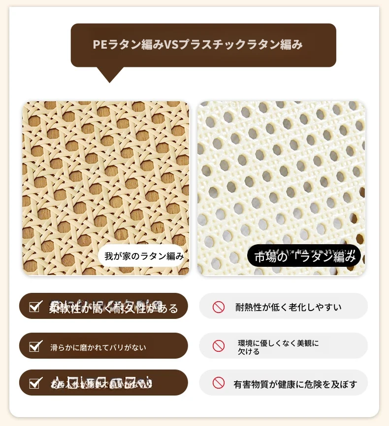ウォールナット色【無垢ラバーウッド+PE編み藤】