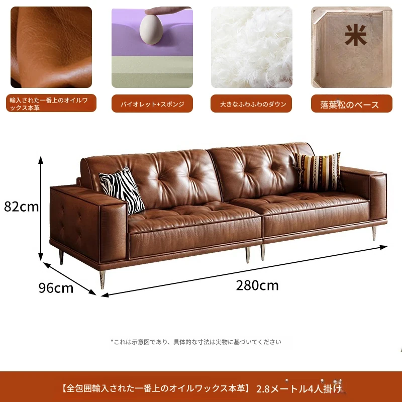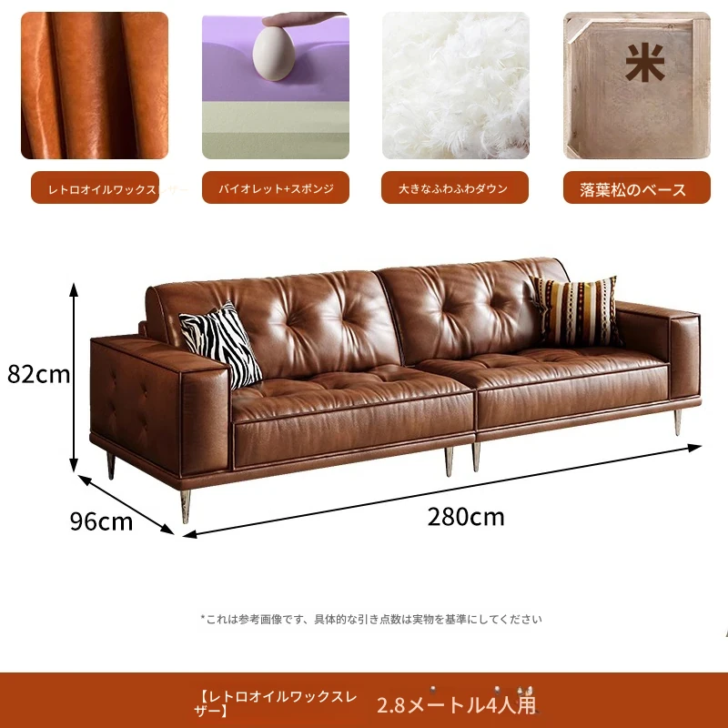 【2.8m四人位】レトロオイルワックスレザー+輸入落葉松+ダウンシルク綿