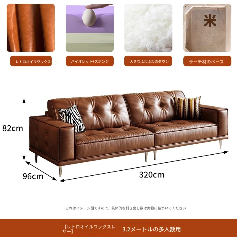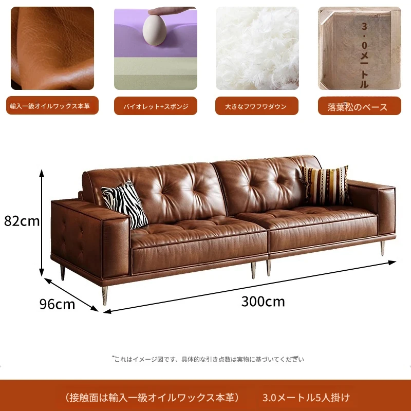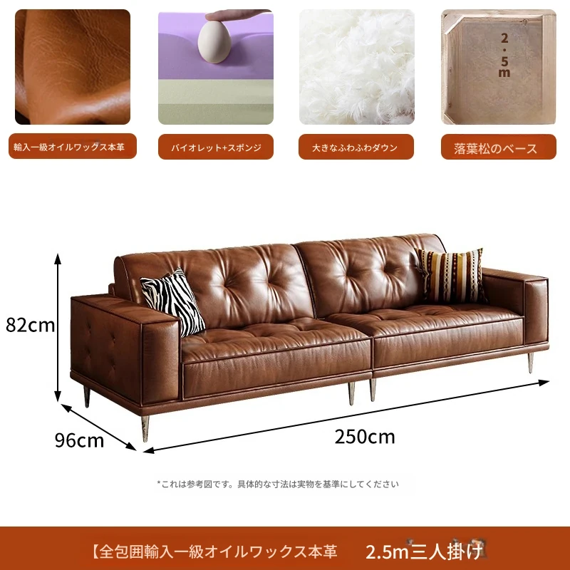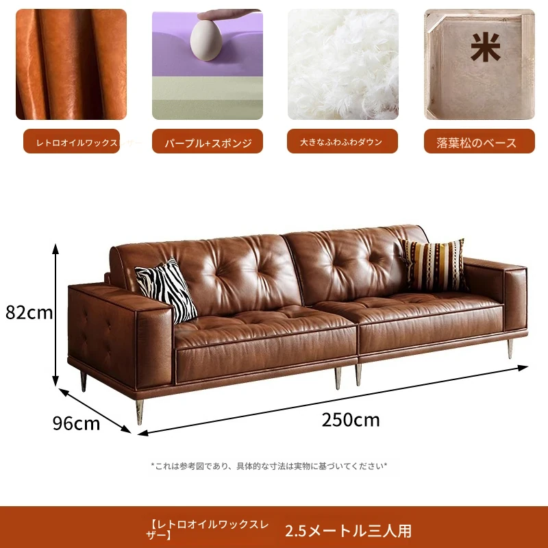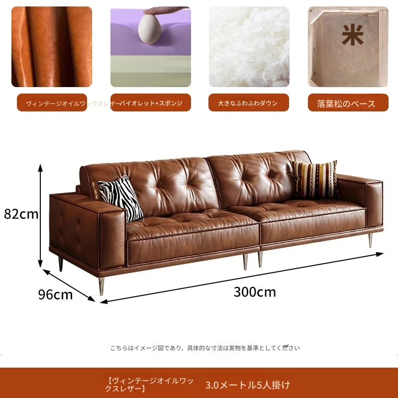 【2.5m三人位】レトロオイルワックスレザー+輸入落葉松+ダウンシルク綿