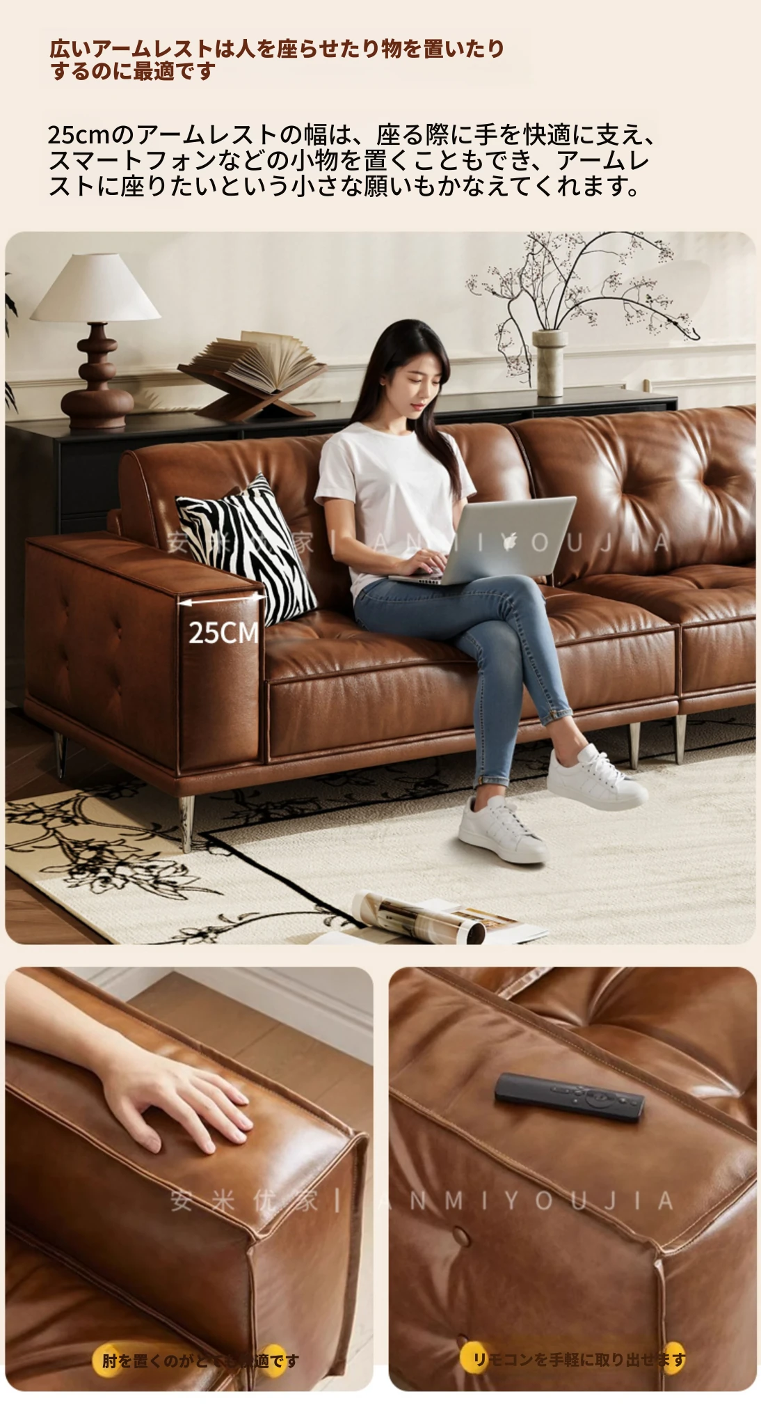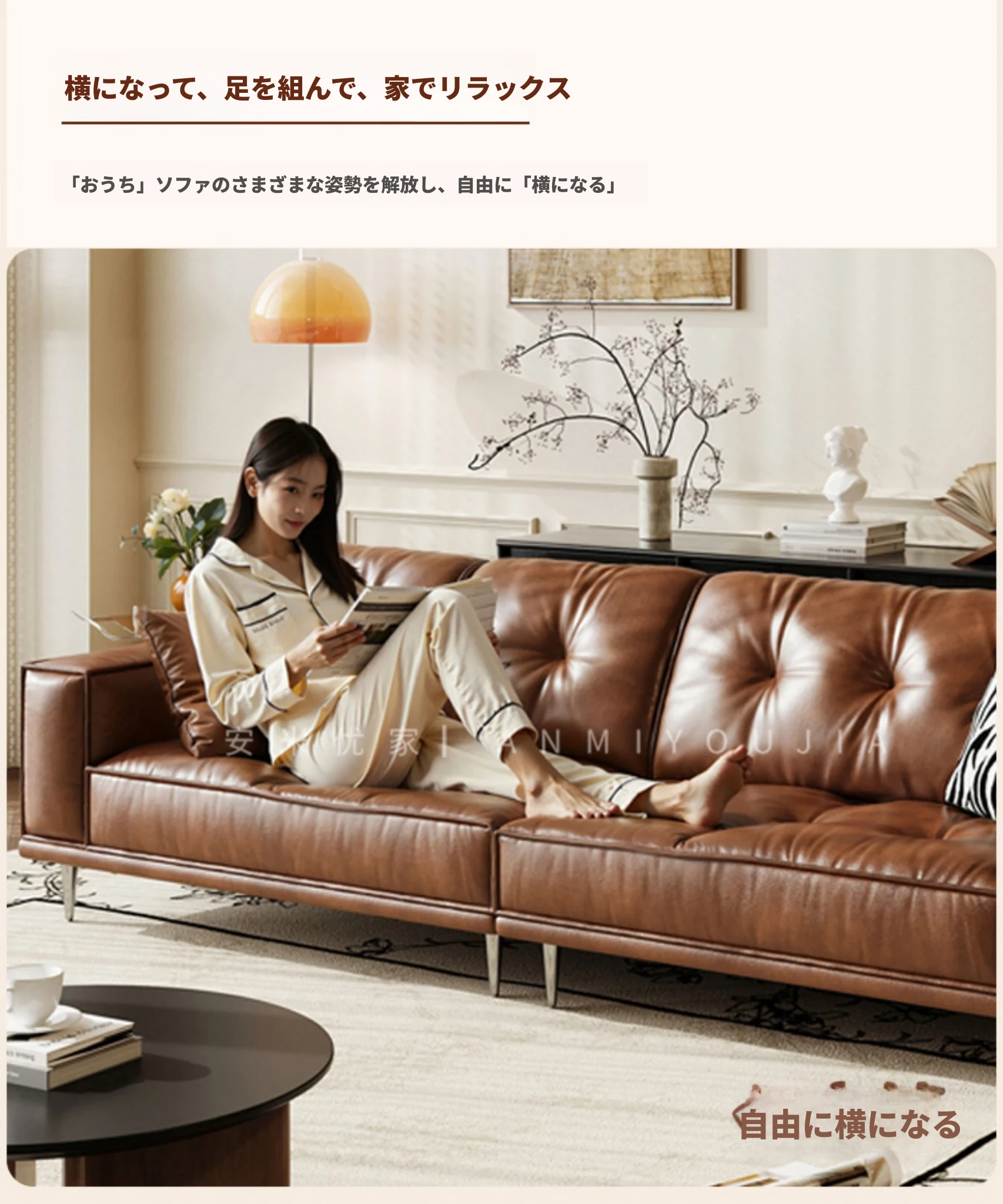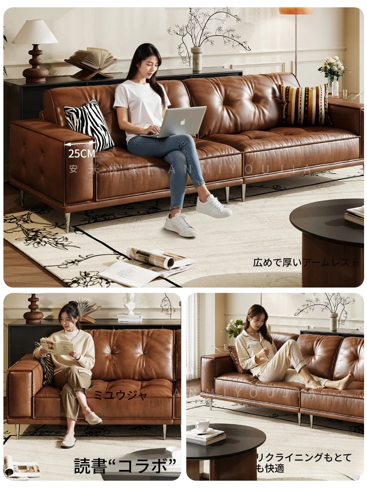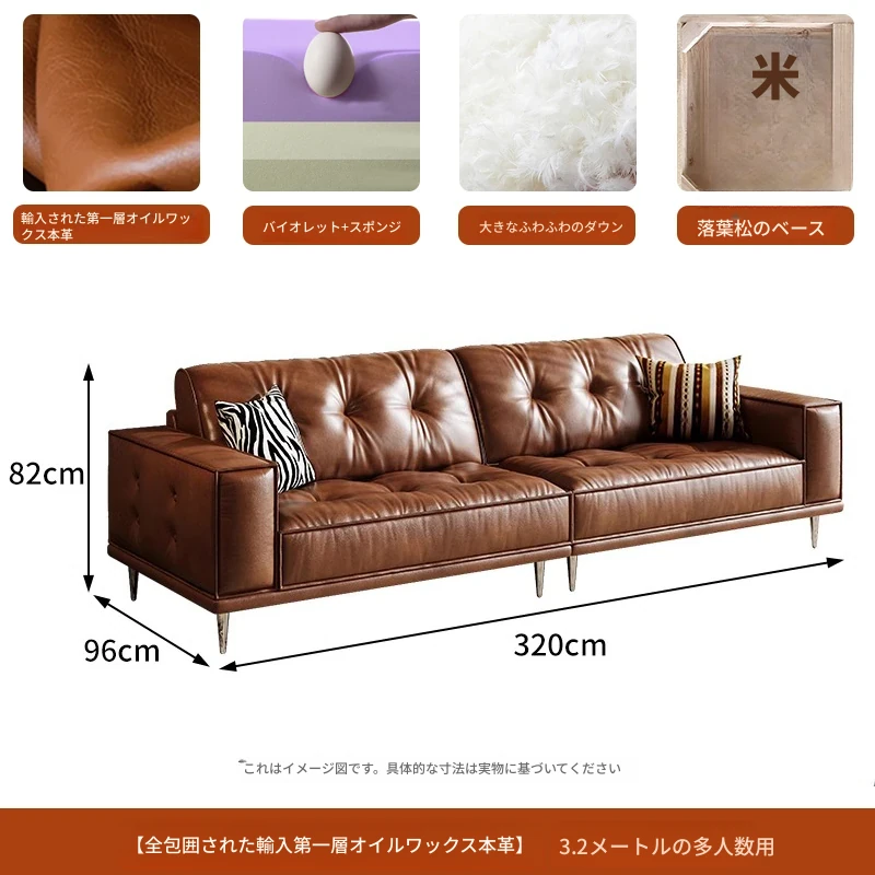 【2.5m三人位】レトロオイルワックスレザー+輸入落葉松+ダウンシルク綿