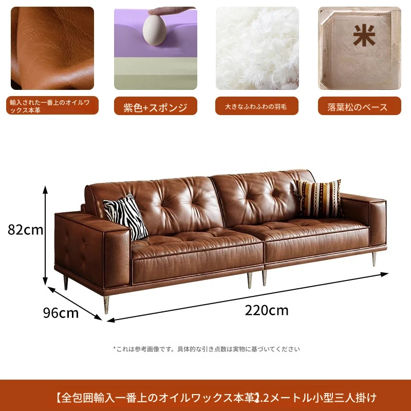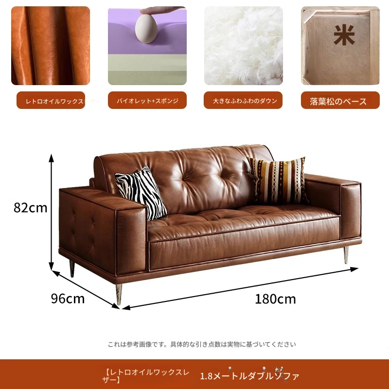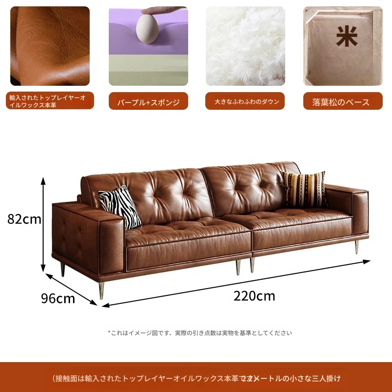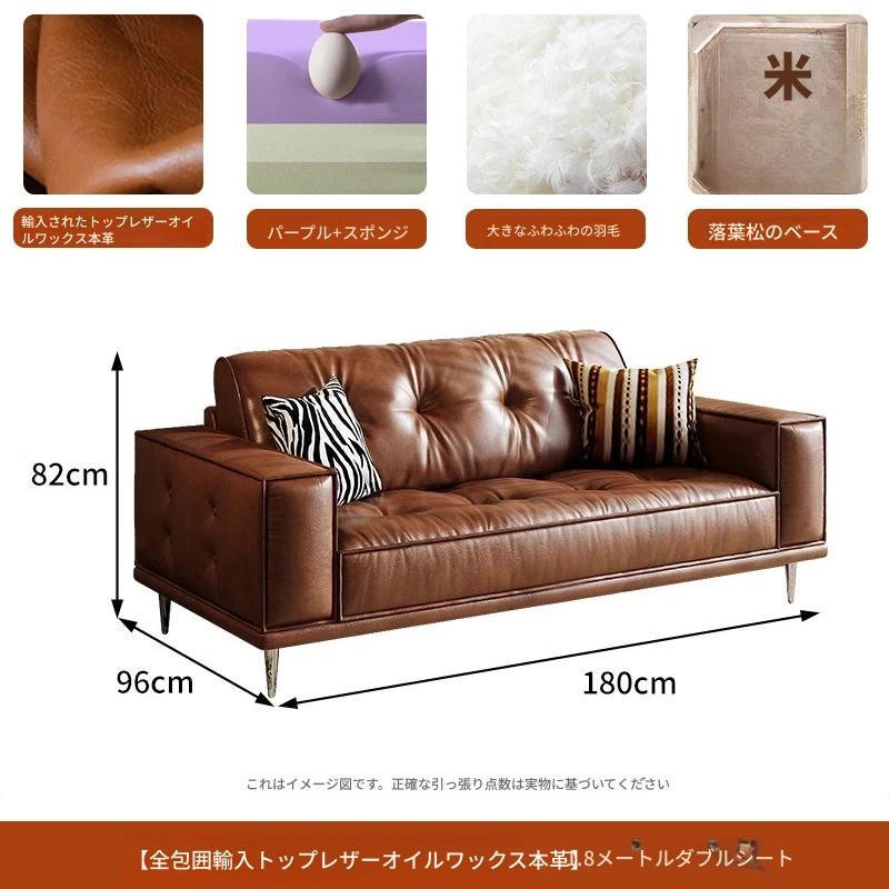 【2.2m小三人位】レトロオイルワックスレザー+輸入落葉松+ダウンシルク綿