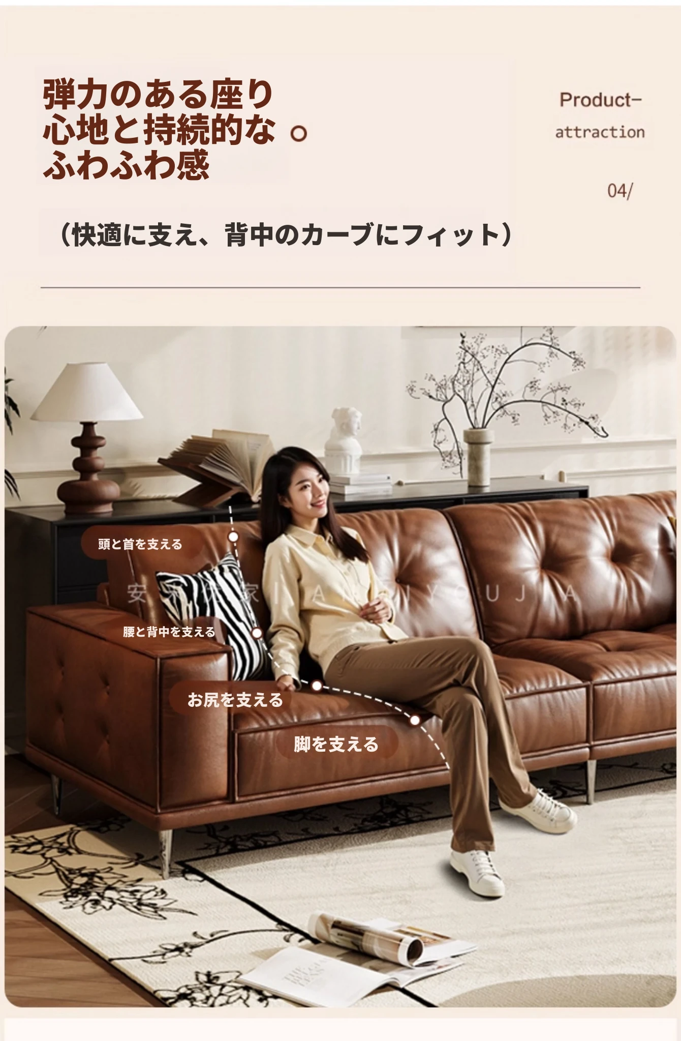 【1.8m二人位】接触面-S級輸入本革オイルワックスレザー+輸入落葉松+ダウンシルク綿