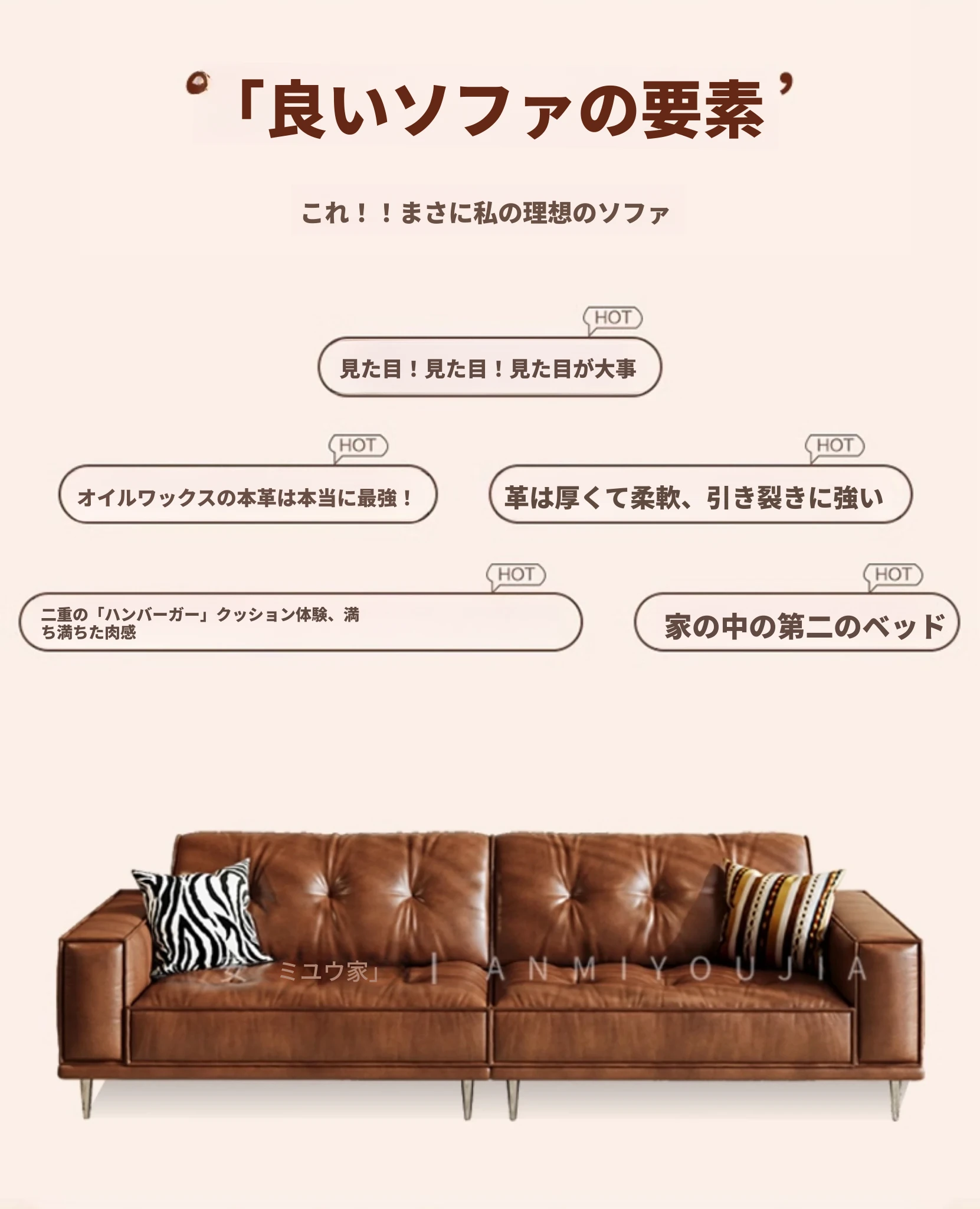 【2.8m四人位】接触面-S級輸入本革オイルワックスレザー+輸入落葉松+ダウンシルク綿
