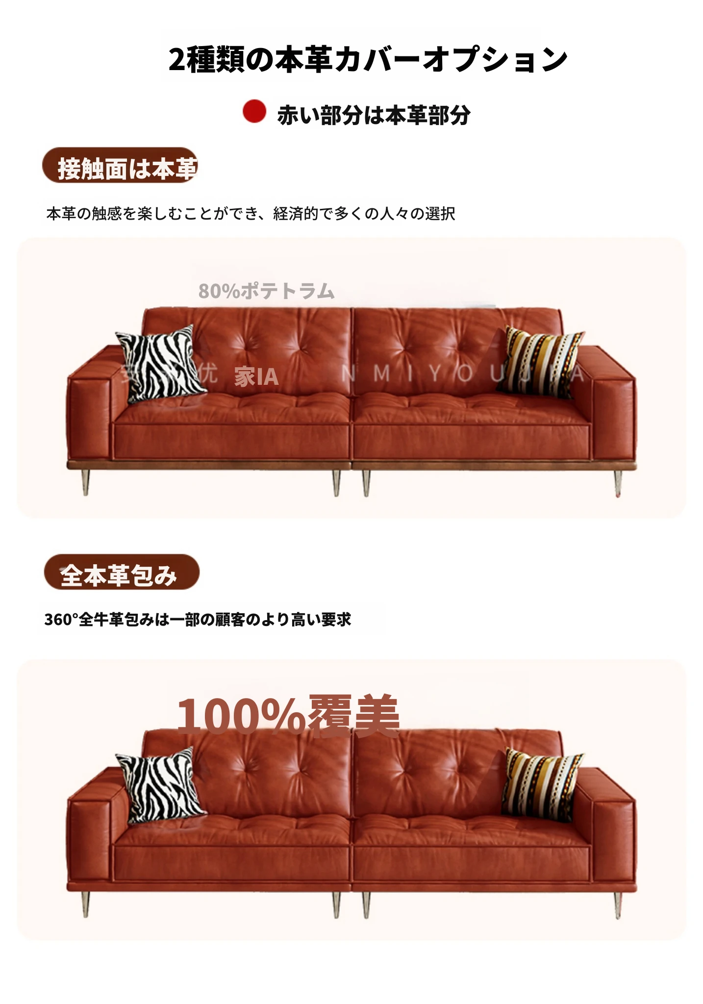 【2.8m四人位】フルカバー-S級輸入本革オイルワックスレザー+輸入落葉松+ダウンシルク綿