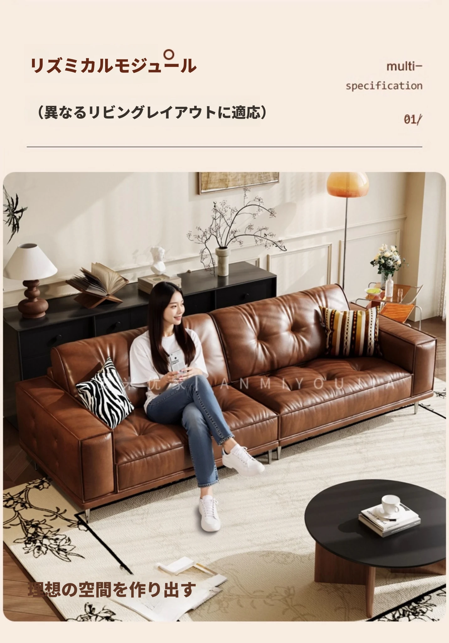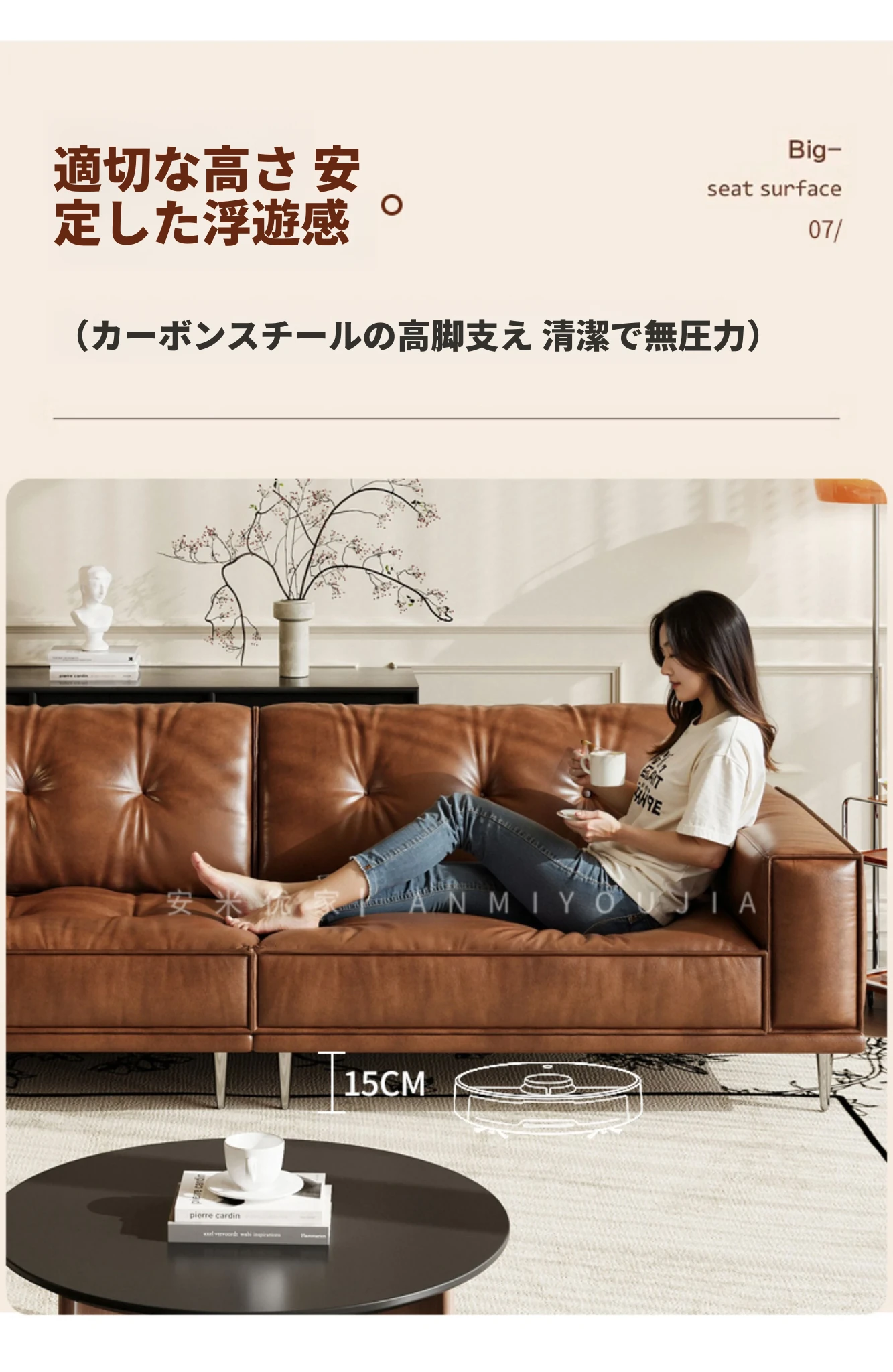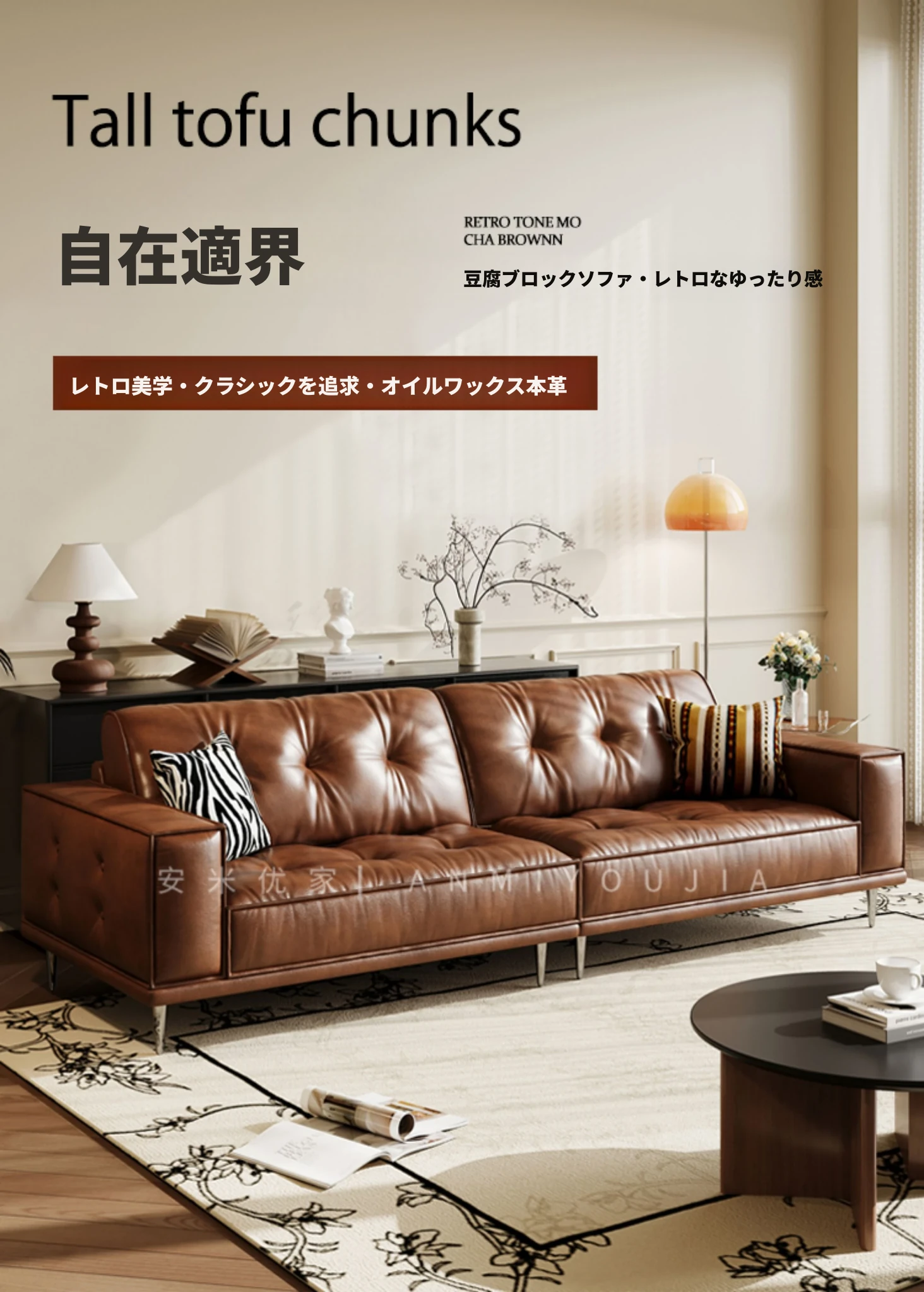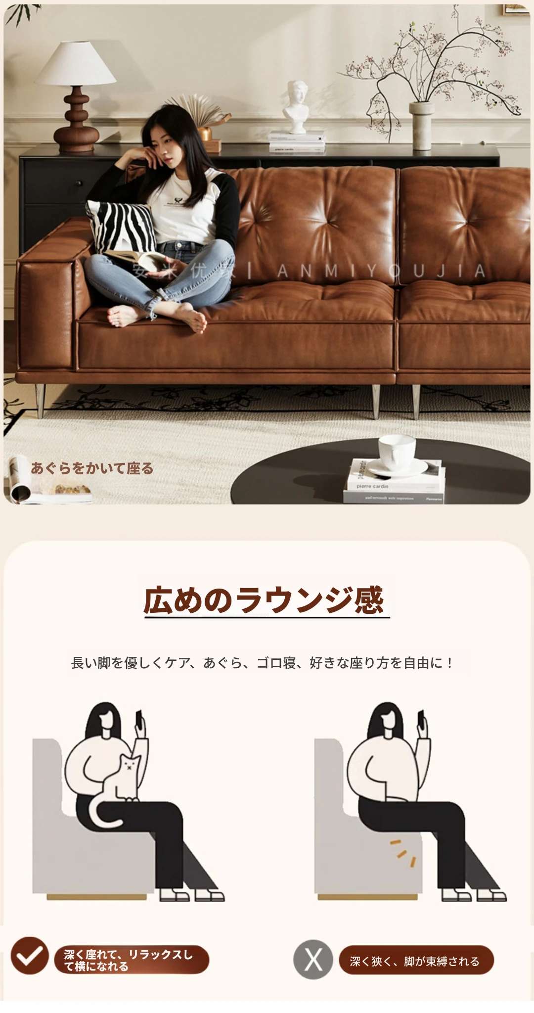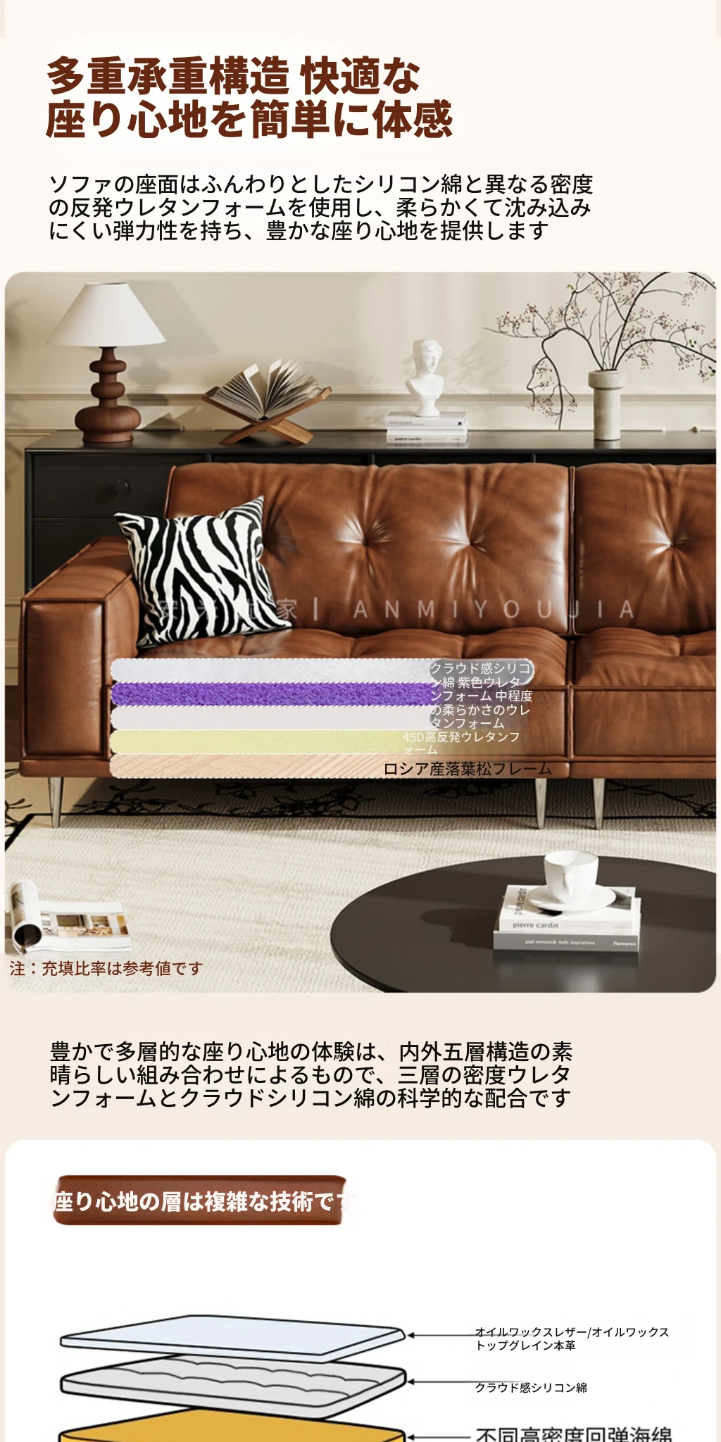 【3.0m五人位】レトロオイルワックスレザー+輸入落葉松+ダウンシルク綿