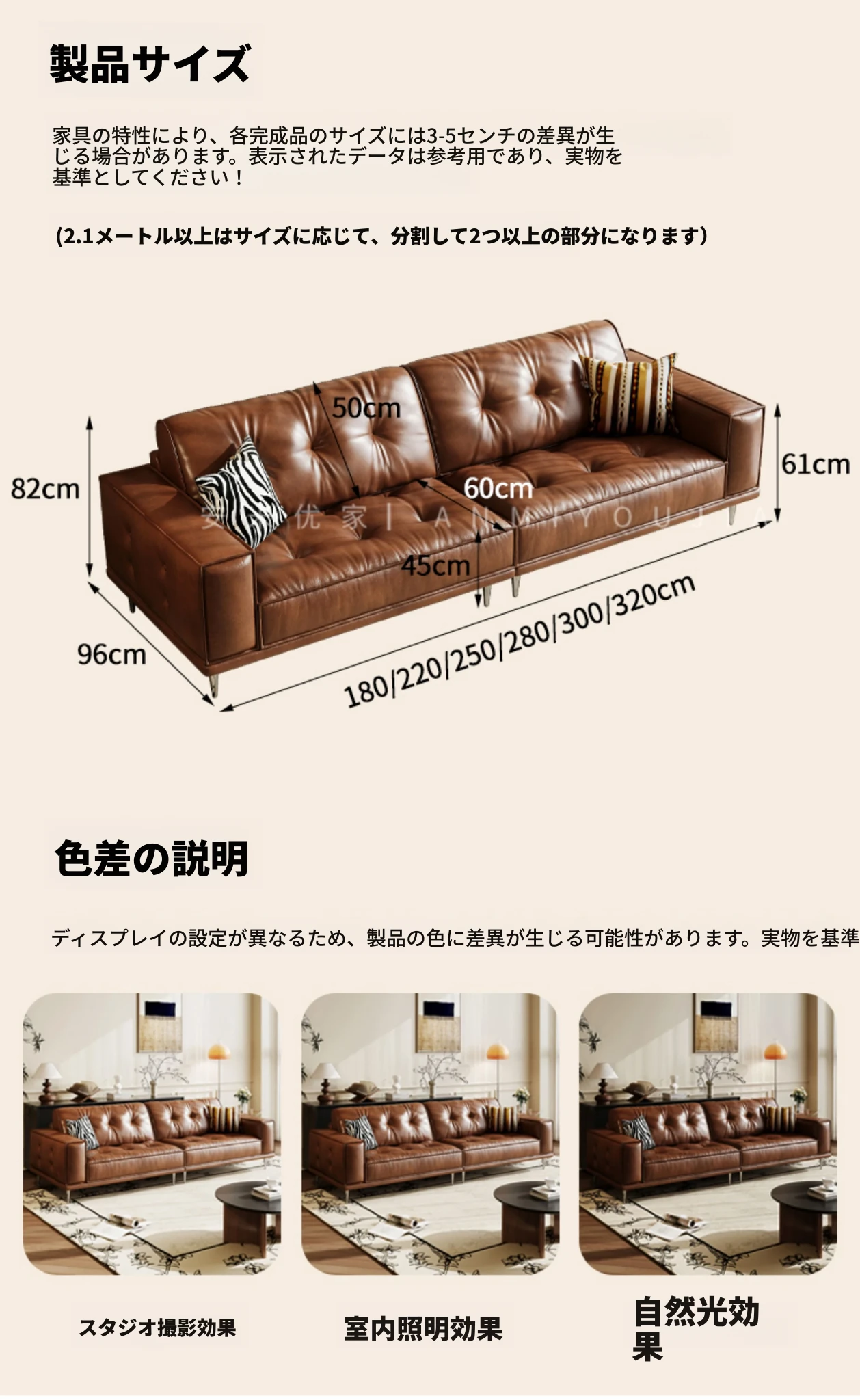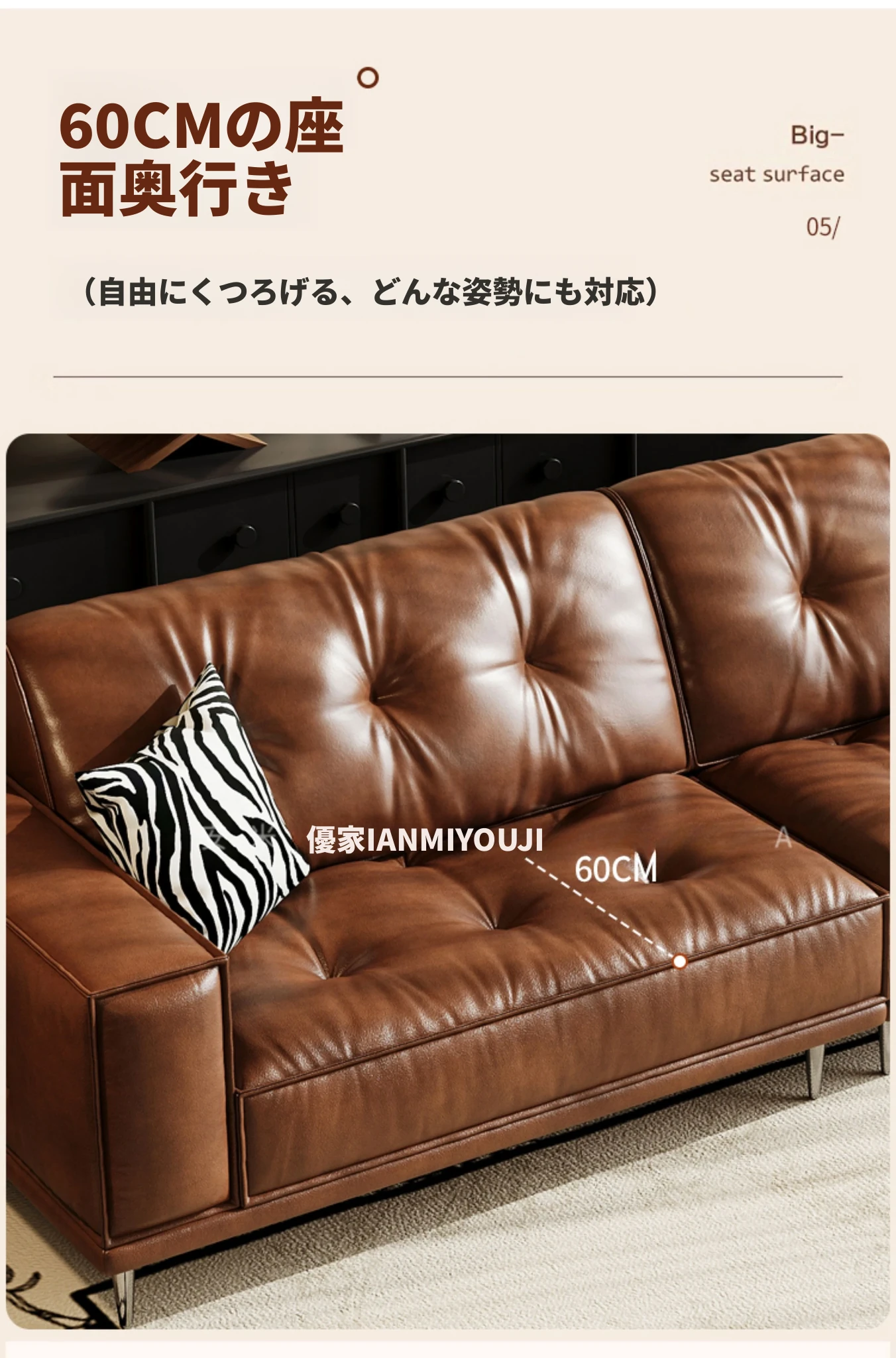 【2.2m小三人位】接触面-S級輸入本革オイルワックスレザー+輸入落葉松+ダウンシルク綿