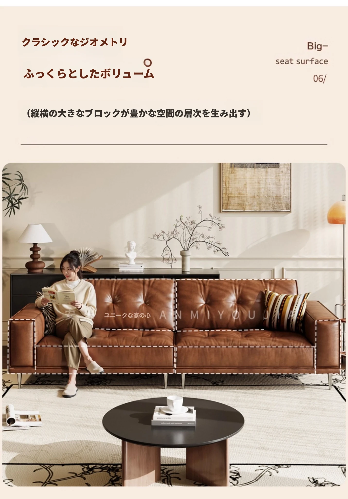 【3.2m多人位】接触面-S級輸入本革オイルワックスレザー+輸入落葉松+ダウンシルク綿