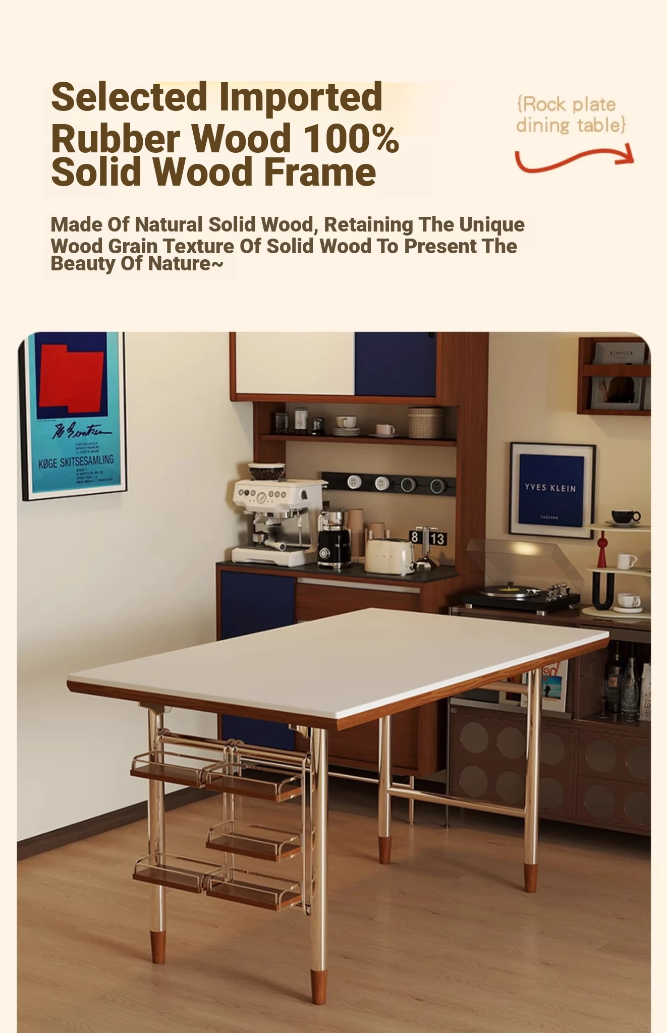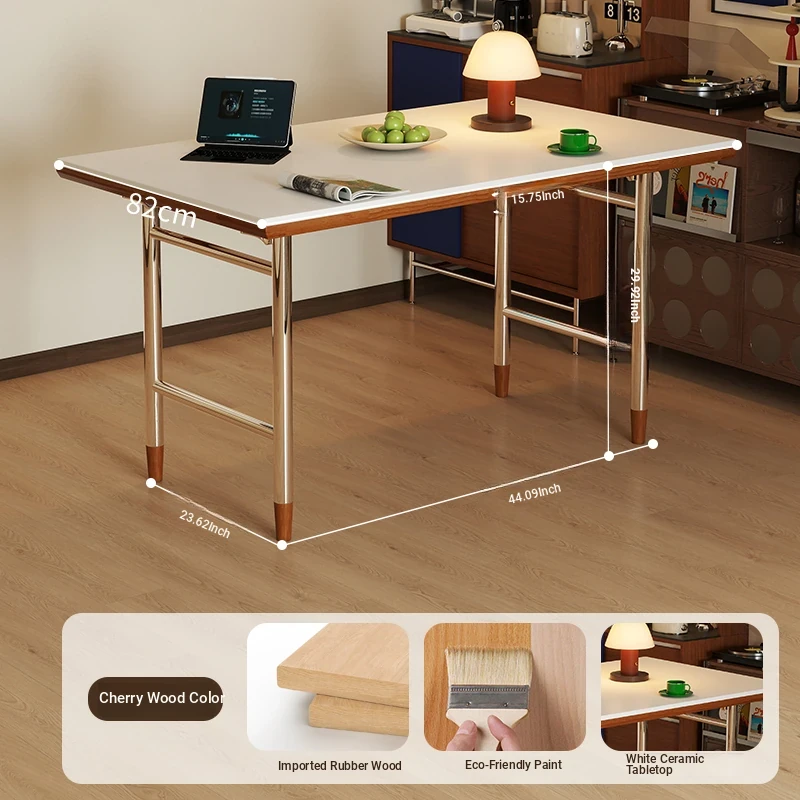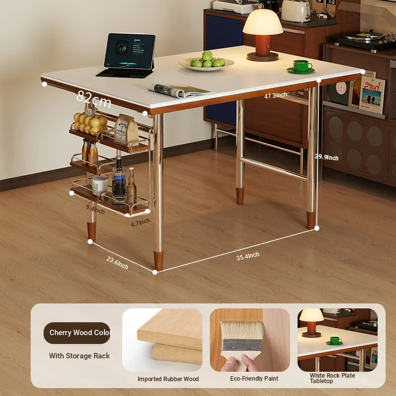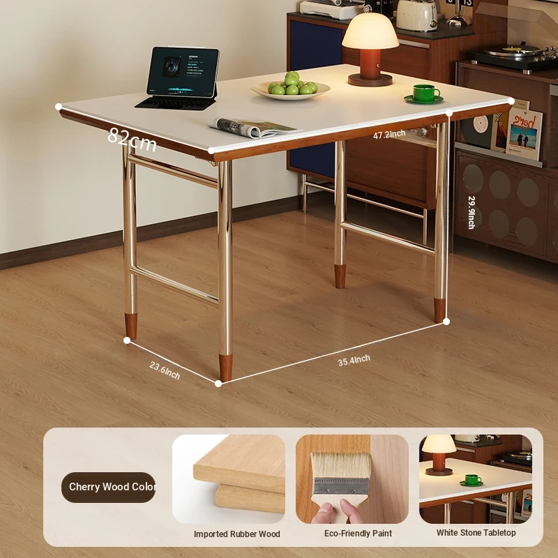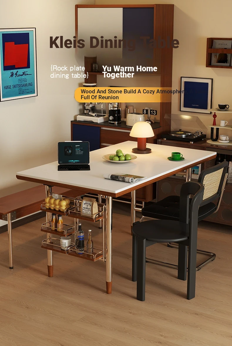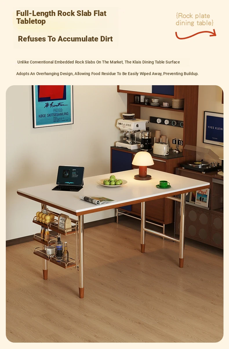 Kleis Solid Wood Vintage Rock Plate Dining Table - Stylish Rectangular Design for Small Spaces, Perfect for Living Rooms and Dining Areas.
