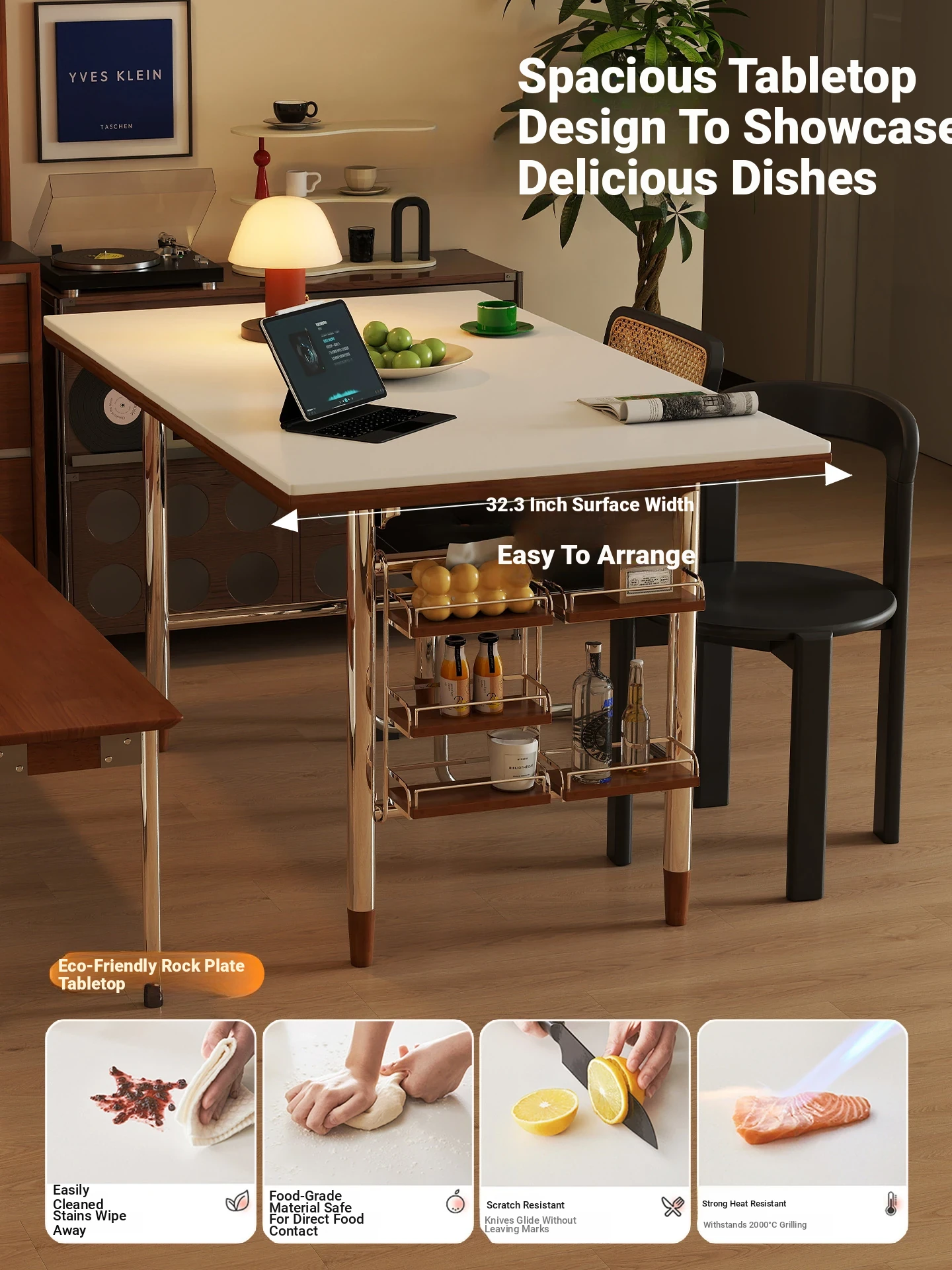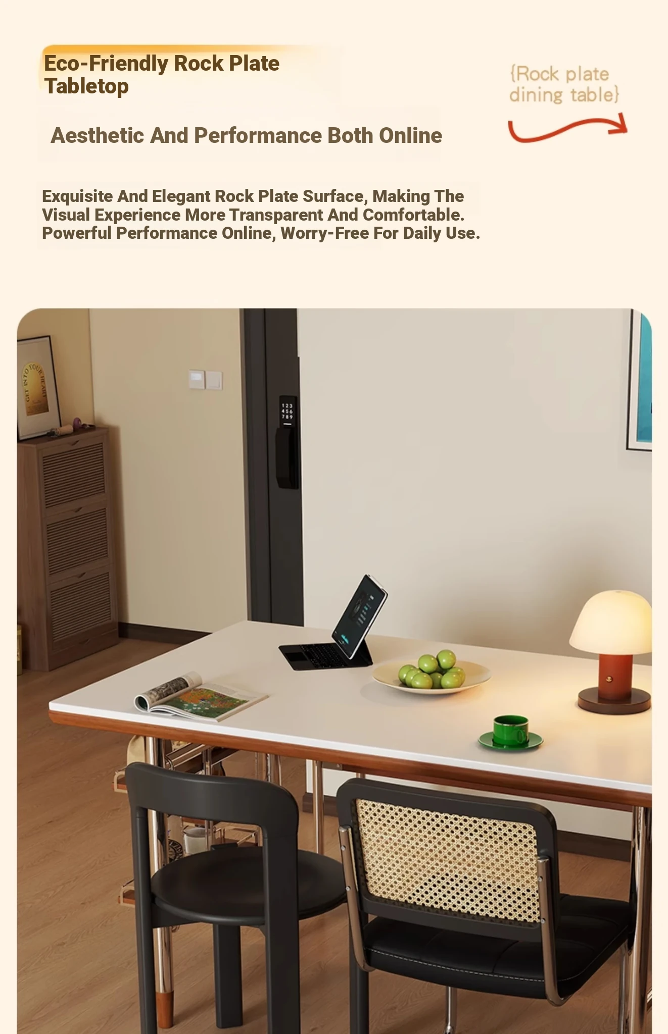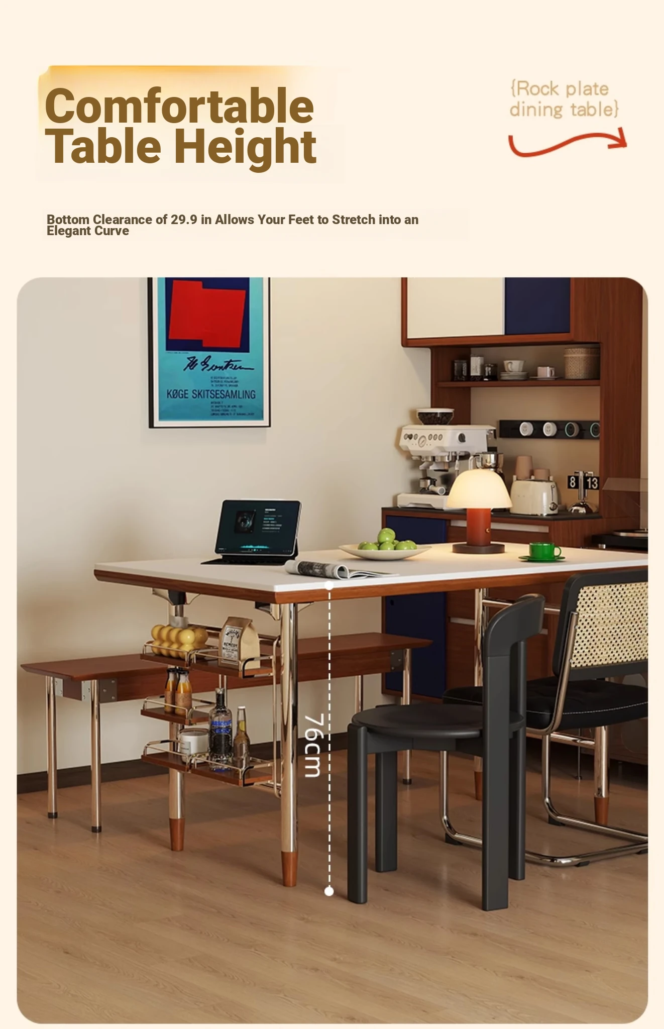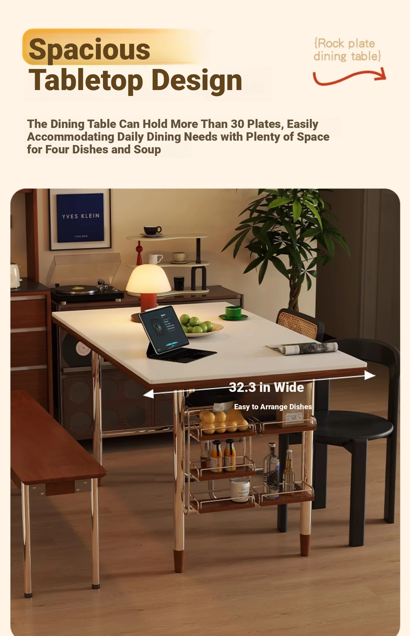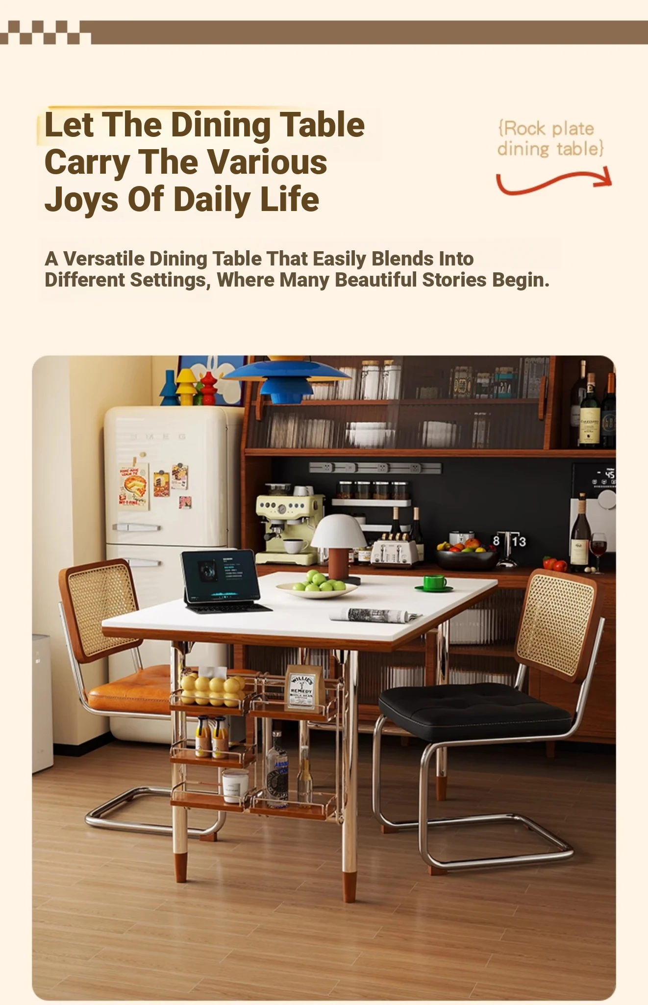 Kleis Solid Wood Vintage Rock Plate Dining Table - Stylish Rectangular Design for Small Spaces, Perfect for Living Rooms and Dining Areas.