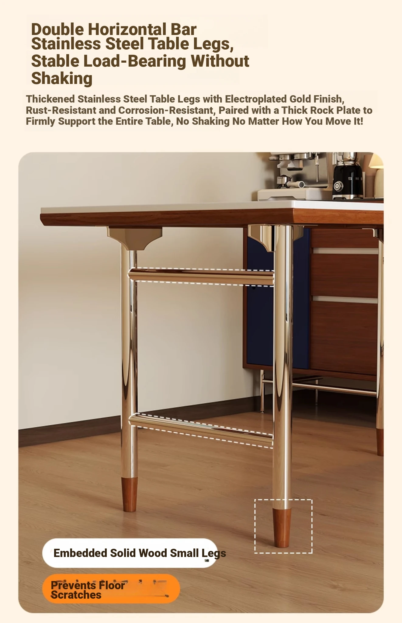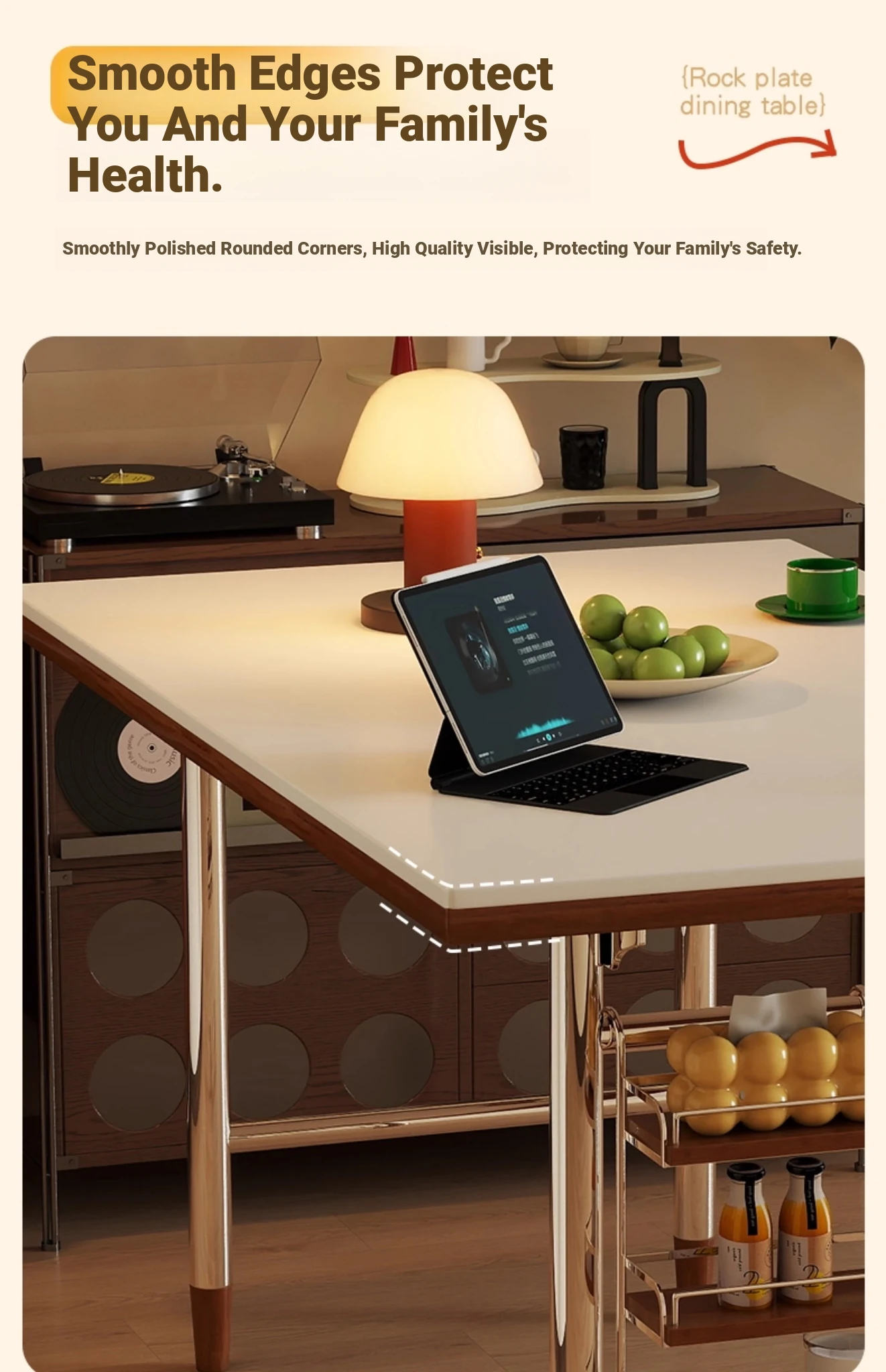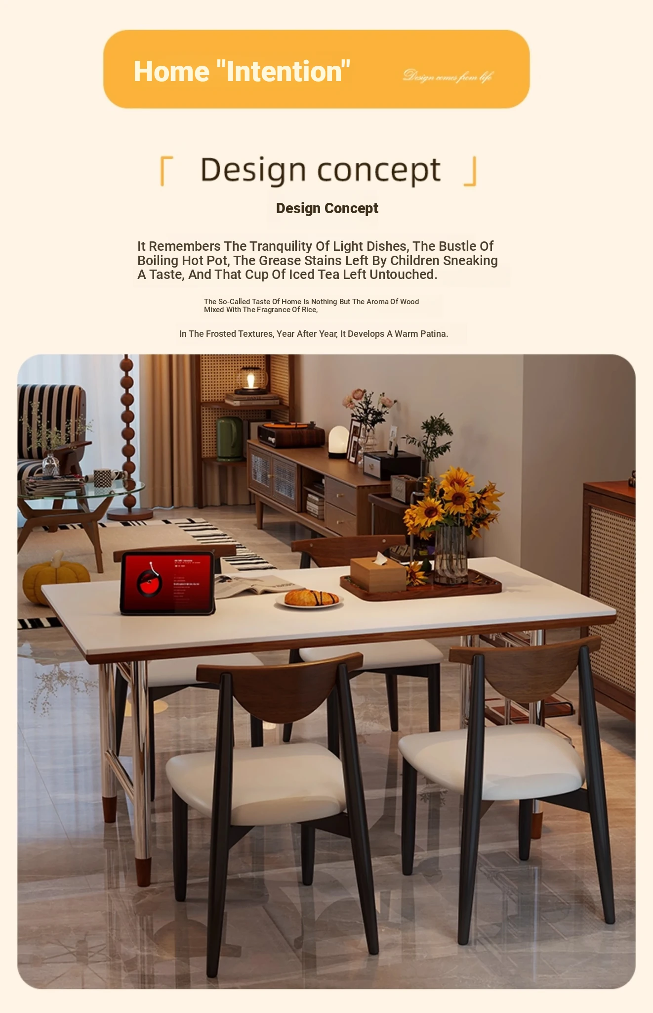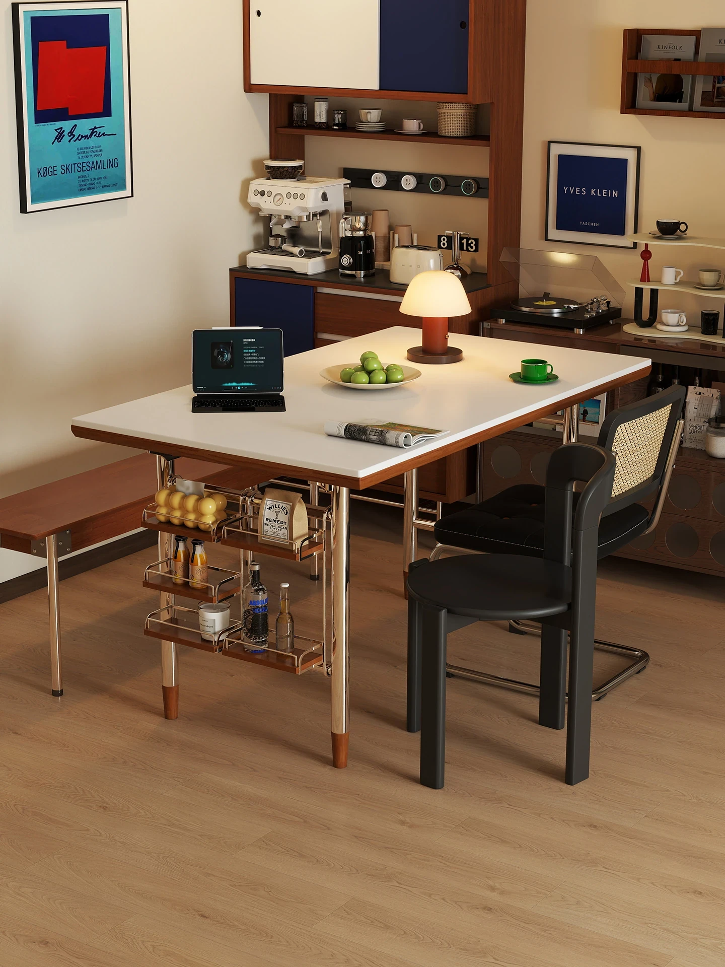 Kleis Solid Wood Vintage Rock Plate Dining Table - Stylish Rectangular Design for Small Spaces, Perfect for Living Rooms and Dining Areas.