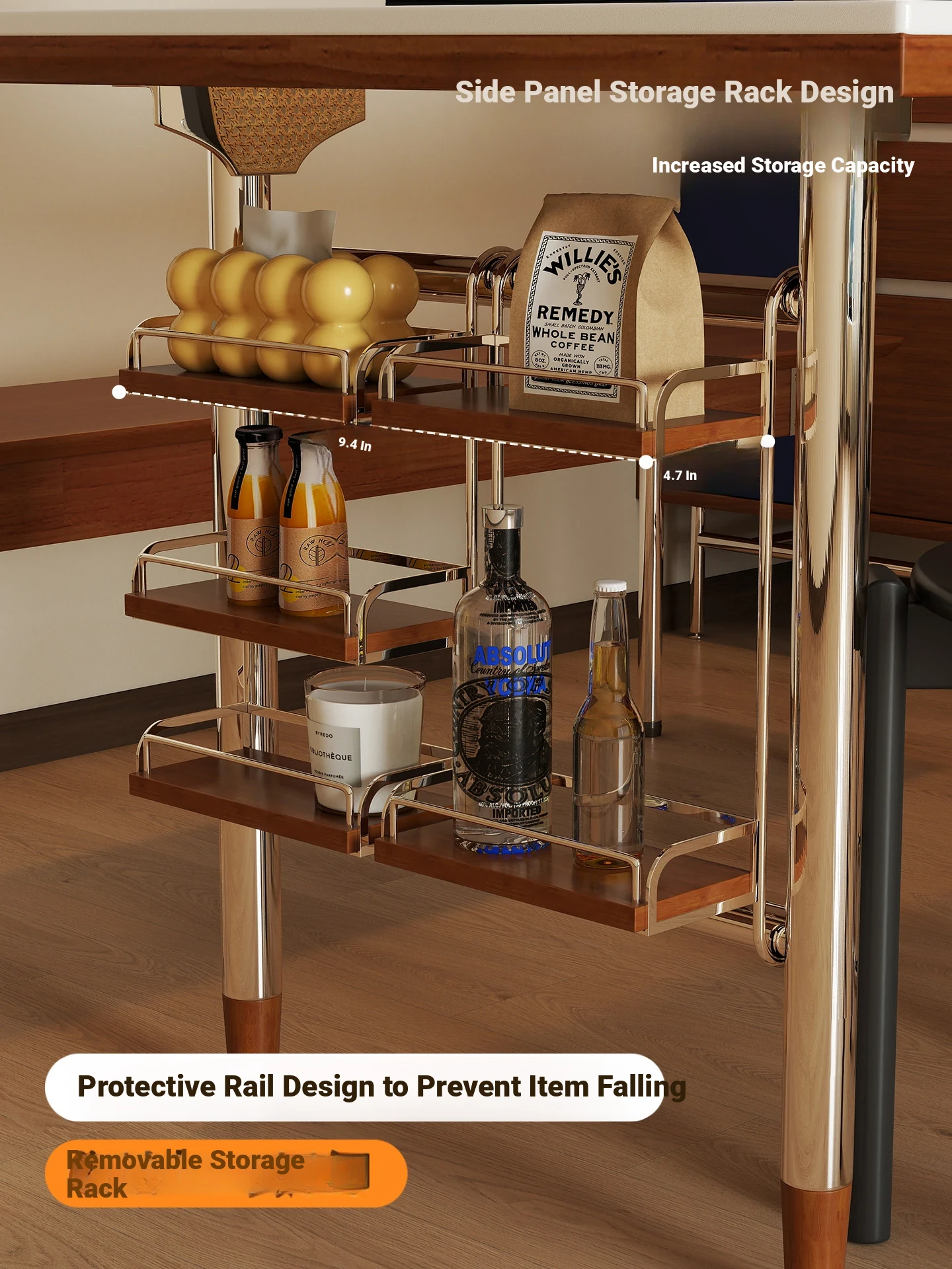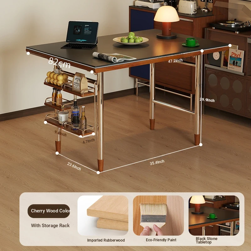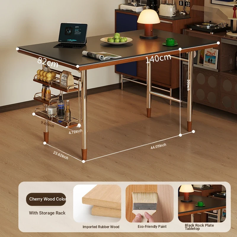 Black rock plate -47.24in single table + shelf [cherry wood color]]