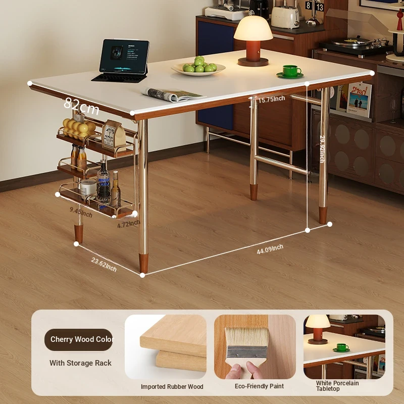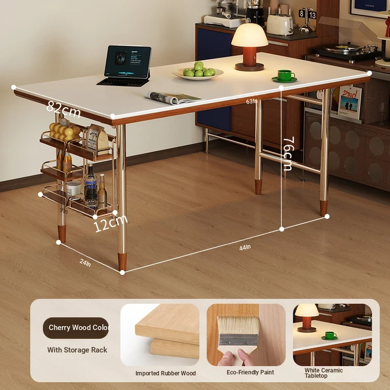 White rock plate -62.99in single table + shelf [cherry wood color]]