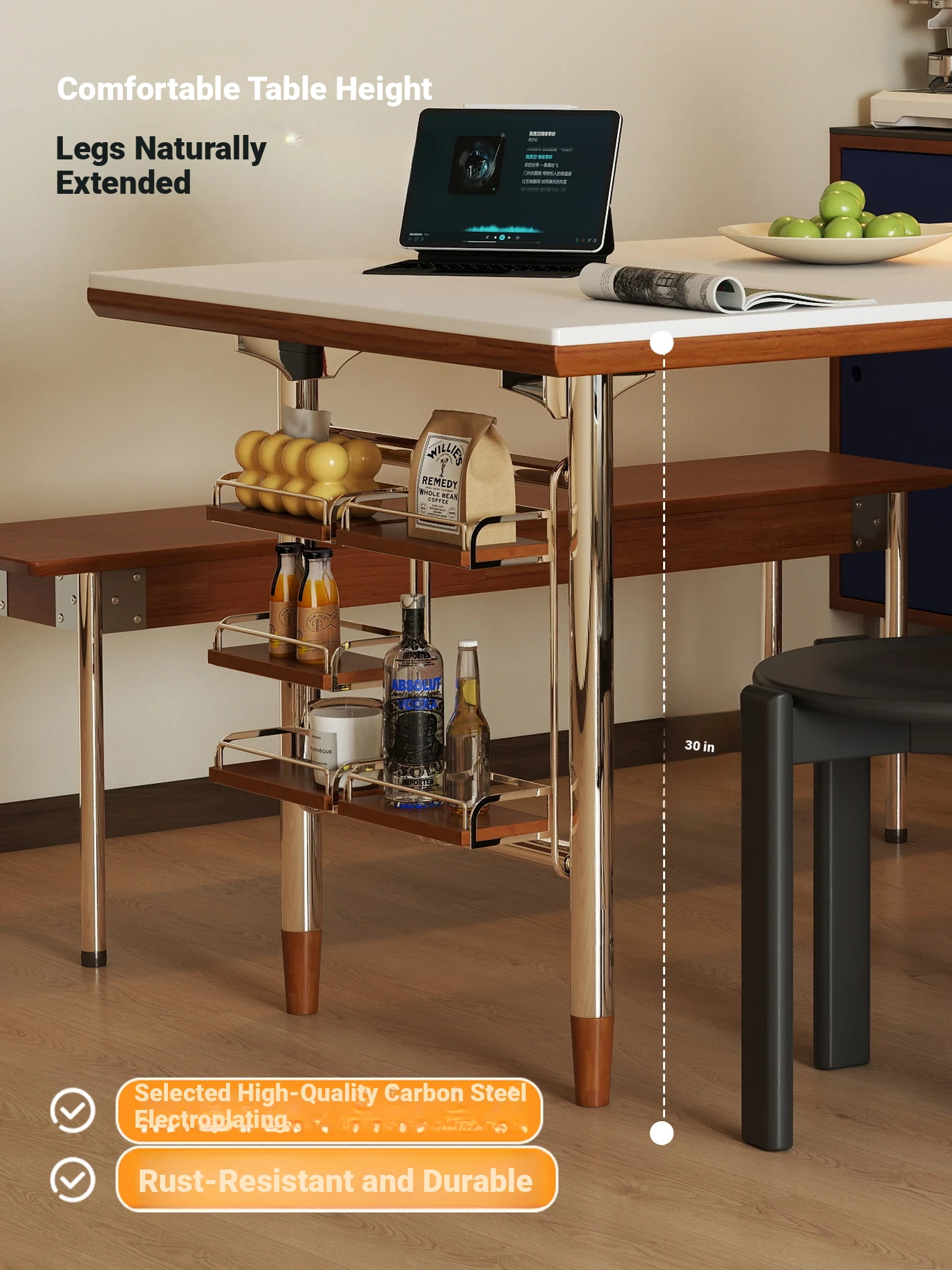 White rock plate -47.24in single table + shelf [cherry wood color]]