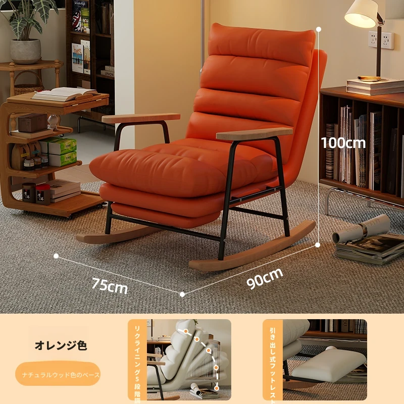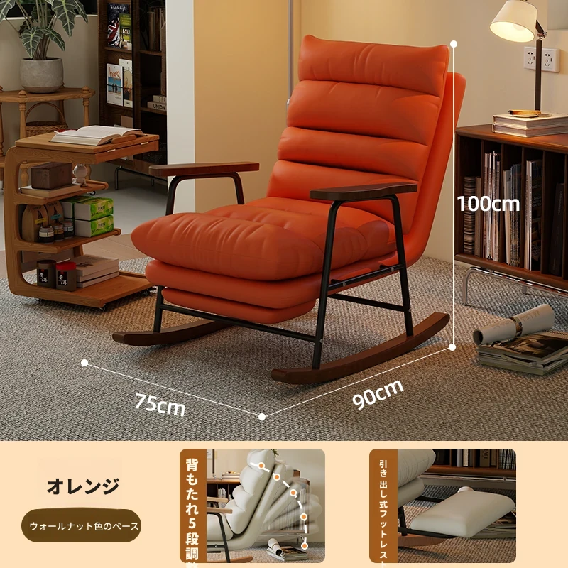 ラグジュアリーオレンジ+オットマン【ウォールナット色アーム】