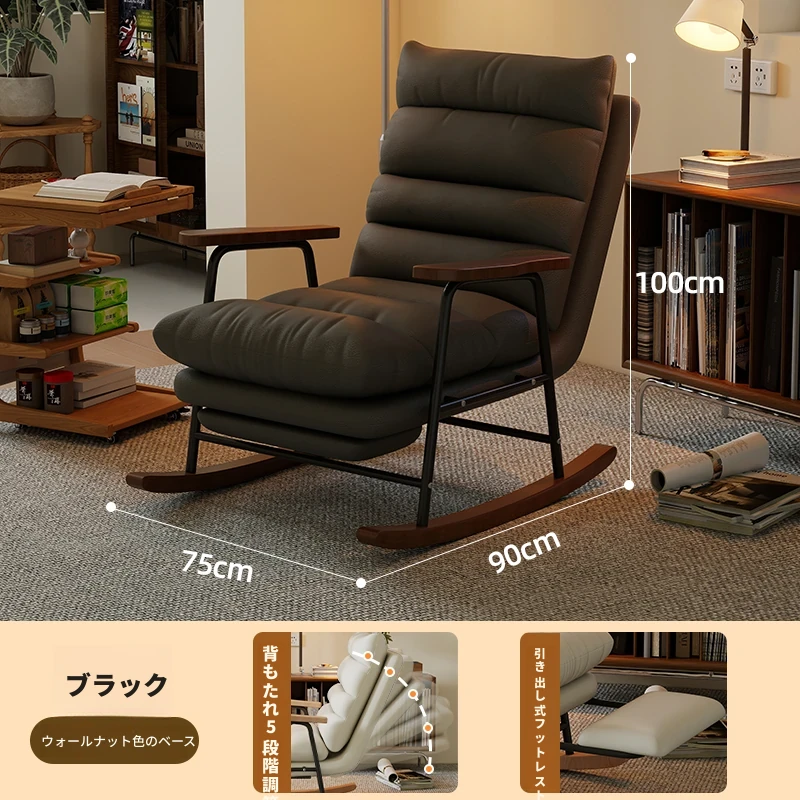 クラシックブラック+オットマン【ウォールナット色アーム】