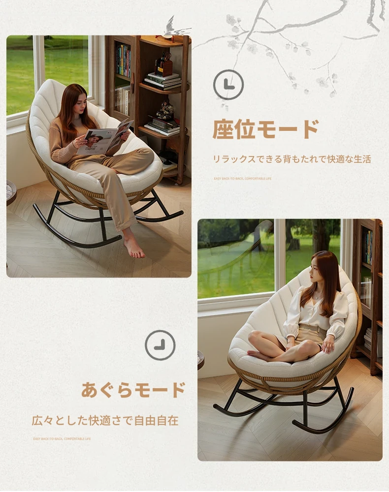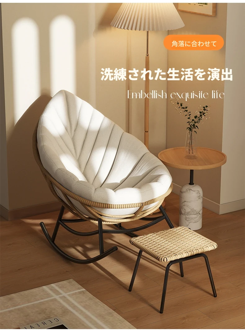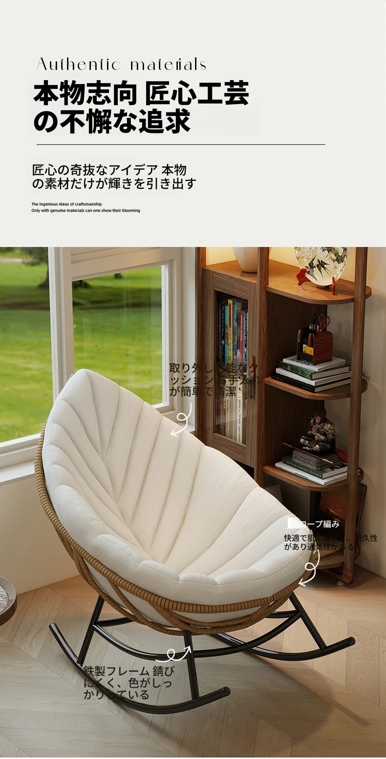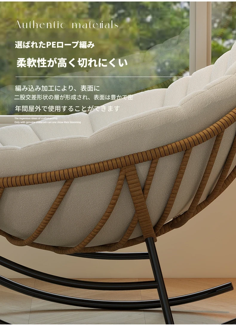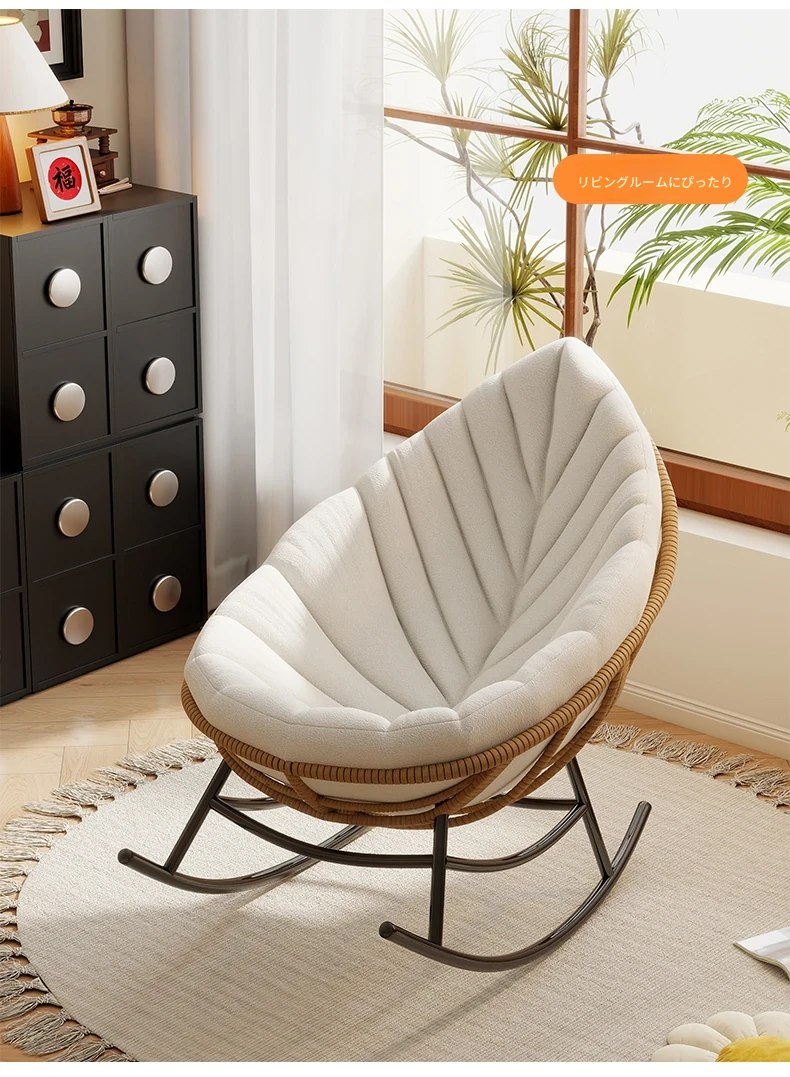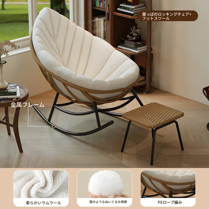 リーフデザインのロッキングチェア|大人のためのリラックス&リフレッシュ|バルコニーやリビングにぴったりな藤編みのハンモックソファ|おしゃれで快適なアウトドアシーンに最適!