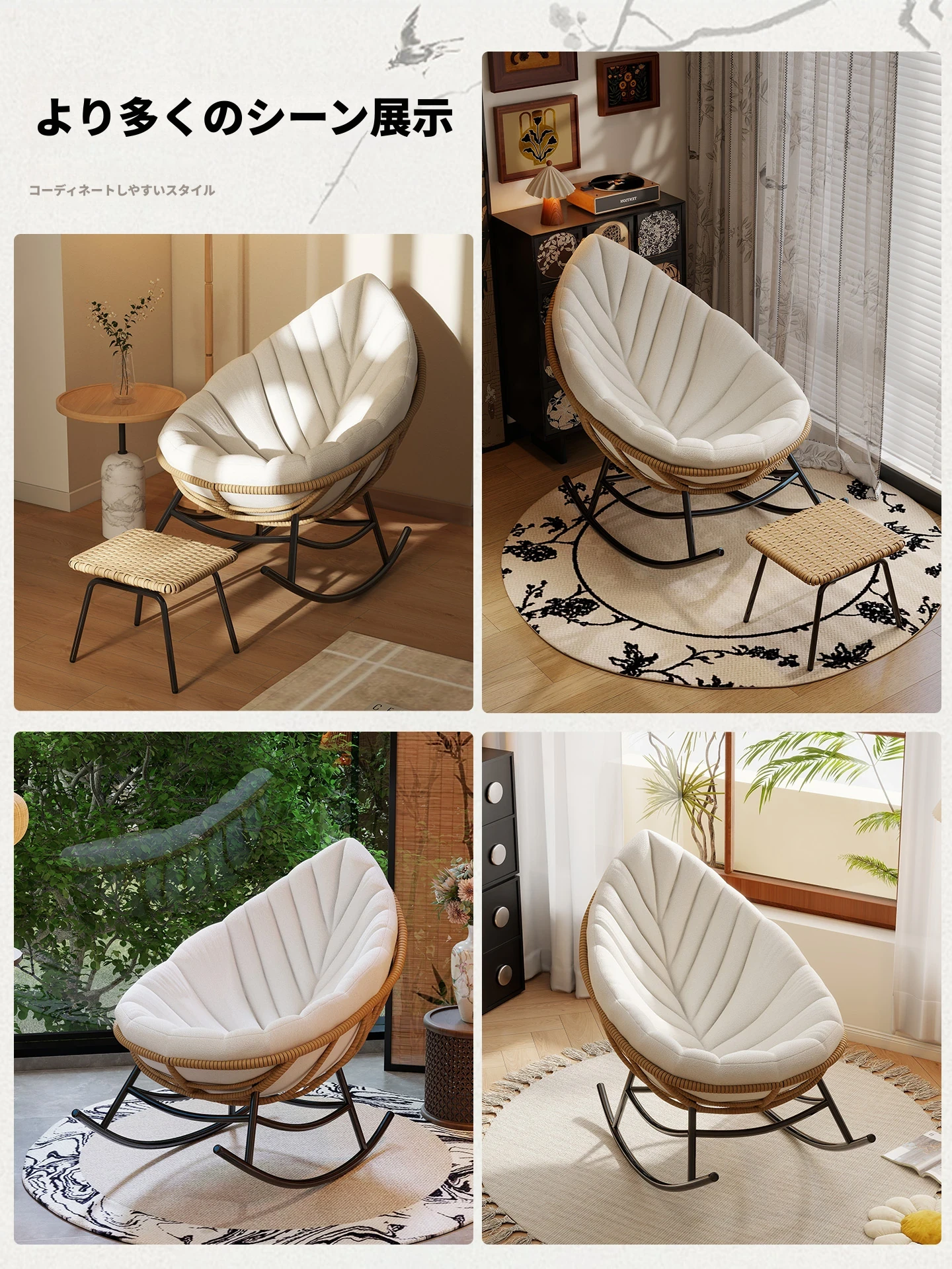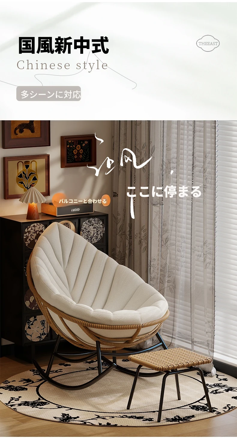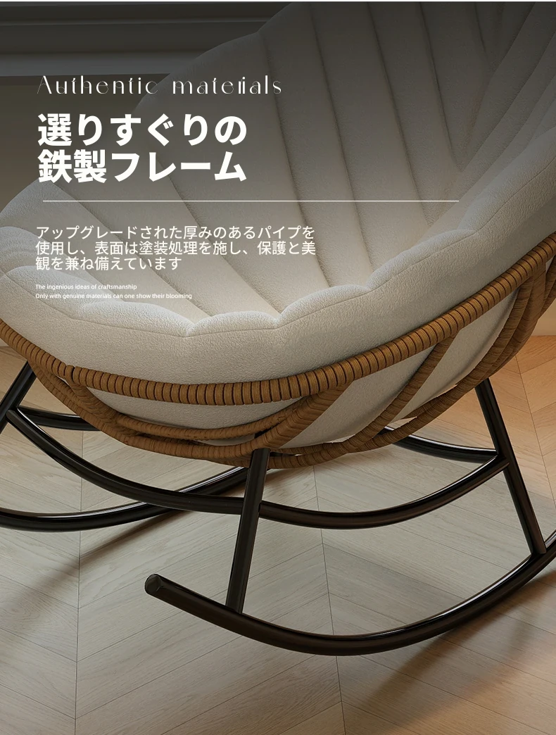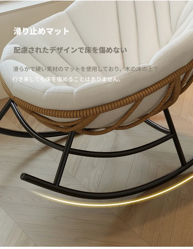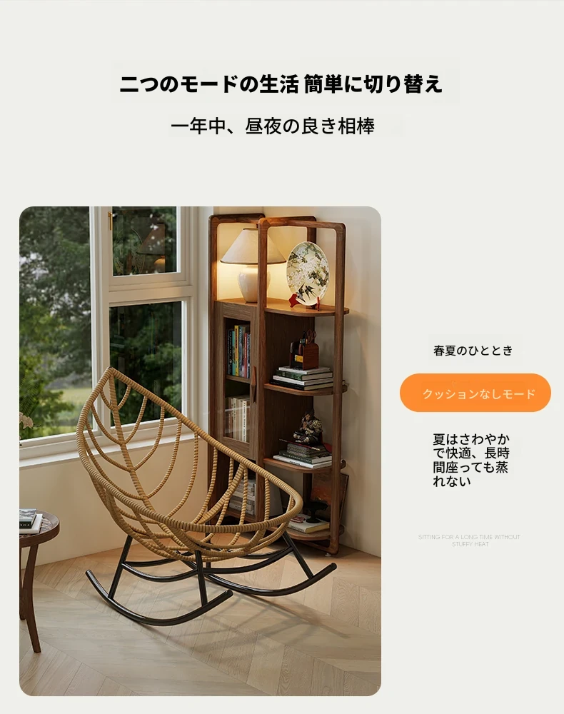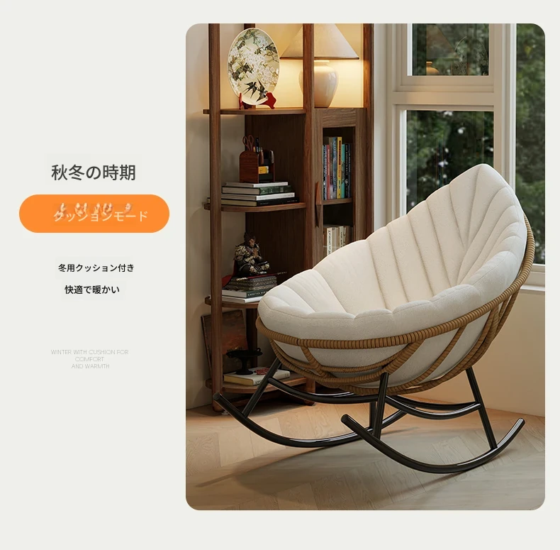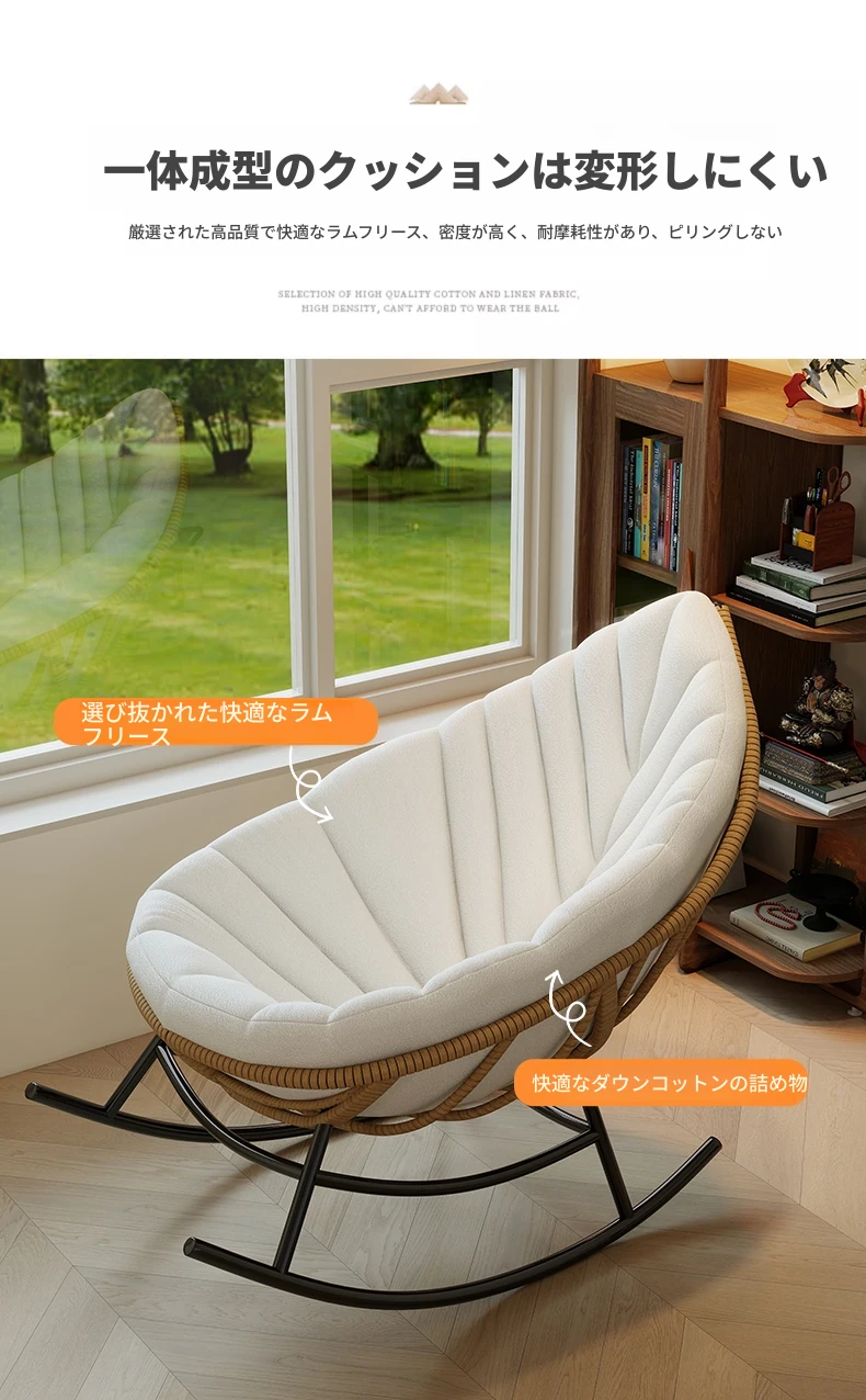 リーフデザインのロッキングチェア|大人のためのリラックス&リフレッシュ|バルコニーやリビングにぴったりな藤編みのハンモックソファ|おしゃれで快適なアウトドアシーンに最適!