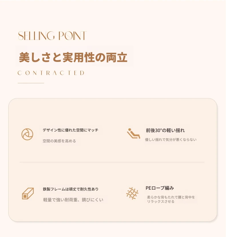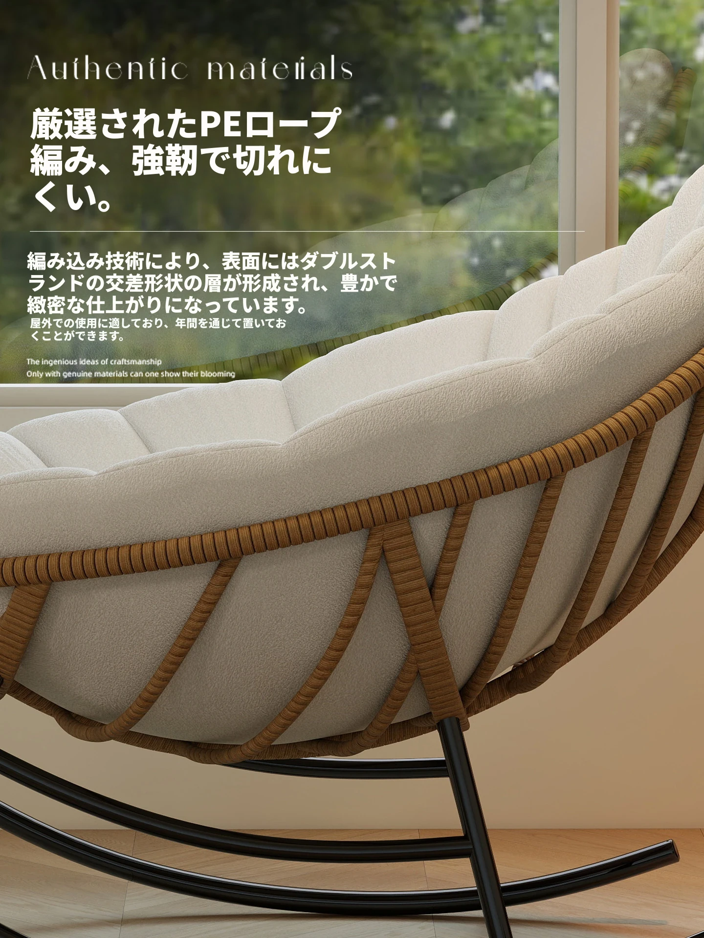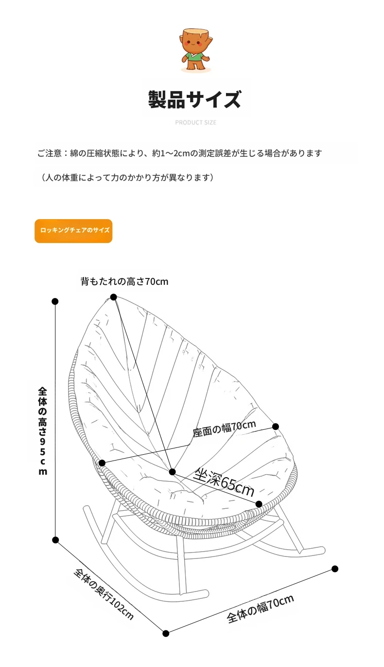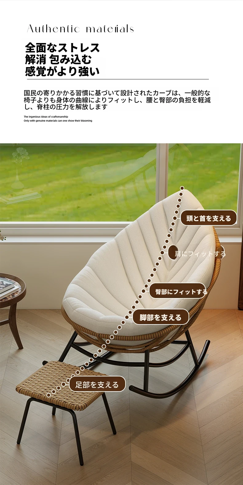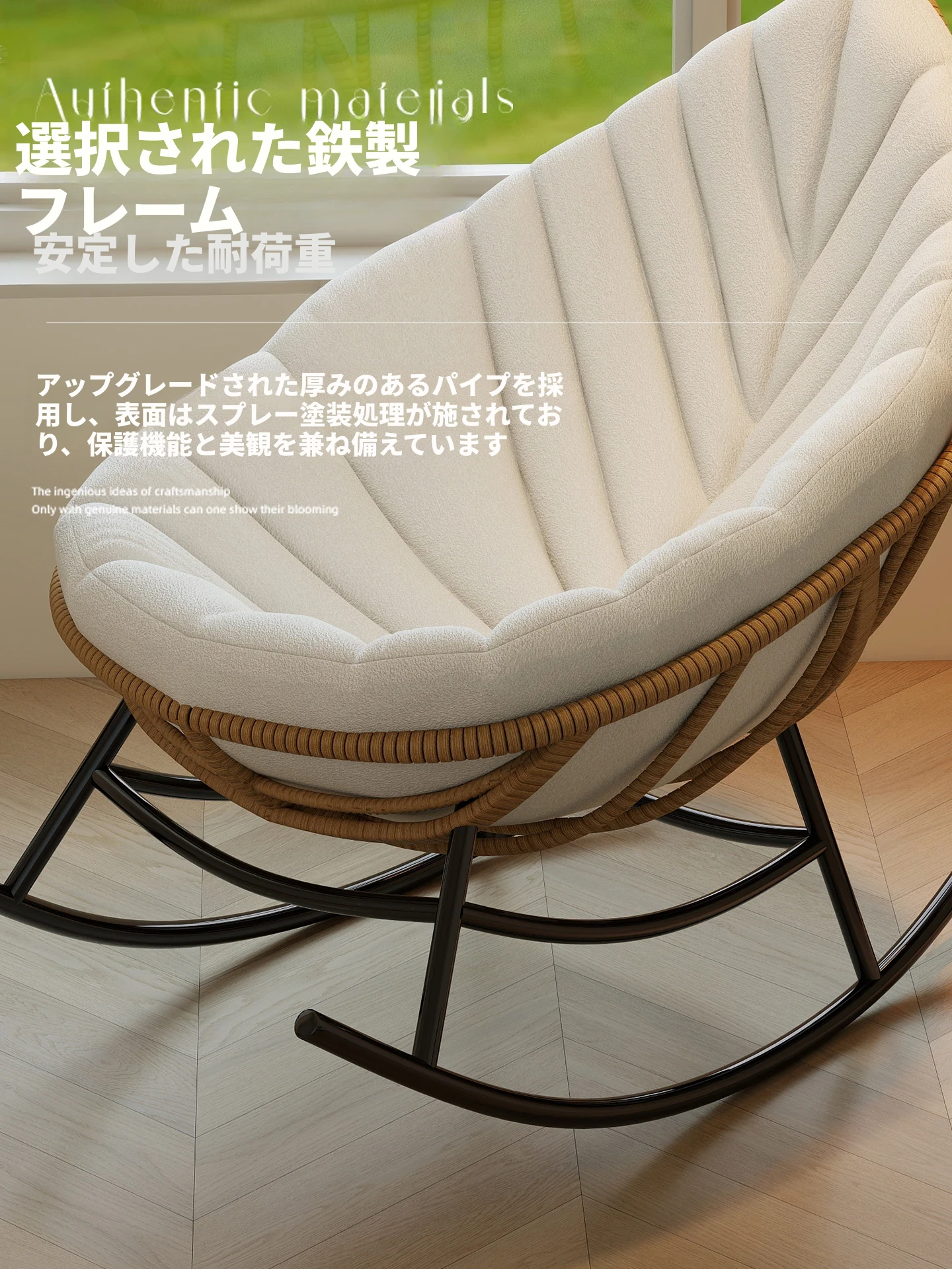 リーフデザインのロッキングチェア|大人のためのリラックス&リフレッシュ|バルコニーやリビングにぴったりな藤編みのハンモックソファ|おしゃれで快適なアウトドアシーンに最適!